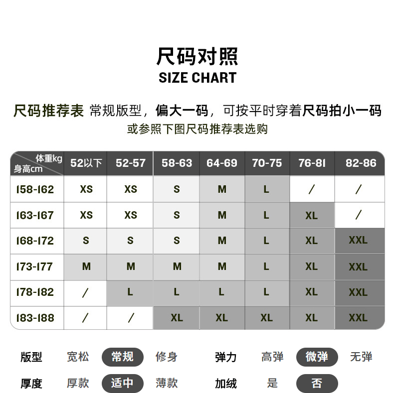 China (cm) 160-165/84-86 165-170 / 88-90 167-172 / 92-96 168-173 / 98-102 170-176 / 106-110