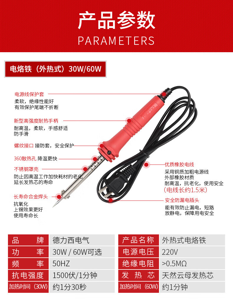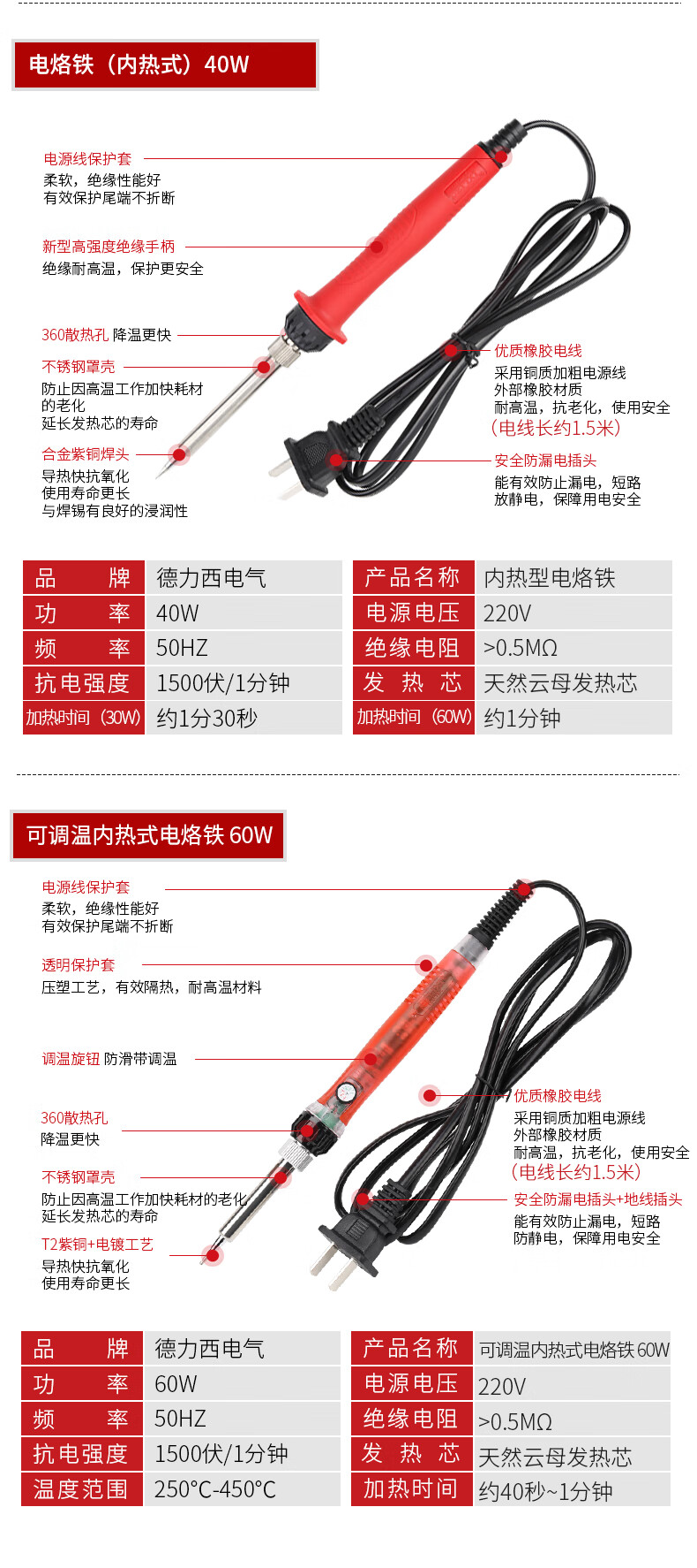 Delixi electric soldering iron soldering mini household soldering constant temperature adjustable temperature electric soldering iron solder absorber semi-metal