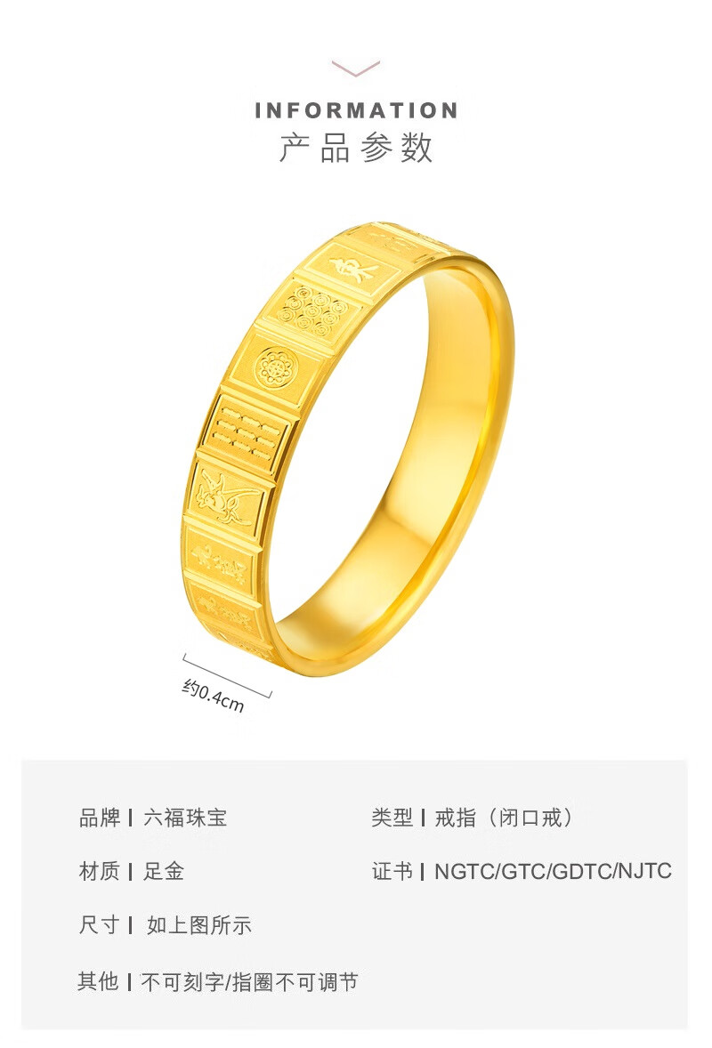 Lukfook Jewelry Pure Gold Thirteen Yao Mahjong Glossy Gold Ring Solid Gift Price 015108CA No. 16-3.93g (including labor cost 236 yuan)