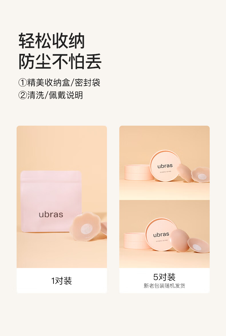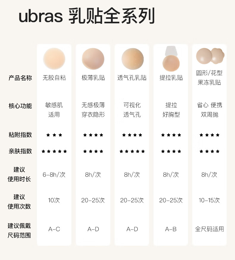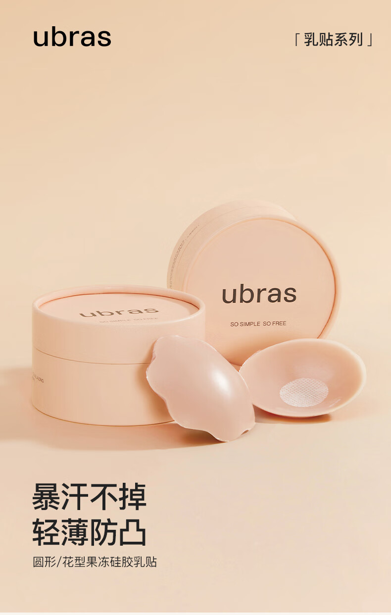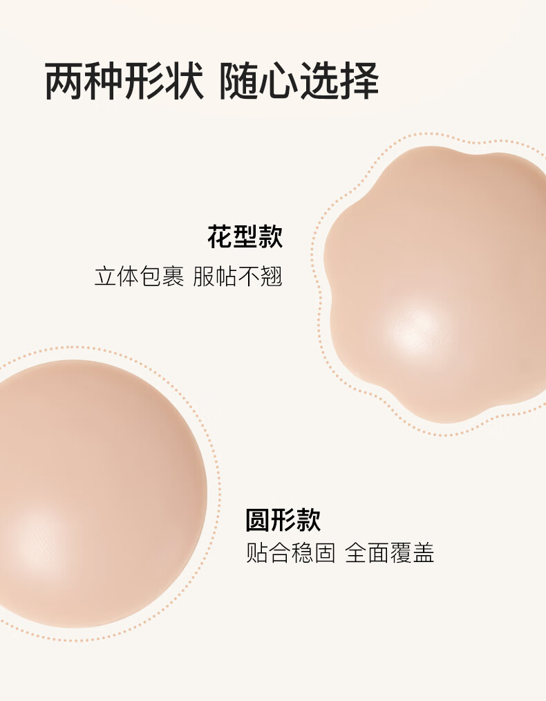 Ubras flower round jelly silicone breast pads, invisible, traceless, comfortable and breathable (2/5/10 pairs), replacement and matching, round 2 pairs, one size fits all