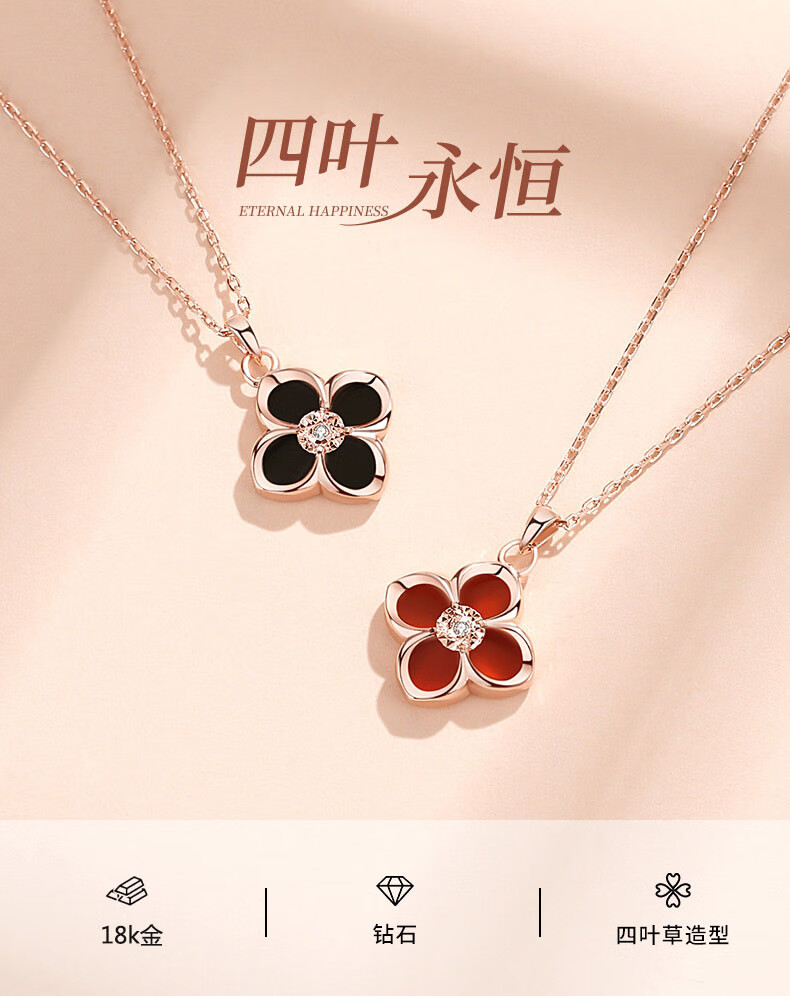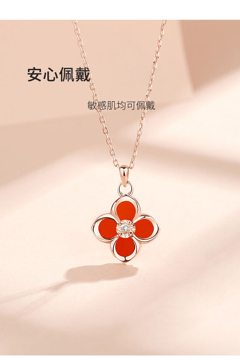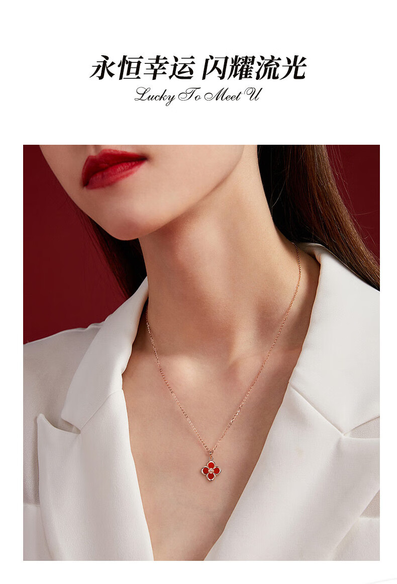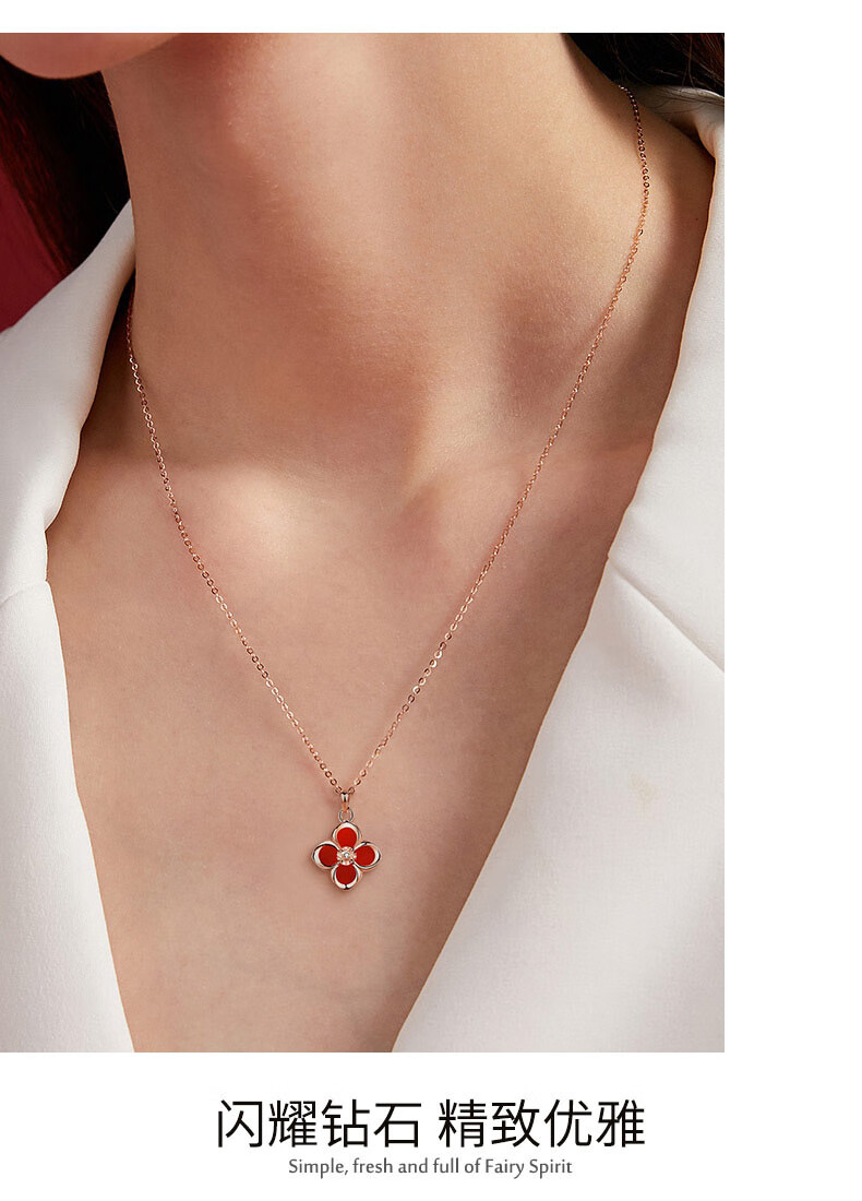FANISHA four-leaf clover 18k gold color gold AU750 necklace for women rose gold jewelry for girls Valentine's Day 520 gift for girls 18k gold and red agate necklace (customized model) customized model