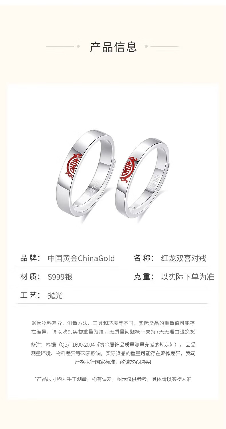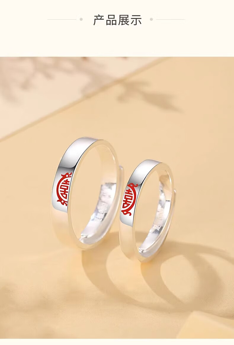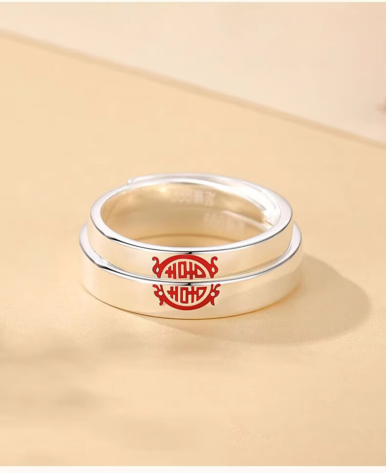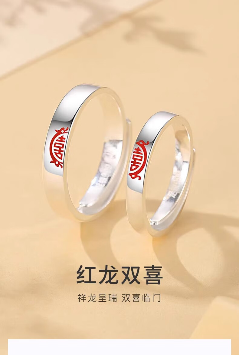 China Gold (CHINA GOLD) Chinese Zodiac Dragon Double Happiness Couple's Ring with "囍" Silver Ring This Valentine's Day Birthday Gift for Girlfriend and Wife Double Happiness Ring Couple's Pair