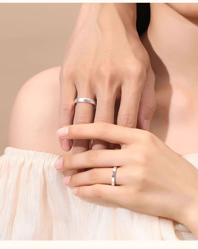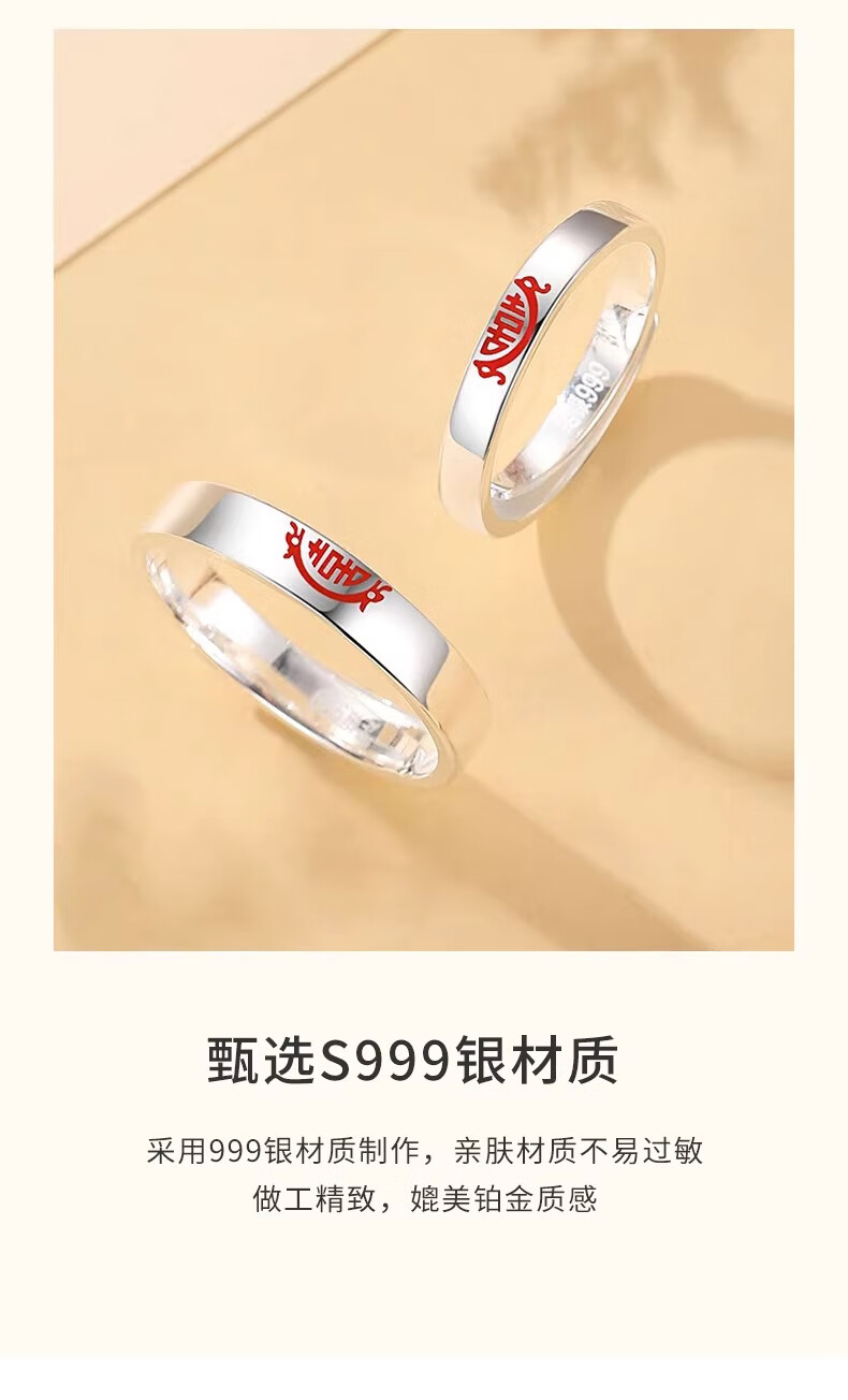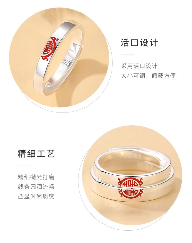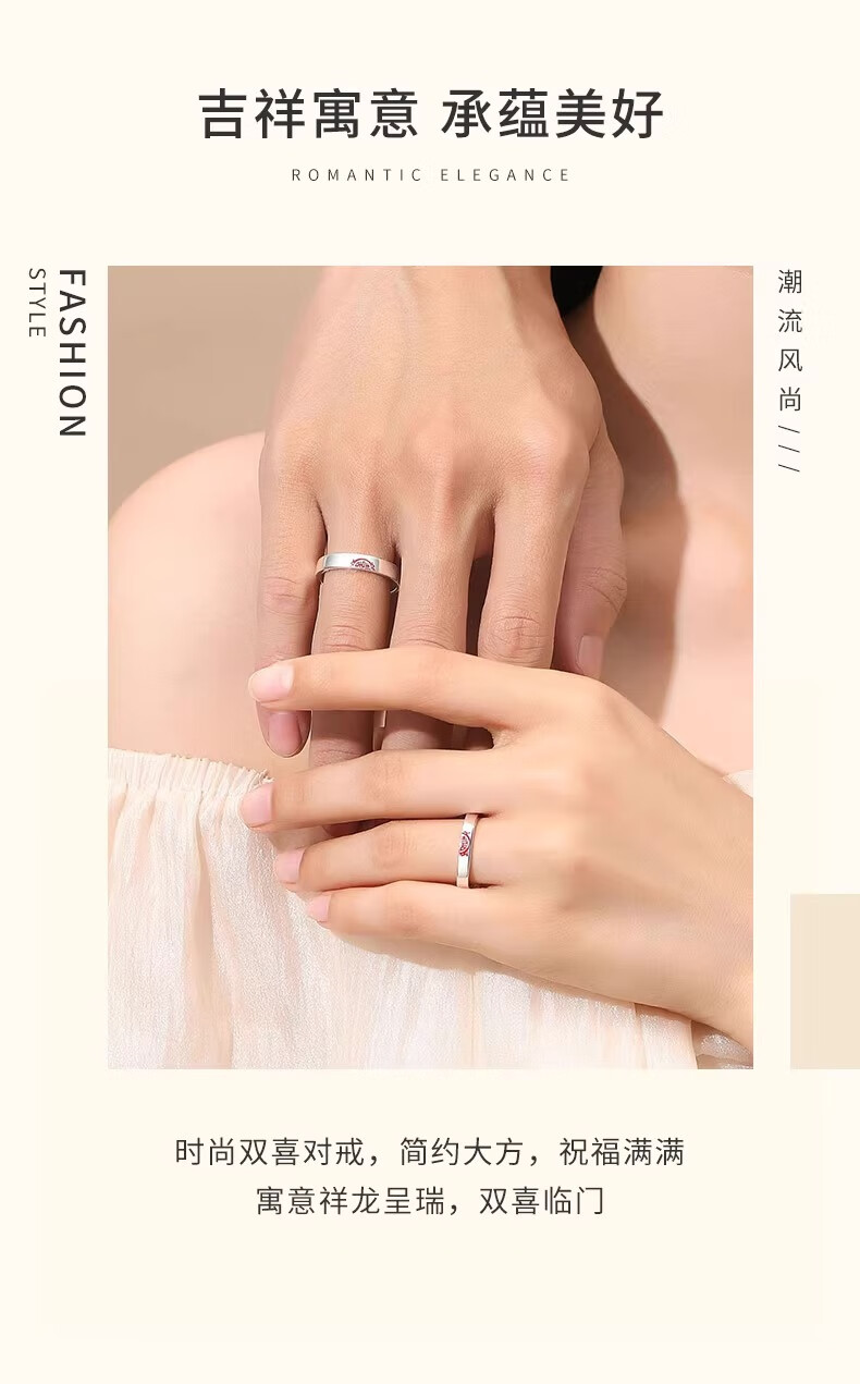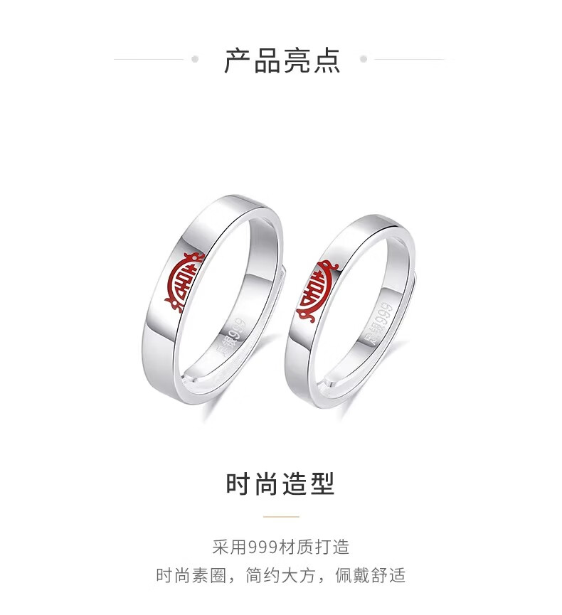 China Gold (CHINA GOLD) Chinese Zodiac Dragon Double Happiness Couple's Ring with "囍" Silver Ring This Valentine's Day Birthday Gift for Girlfriend and Wife Double Happiness Ring Couple's Pair
