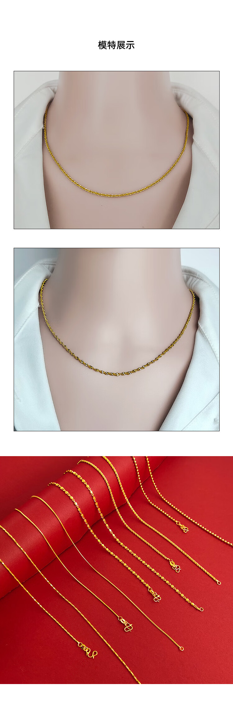 Cologne Jue thin necklace clavicle chain plain chain without pendant 18K gold necklace for men and women 999 gold Vietnamese sand I gold snake bone chain 3.5 grams + counter gift box