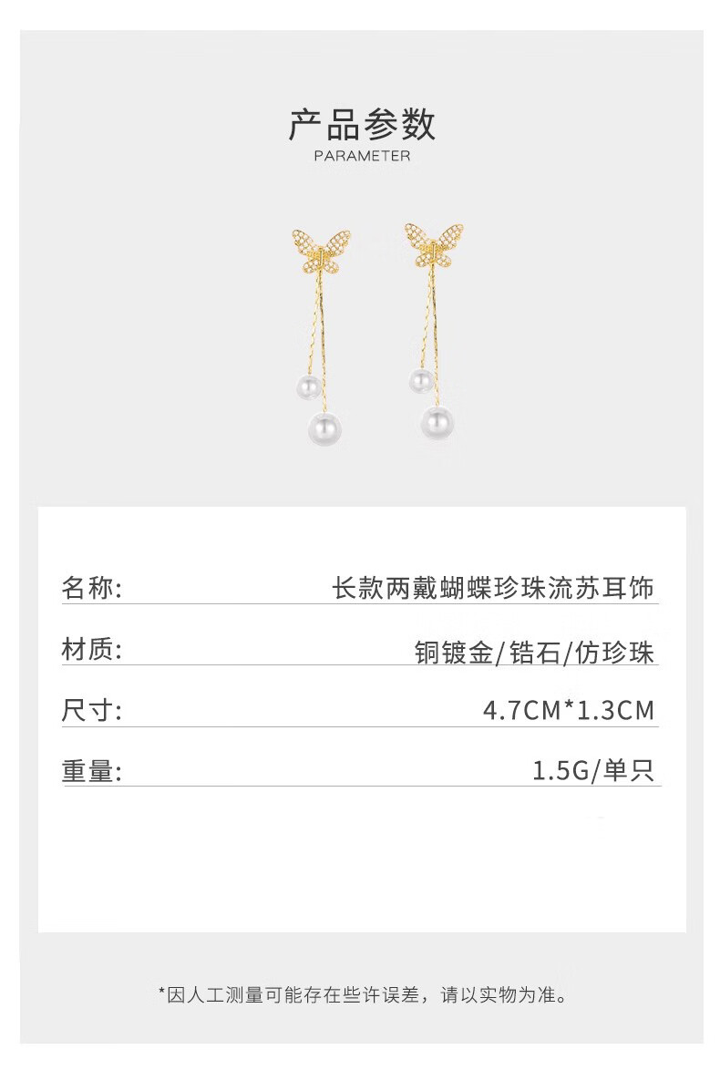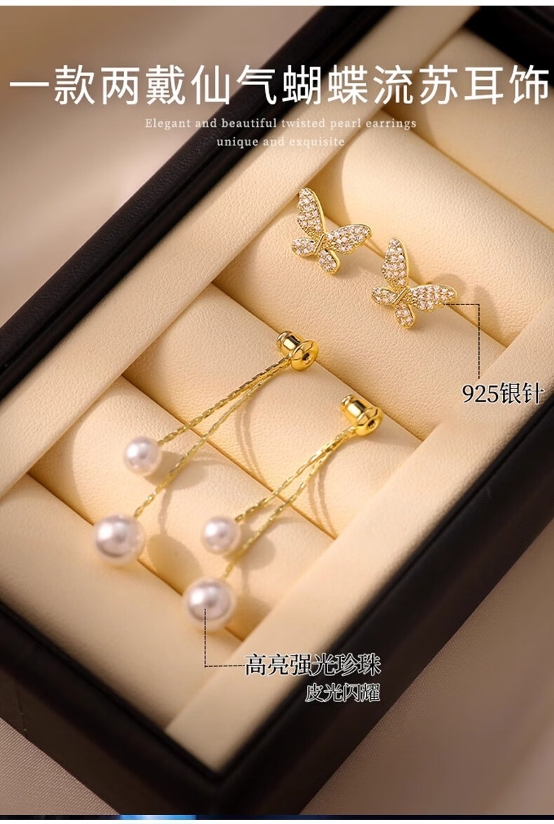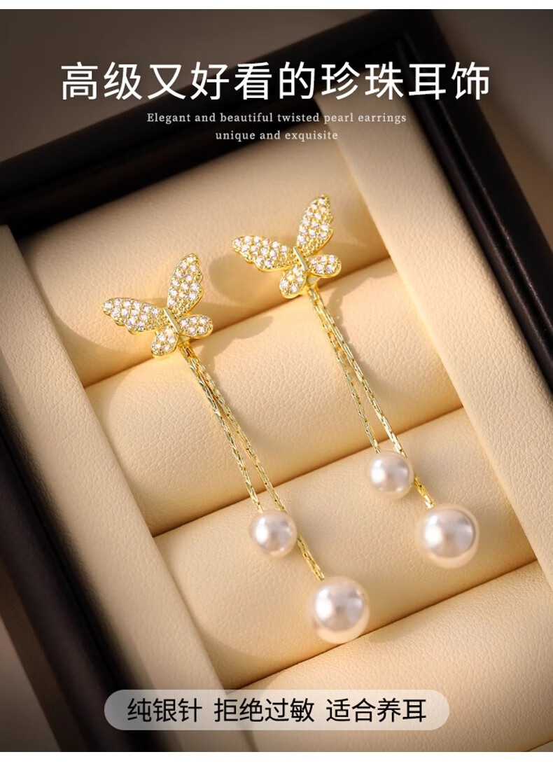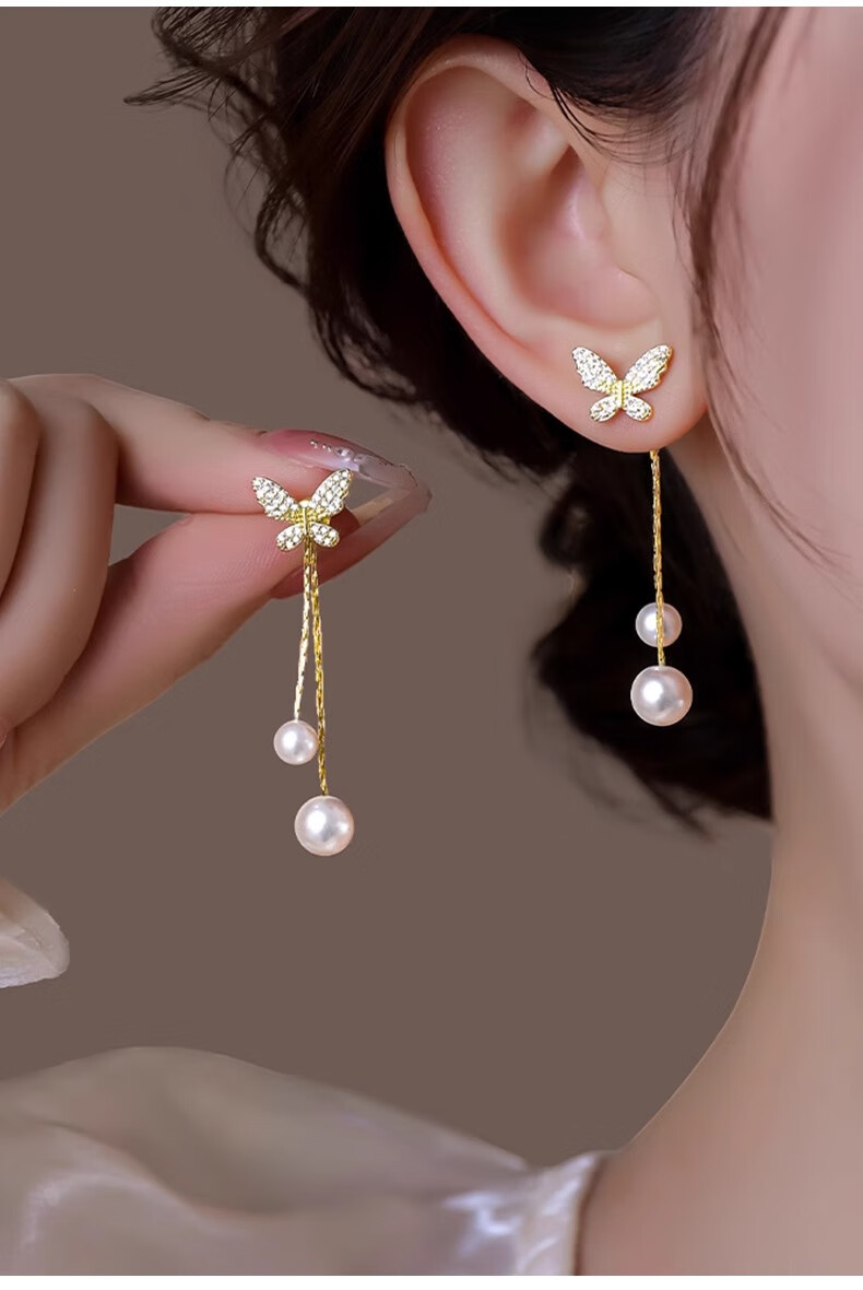 Mondele brand earrings S925 silver needle material butterfly pearl women's 2025 new light luxury and high-end temperament earrings golden butterfly pearl earrings
