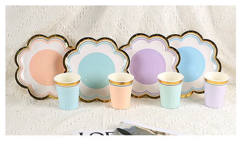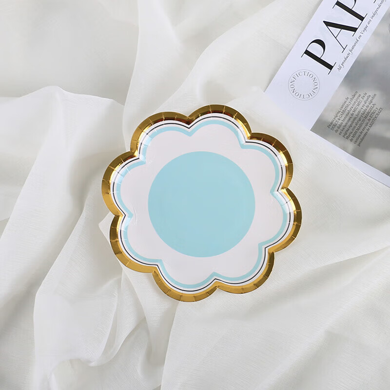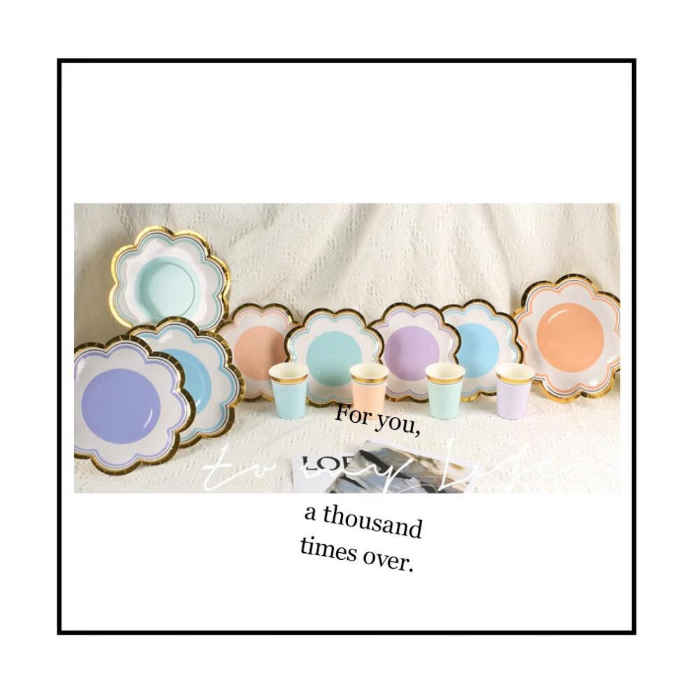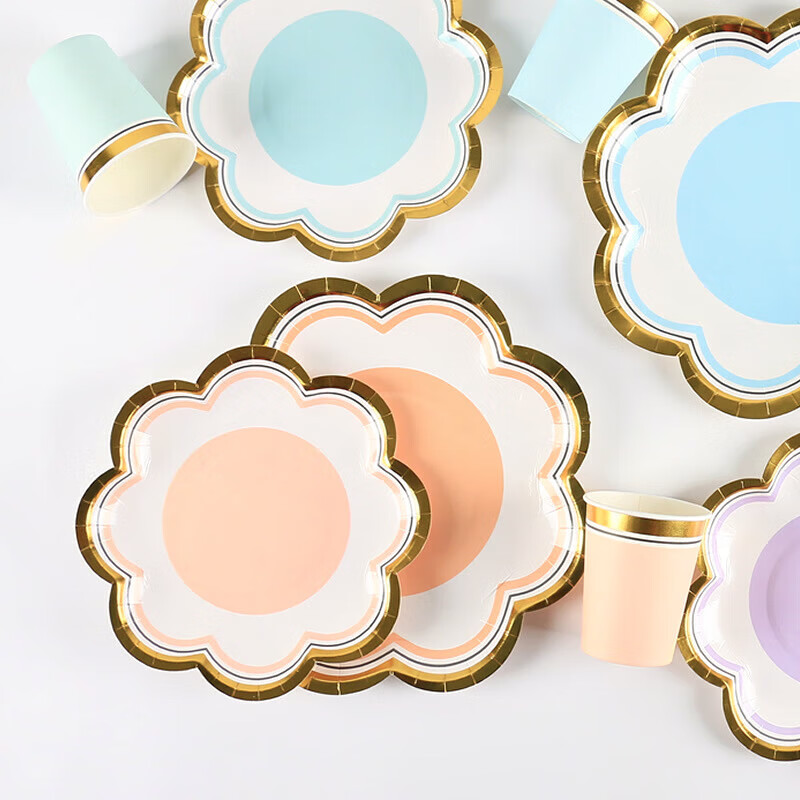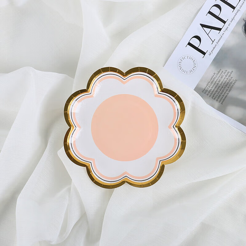 Haofanjie disposable color paper dinner plate food grade birthday tableware dessert snack plate bone plate large plate 7 inch purple petal paper plate 10 pieces