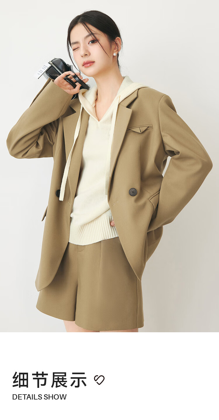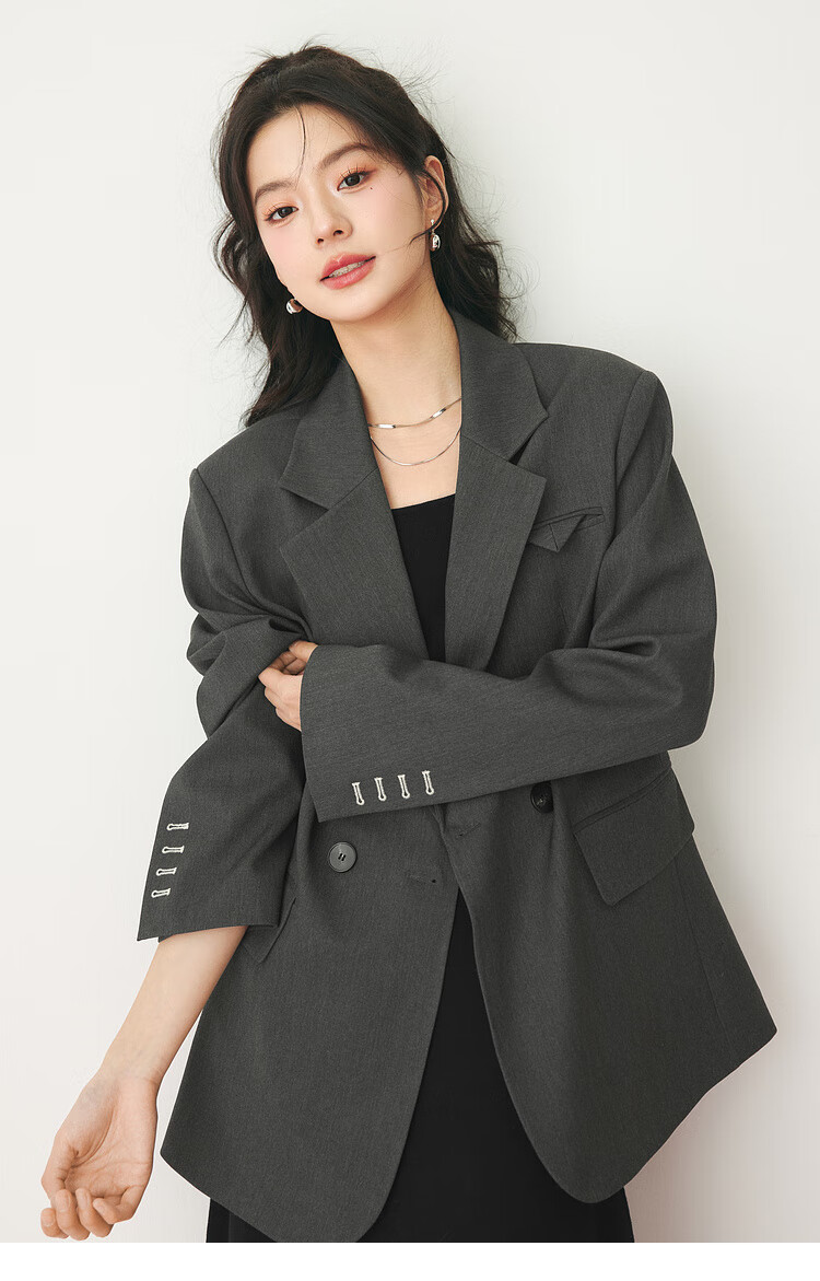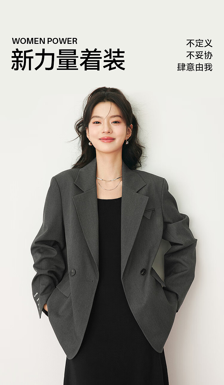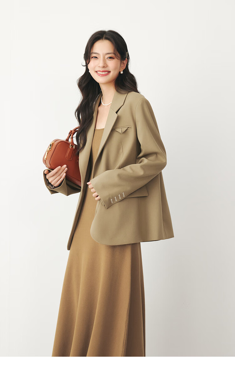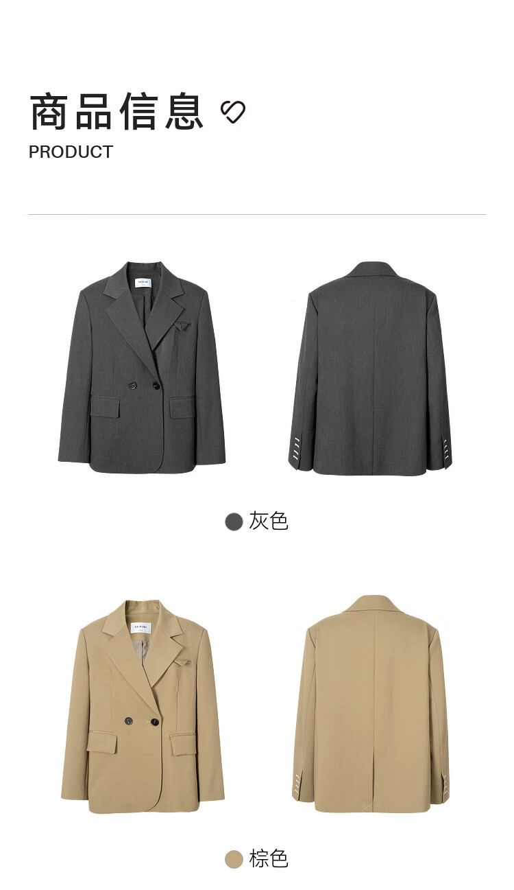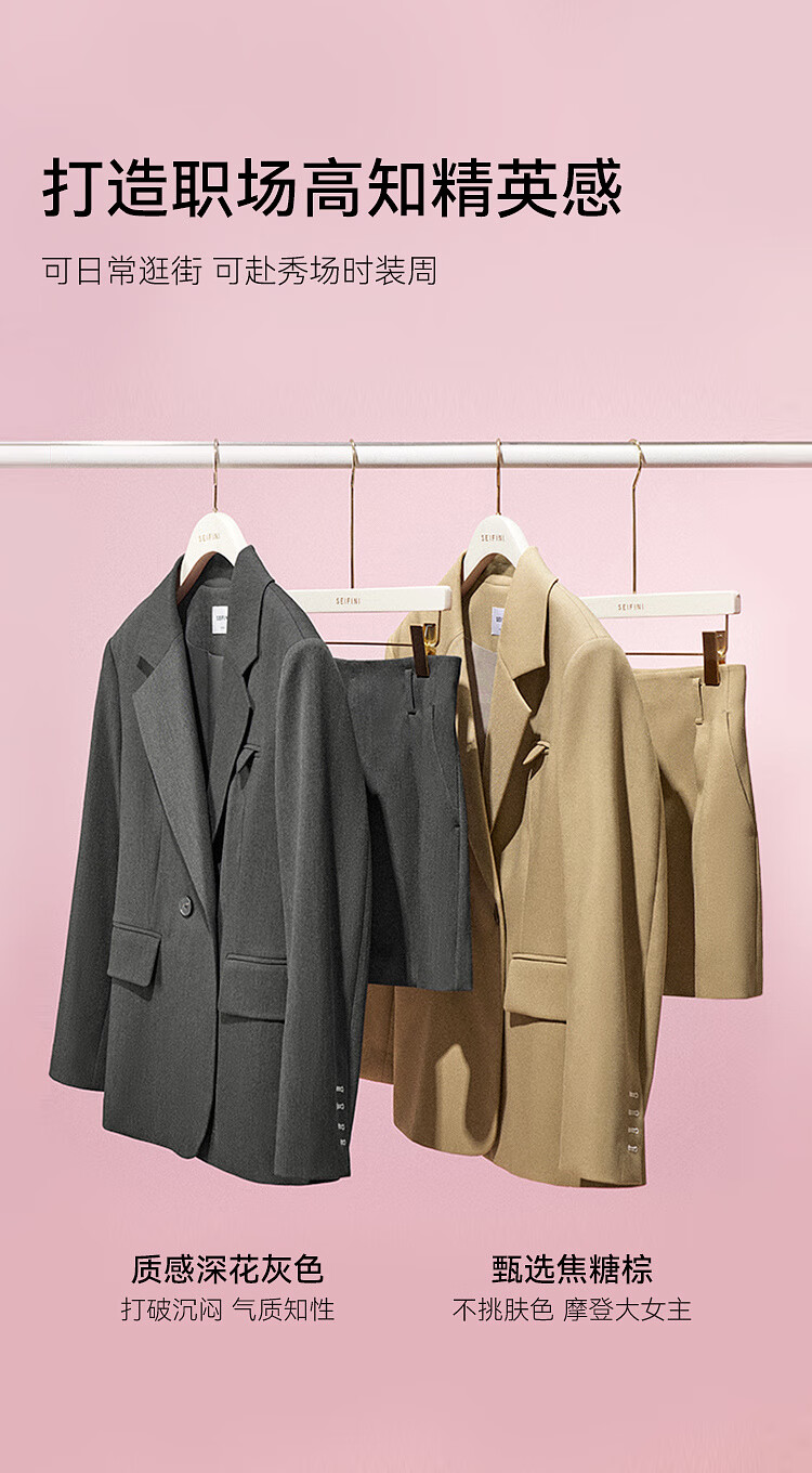 Shifanli (S EIFINI) Shifanli high-end gray suit jacket 2024 autumn new style small pink casual temperament workplace suit brown ready M