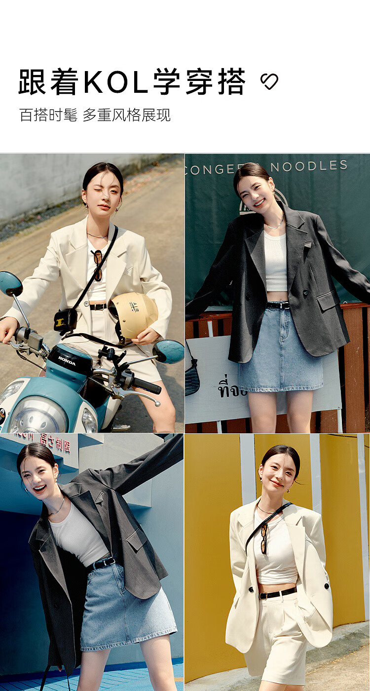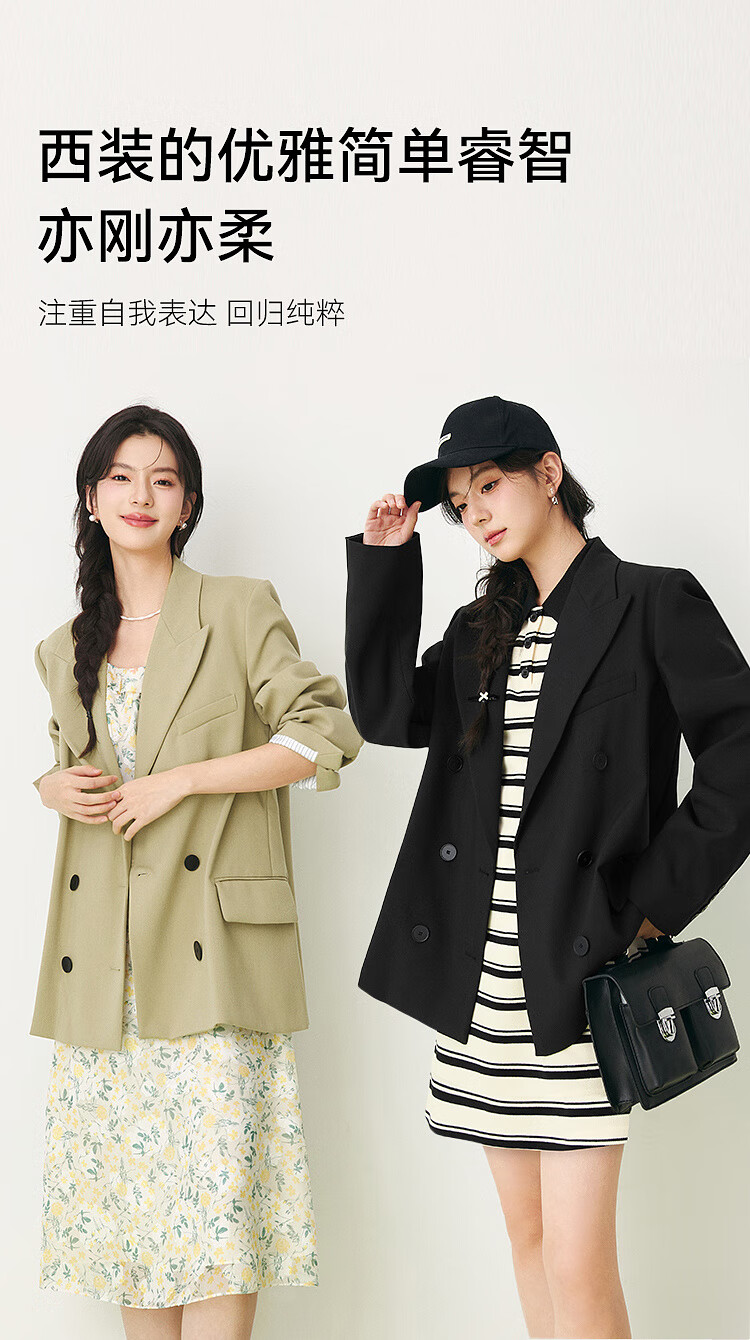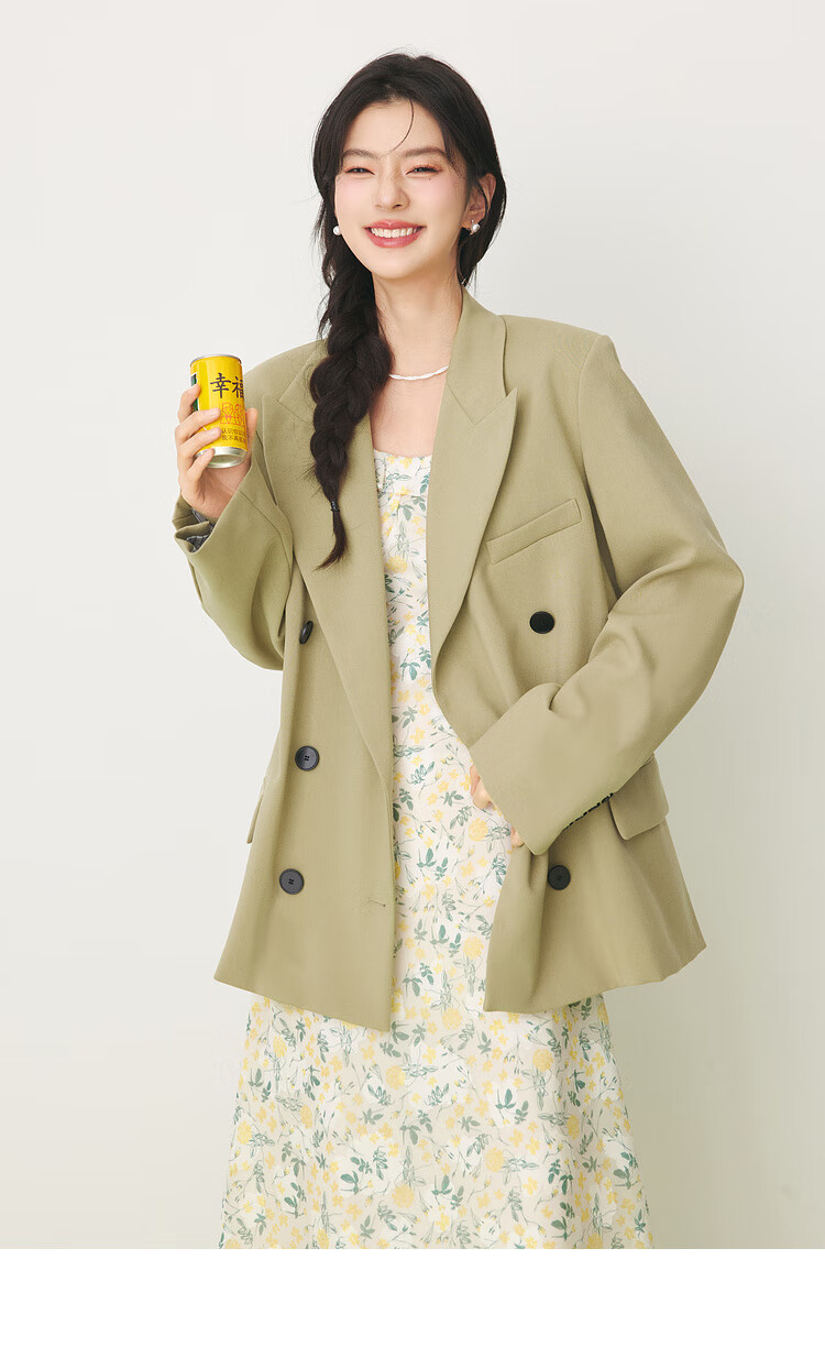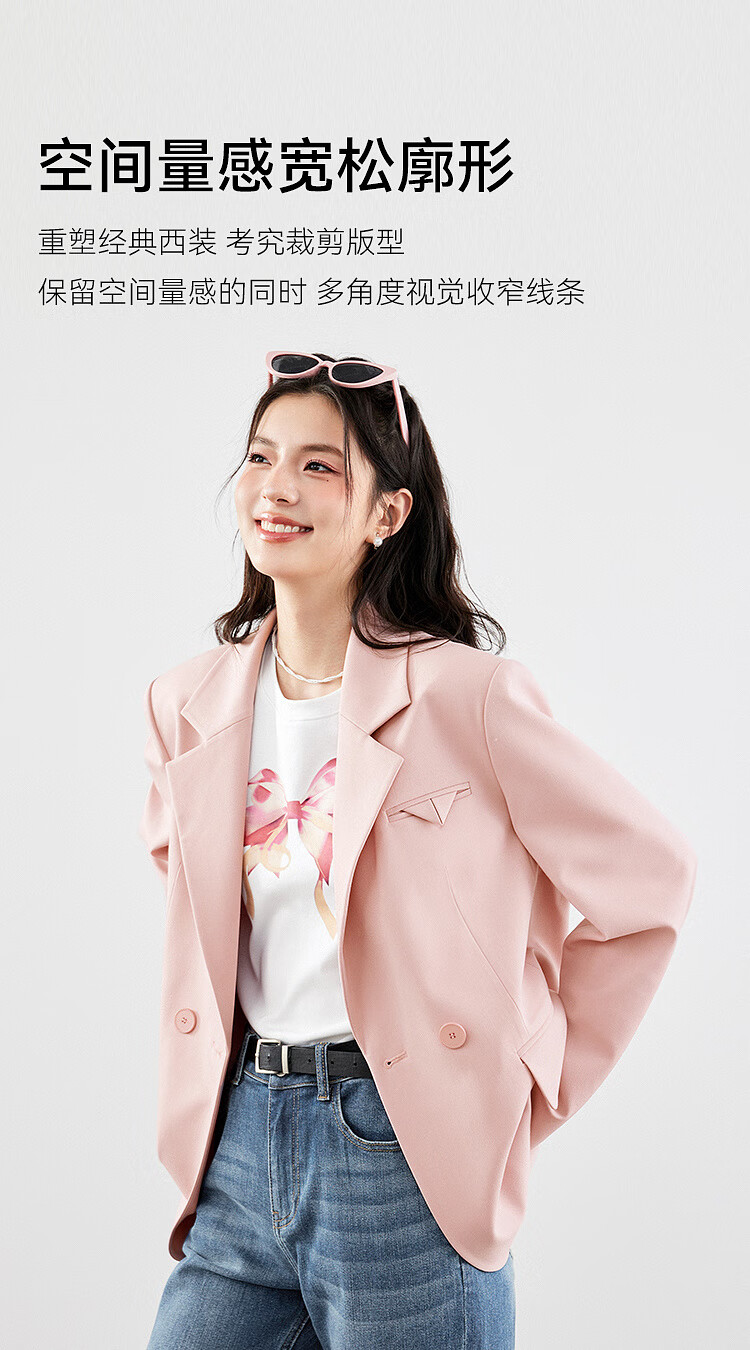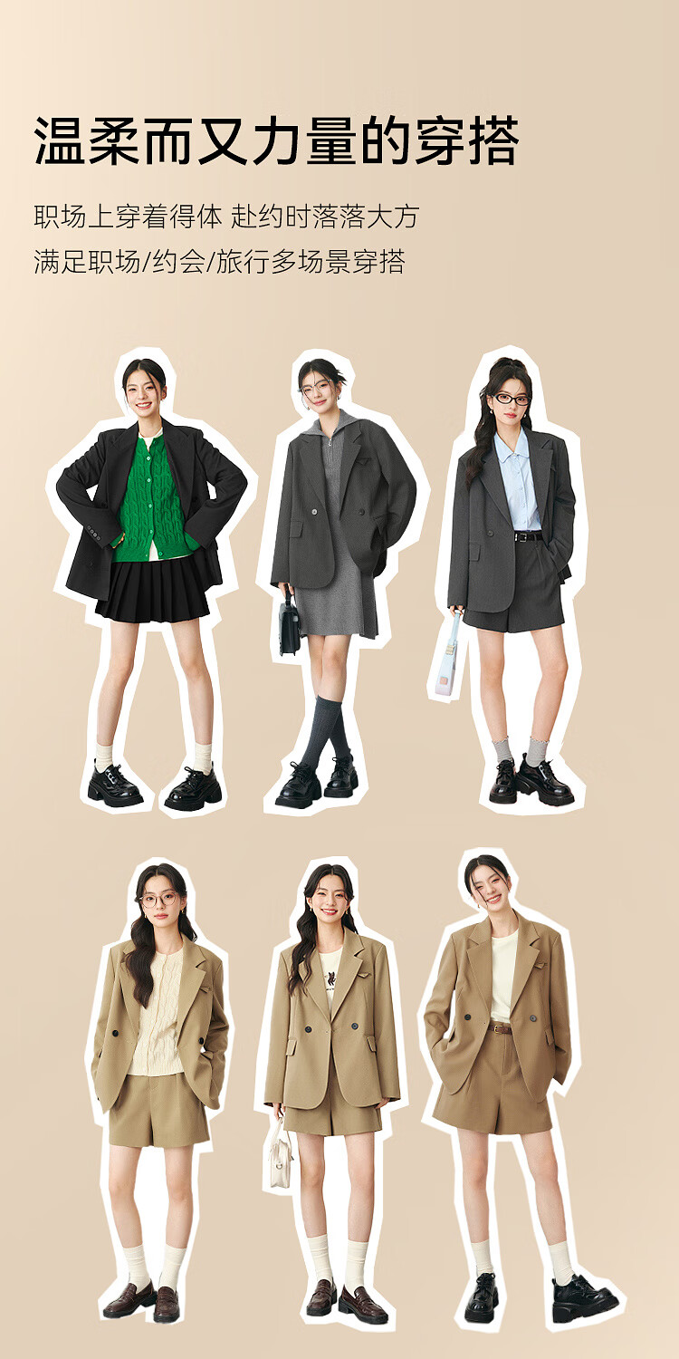 Shifanli (S EIFINI) Shifanli high-end gray suit jacket 2024 autumn new style small pink casual temperament workplace suit brown ready M