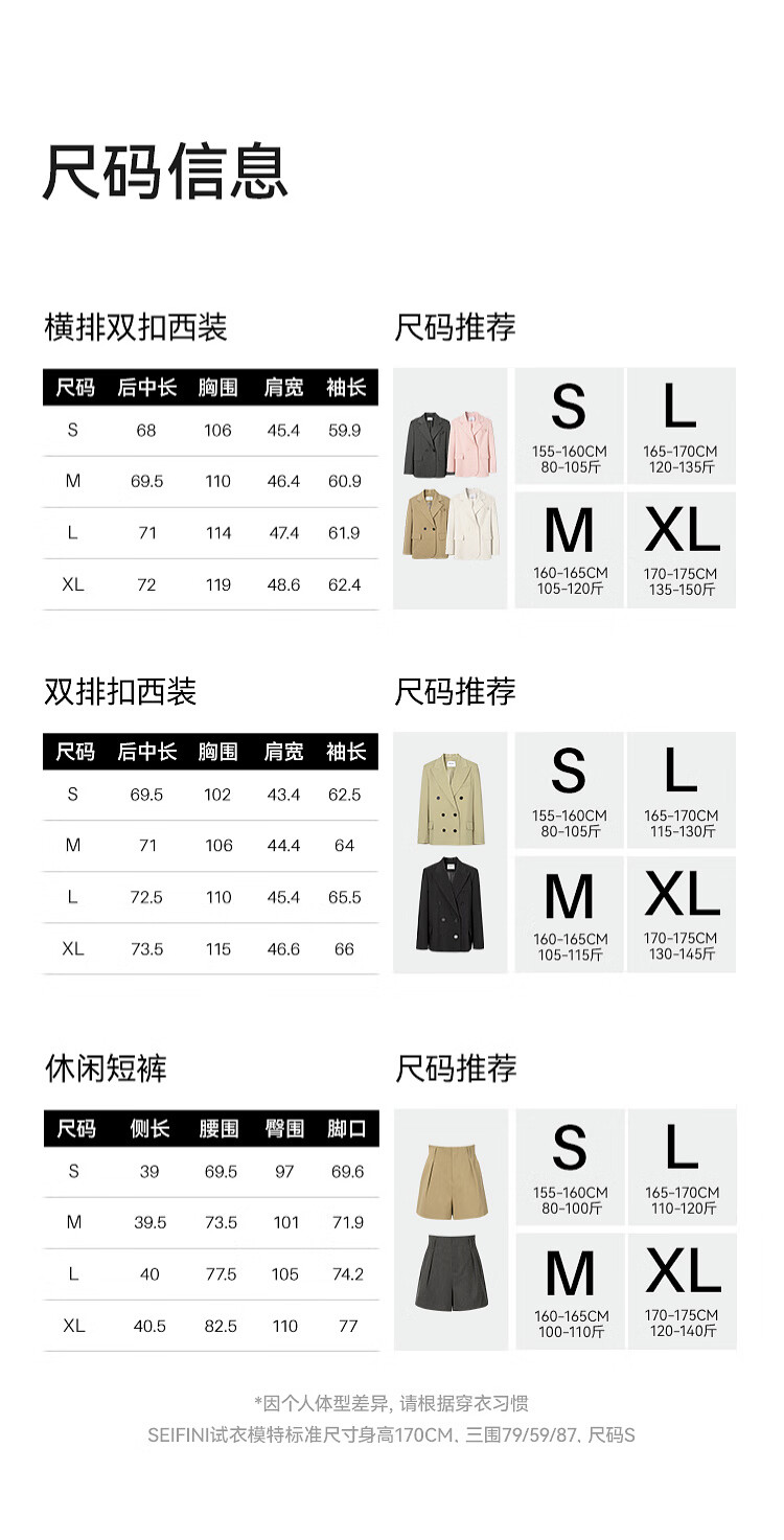 China (cm) 160-165/84-86 165-170 / 88-90 167-172 / 92-96 168-173 / 98-102 170-176 / 106-110