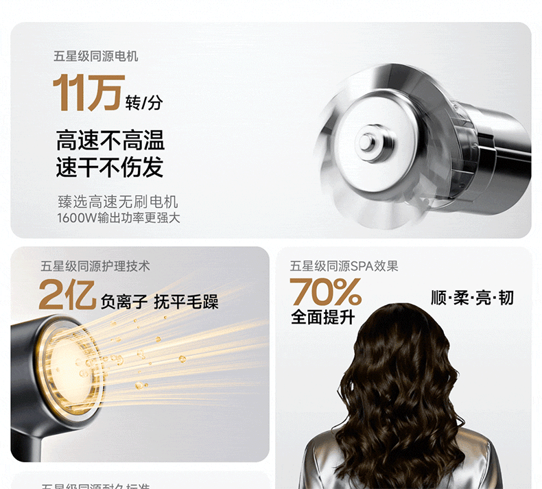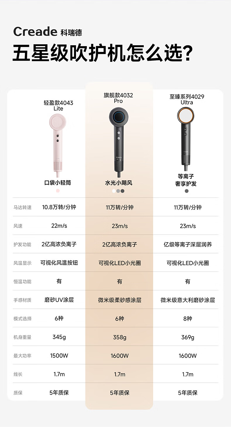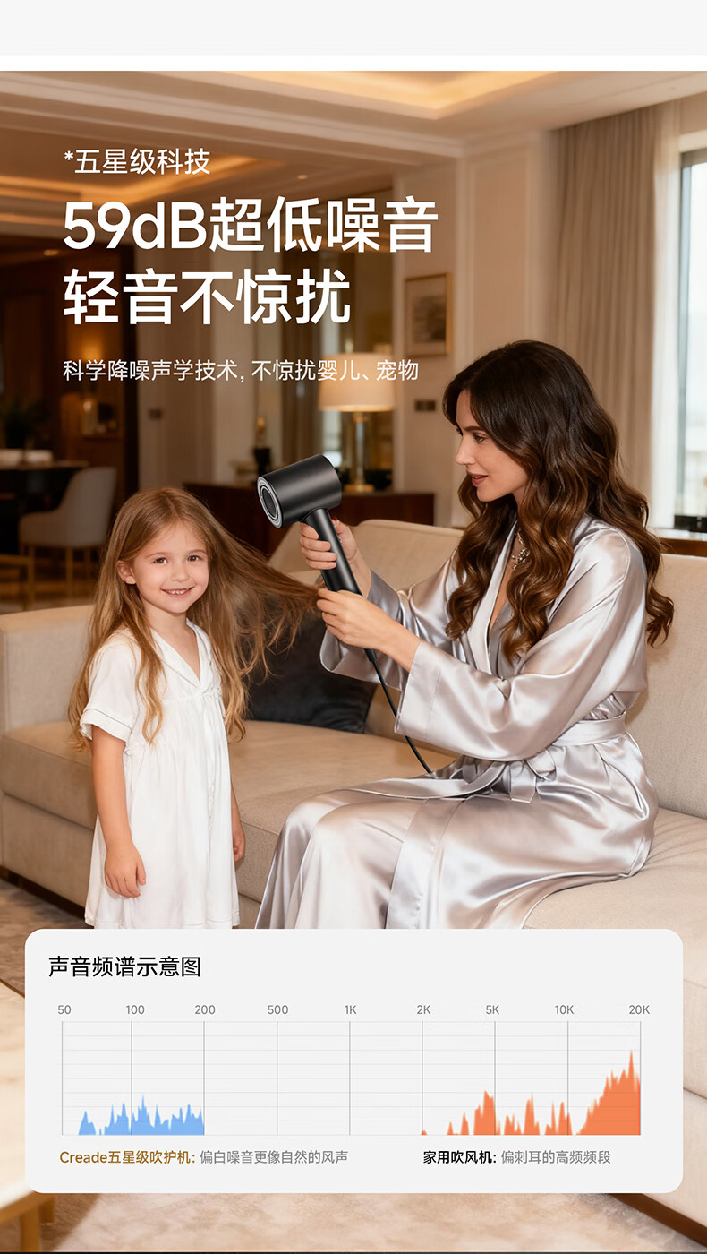 Creade high-speed hair dryer home hair drying high-power quick-drying negative ion hair care hotel hair dryer birthday gift Valentine's Day gift box K-4032 national subsidy K-4032 platinum gray