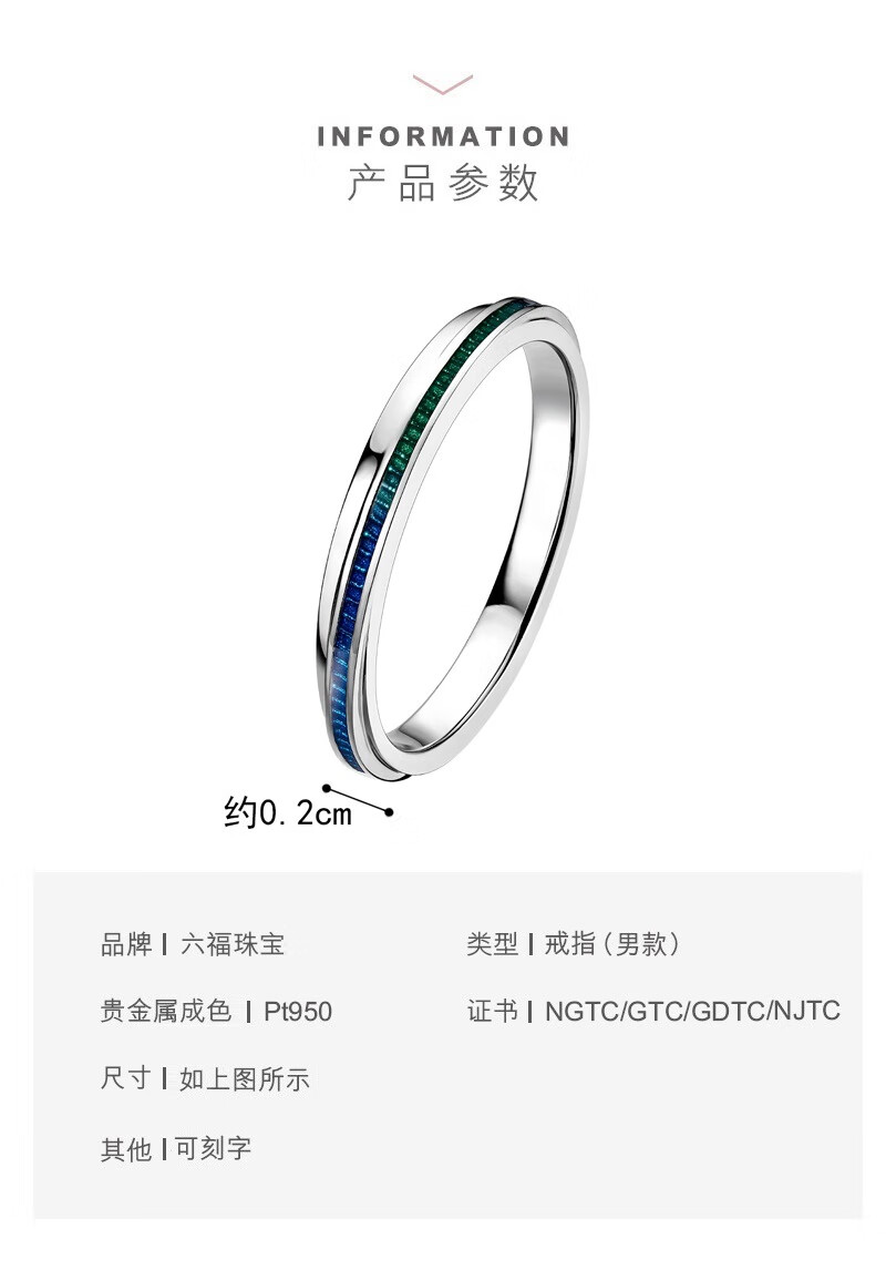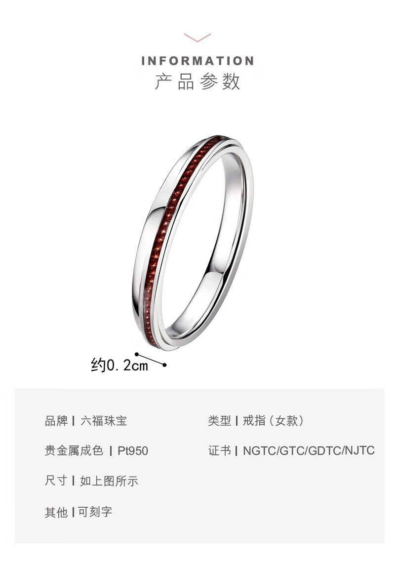 Lukfook Jewelry Platinum 950 Love Platinum Ring Couple Wedding Pair Ring Single Price GJPTBR0007 No. 17-4.17g (including labor cost 680 yuan) Men's model