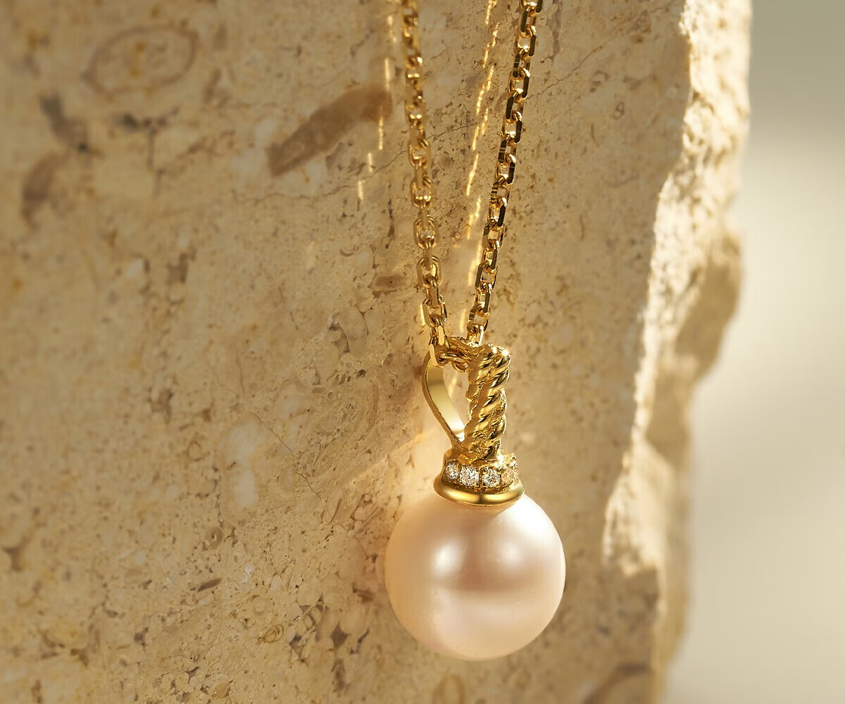 LYNNHAVEN EARTH twist Akoya pearl universal buckle 18K gold wheat ear single pendant buckle mother 8-8.5mm
