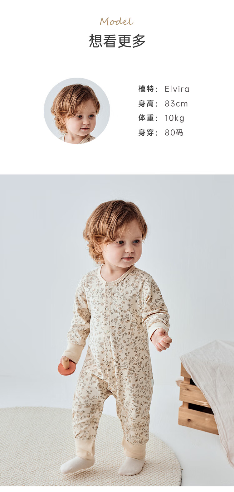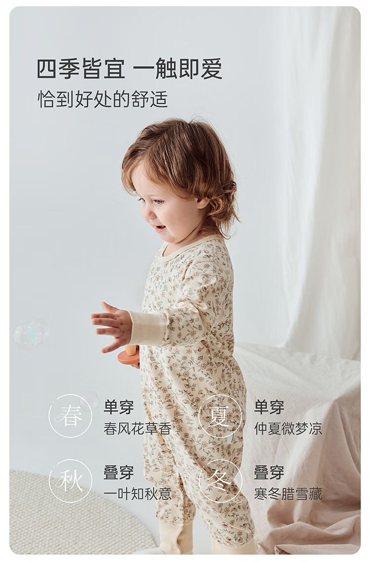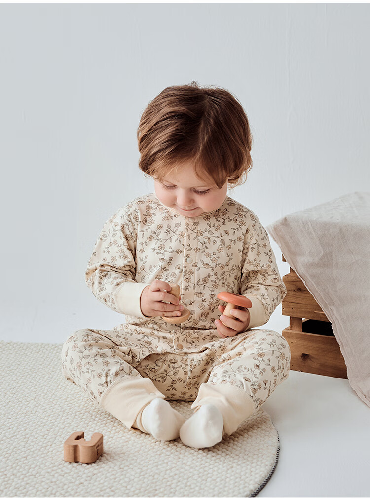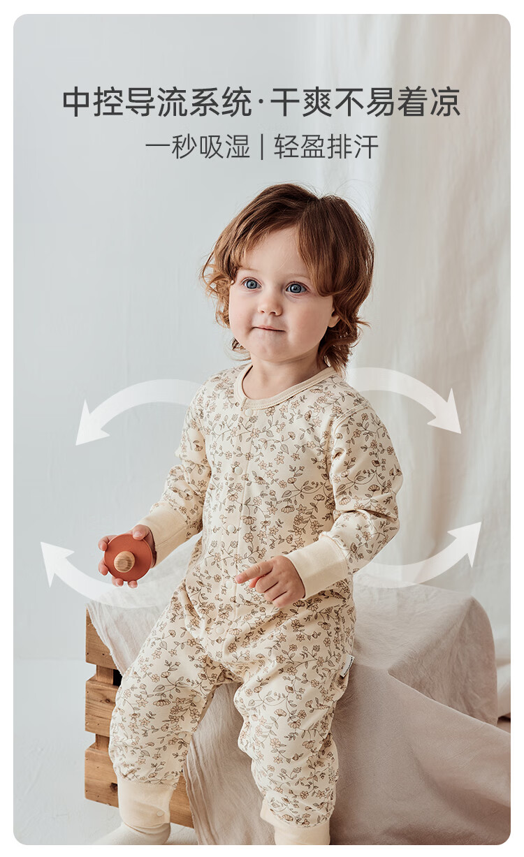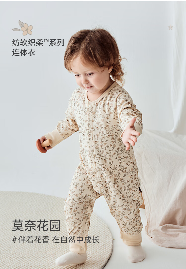 Babylove spun soft fabric baby jumpsuit spring and autumn baby pure cotton romper newborn clothes autumn clothing base Monet Garden 66cm