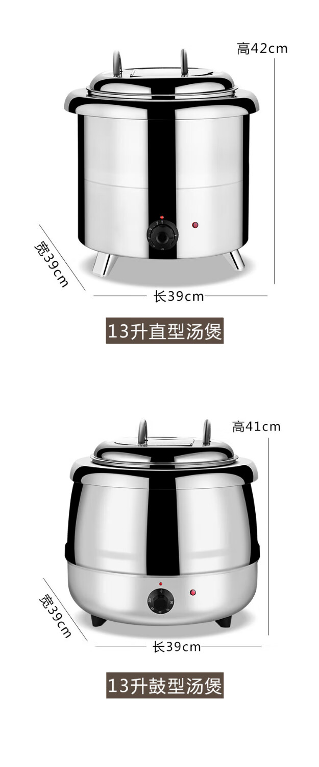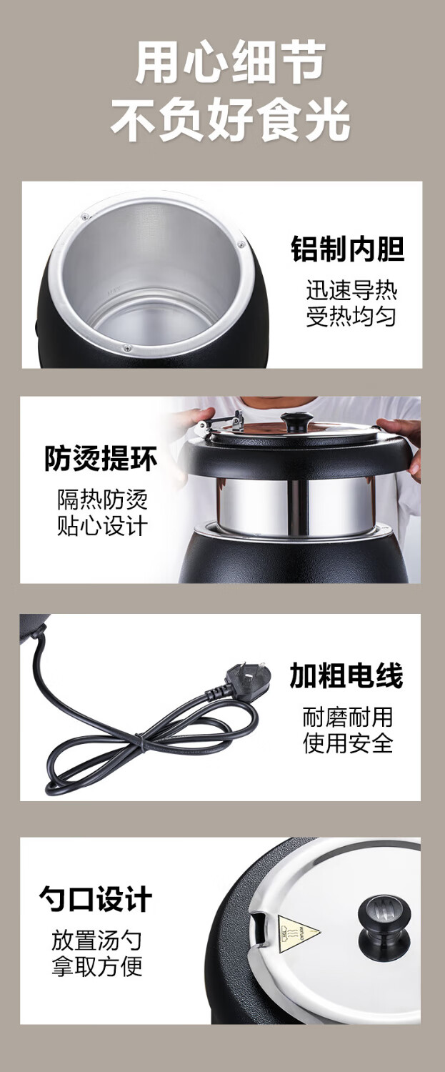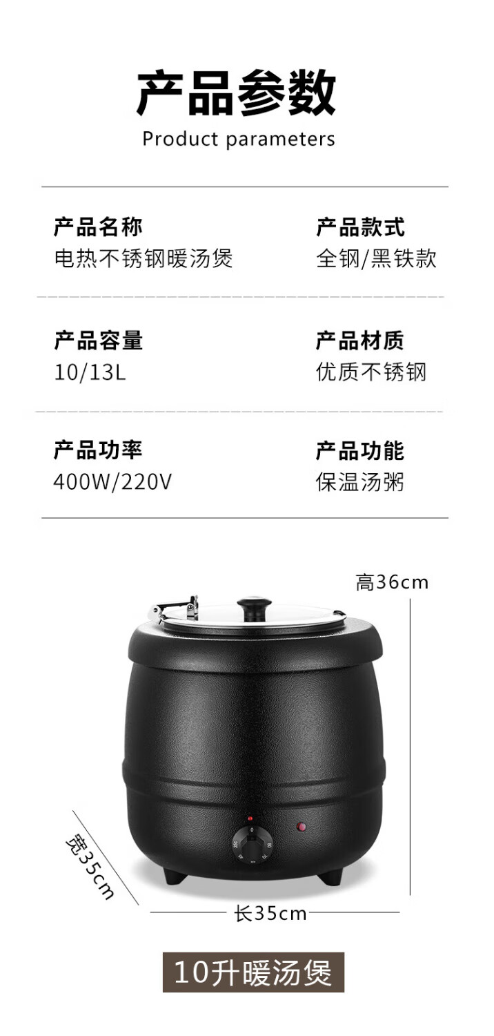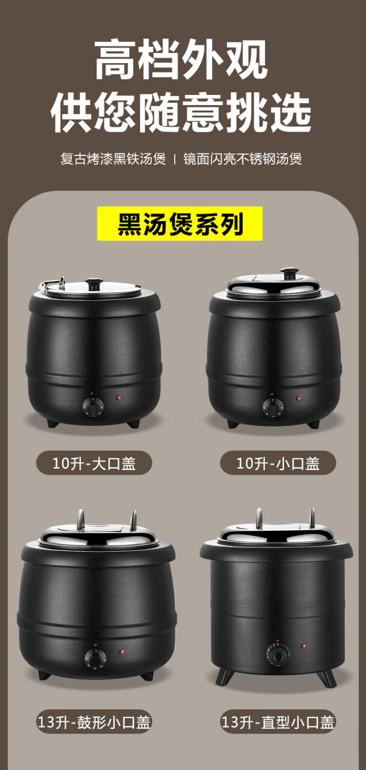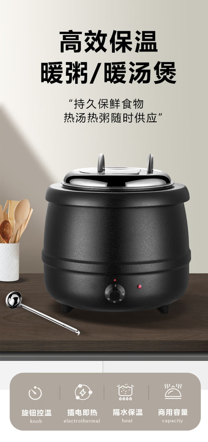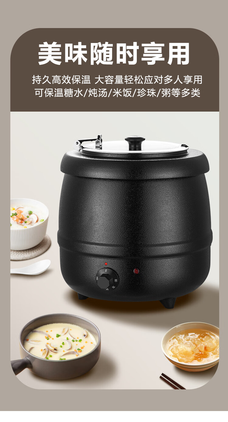 Tamara Warm Soup Pot Commercial 10L Insulated Porridge Bucket Soup Pot Warm Porridge Bucket Porridge Pot Electric Heating Insulated Pot Soup Stove Electric Heating 13L Drum-shaped Black Soup Pot/Small Mouth Lid 304 Liner