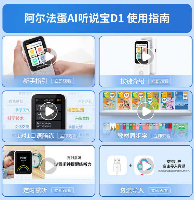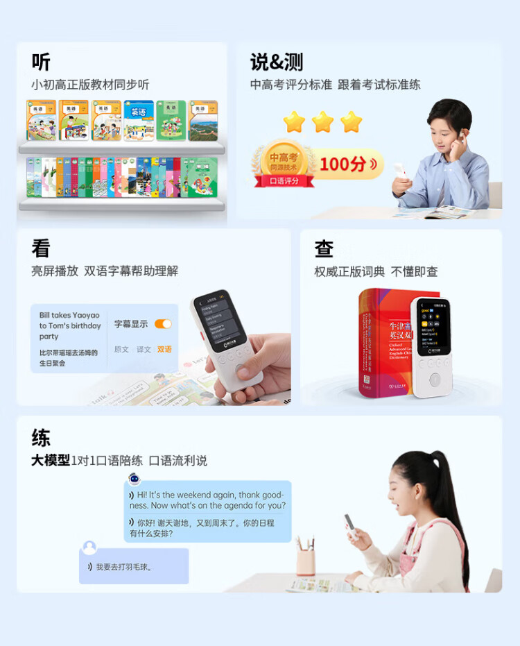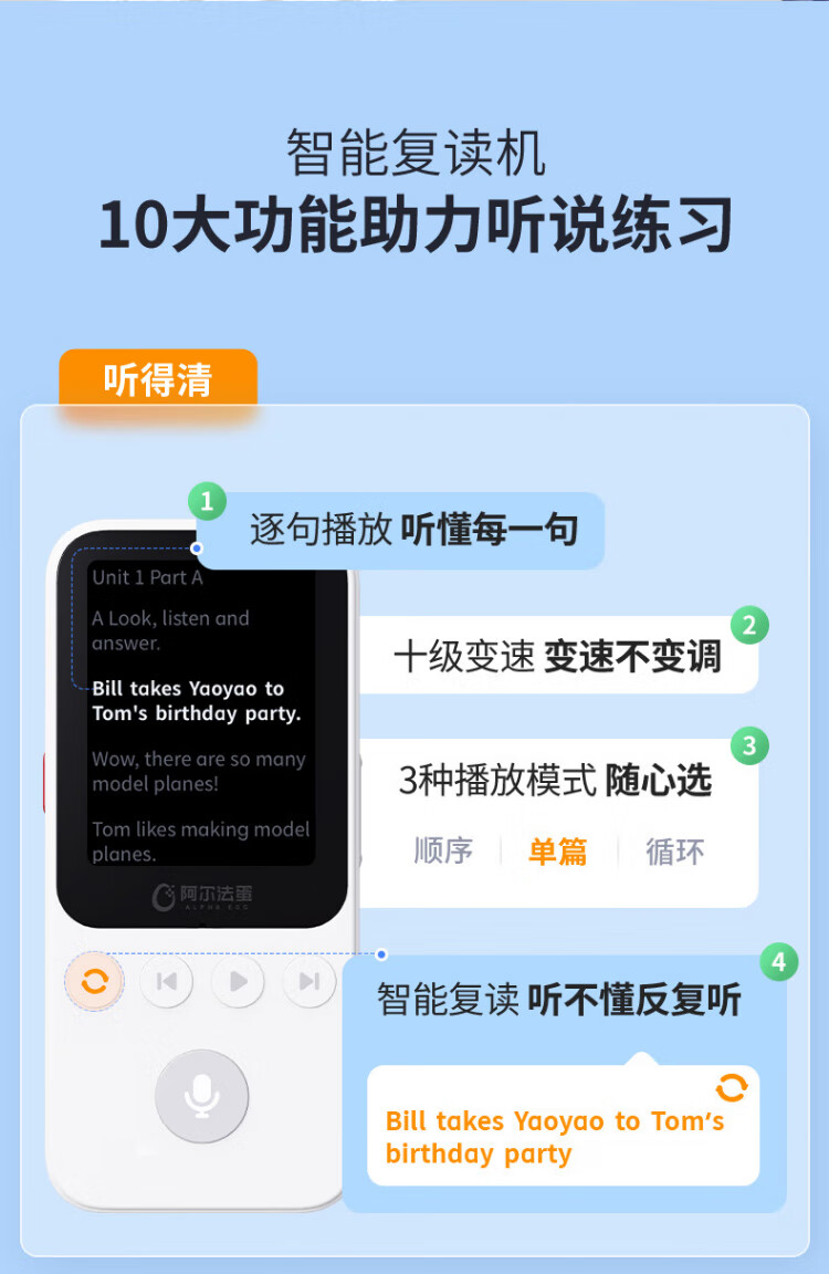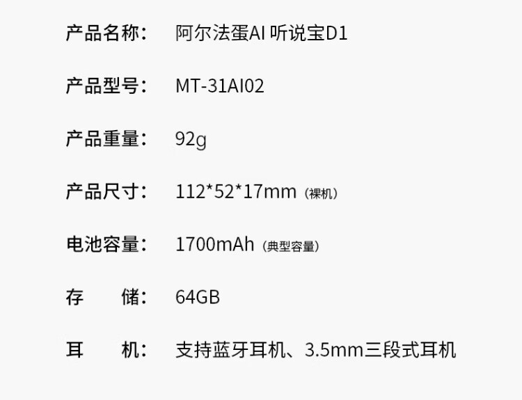Alpha Egg Listening Treasure D1 Listening Treasure AI Bilingual 64GB White English Listening Walkman Foreign Research Edition Intelligent Listening Repeat Learning Machine English Artifact English Listening Treasure Listening Treasure D1 Standard Edition-64G