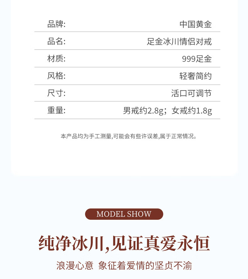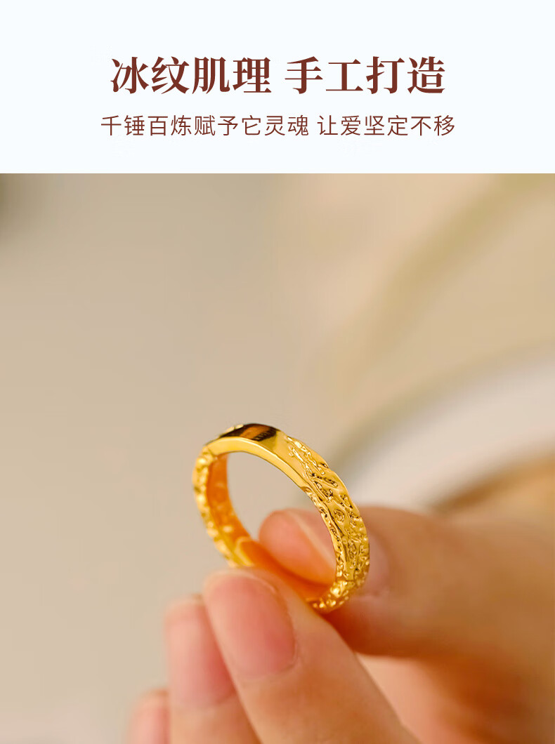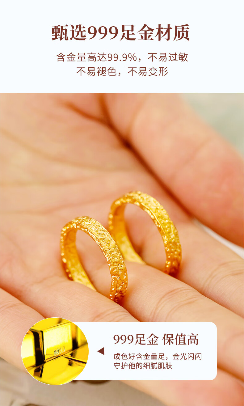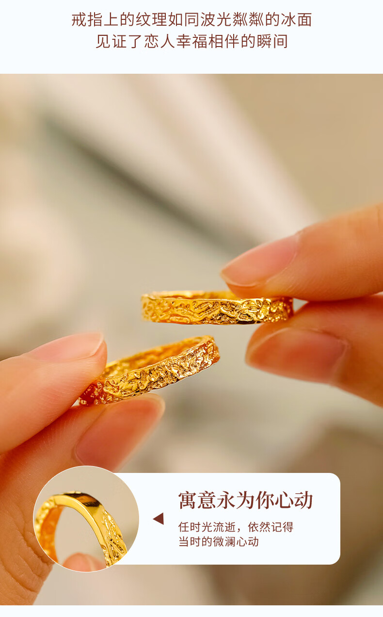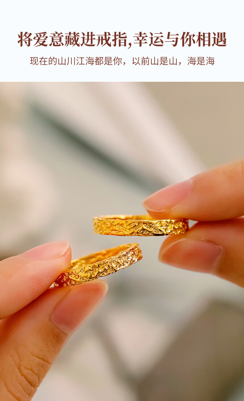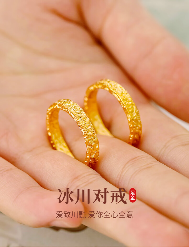 China Gold (CHINA GOLD) Glacier Gold Ring for Men and Women. Pure Gold Order. Wedding and Birthday Gifts for Girlfriend and Wife. Practical to commemorate. Jingqida Pure Gold Glacier Couple Ring - One Pair
