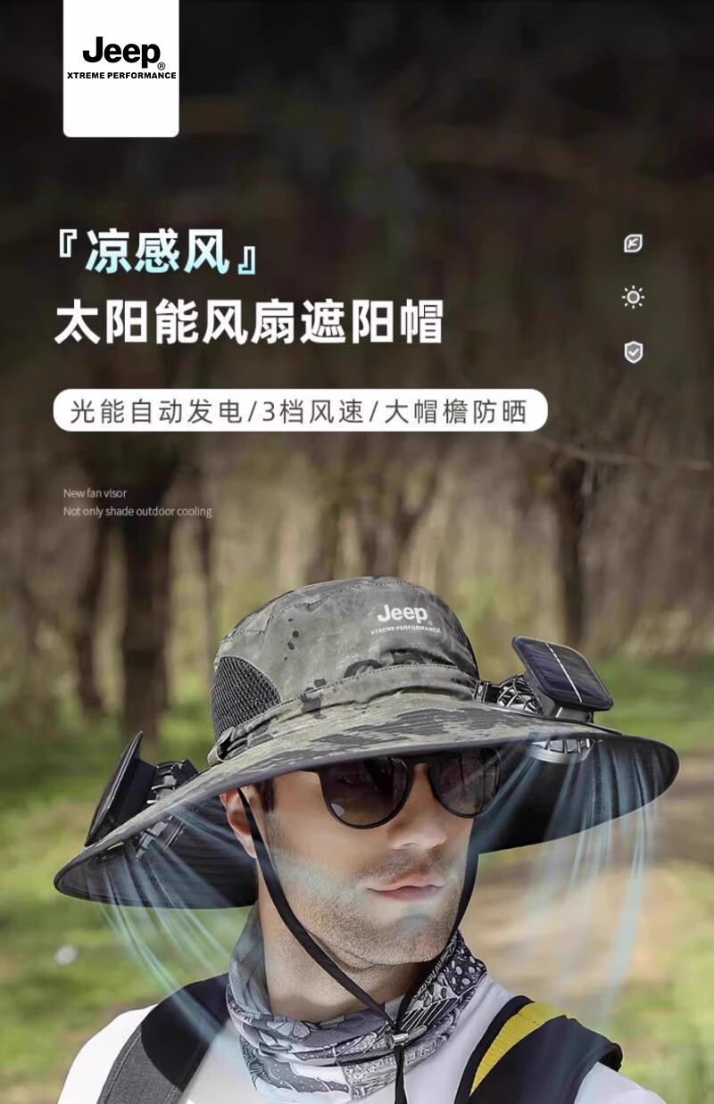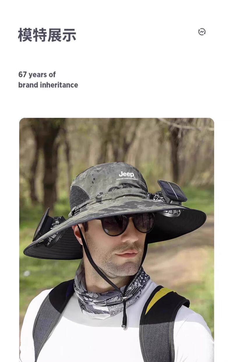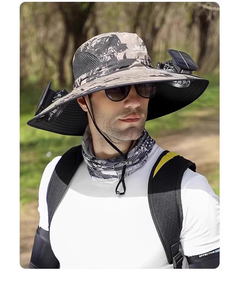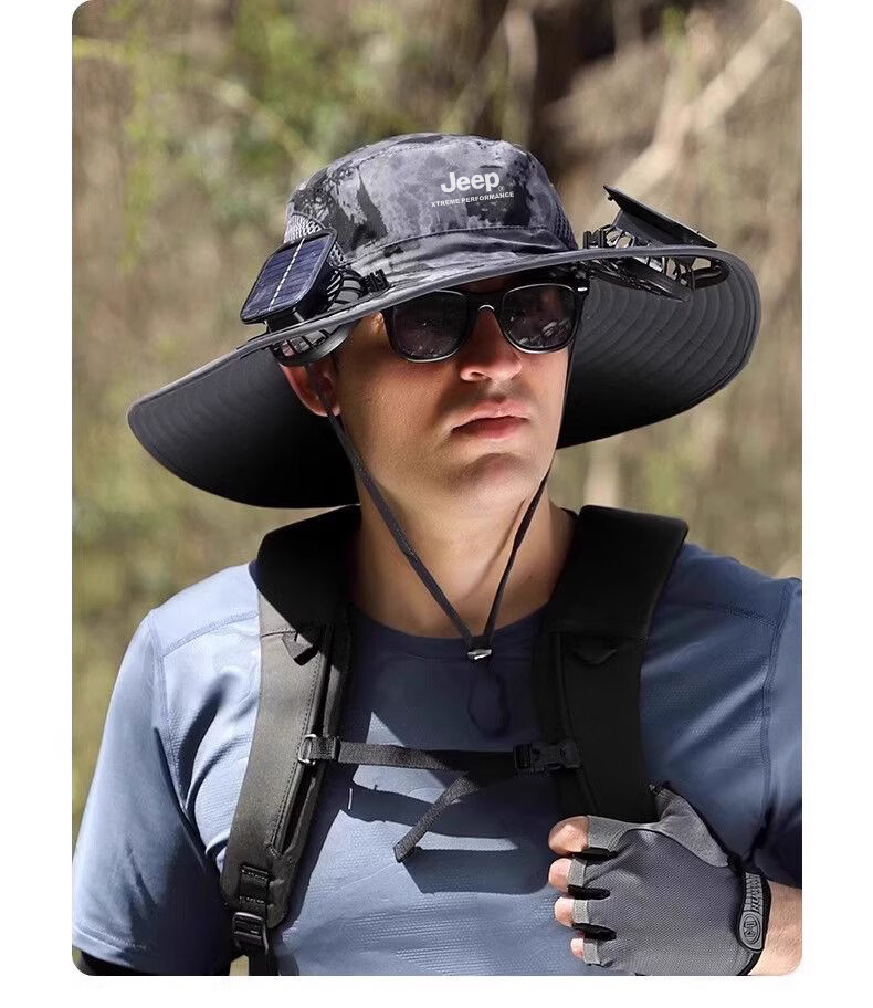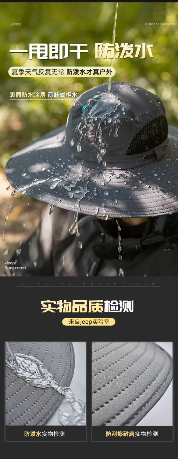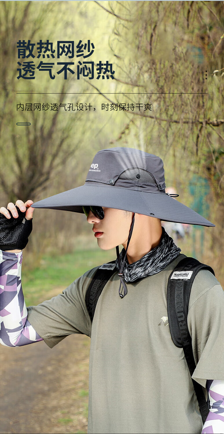 JEEP Jeep sun hat men's summer fishing hat outdoor mountaineering sunshade anti-UV men's large brim fisherman hat light gray