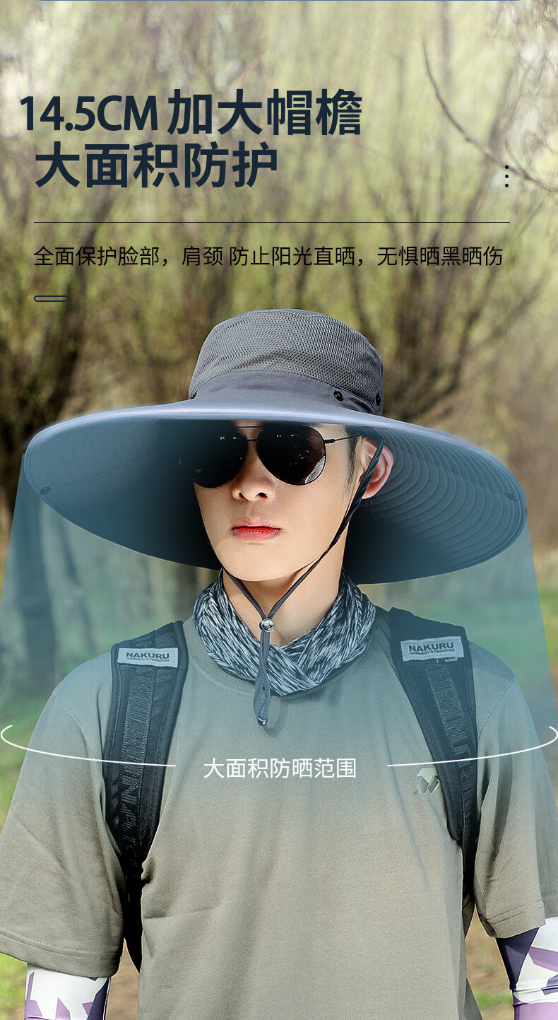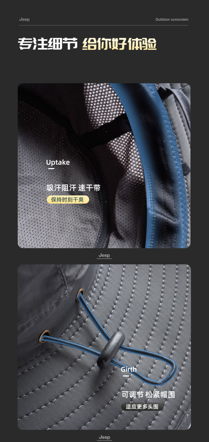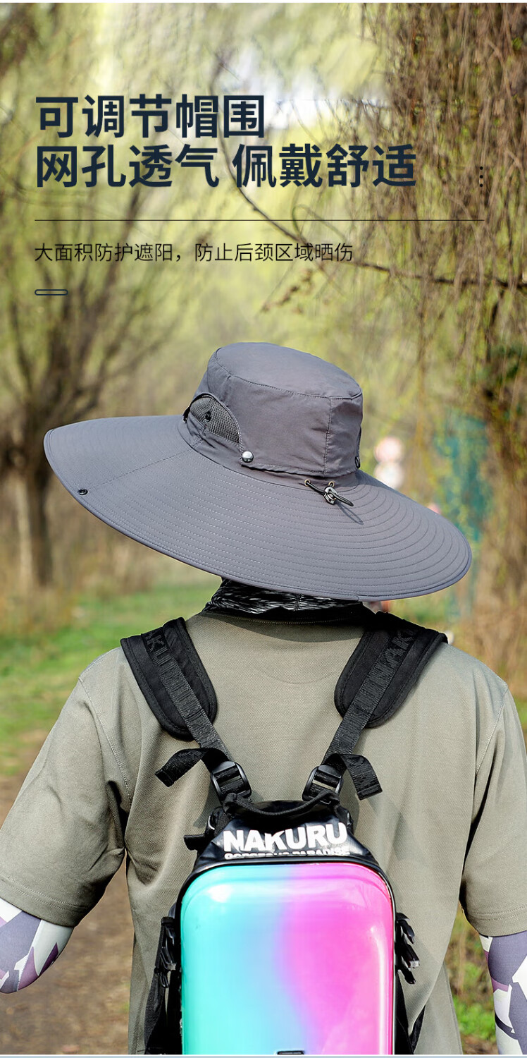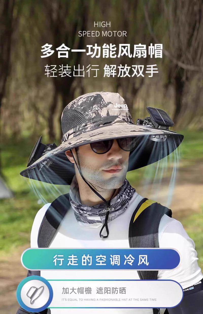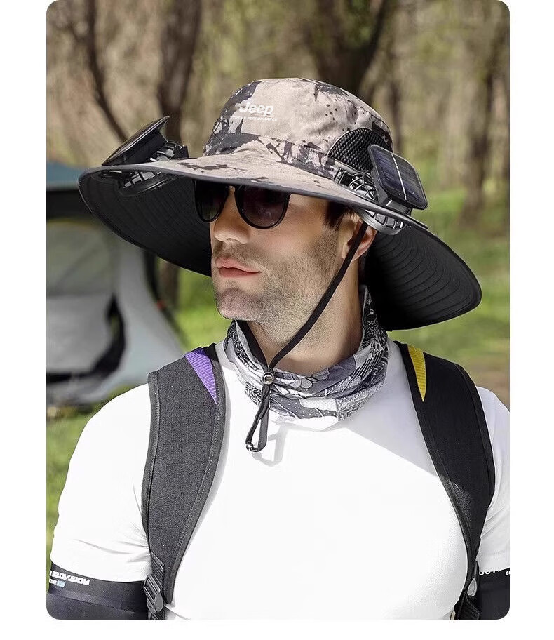 JEEP Jeep sun hat men's summer fishing hat outdoor mountaineering sunshade anti-UV men's large brim fisherman hat light gray
