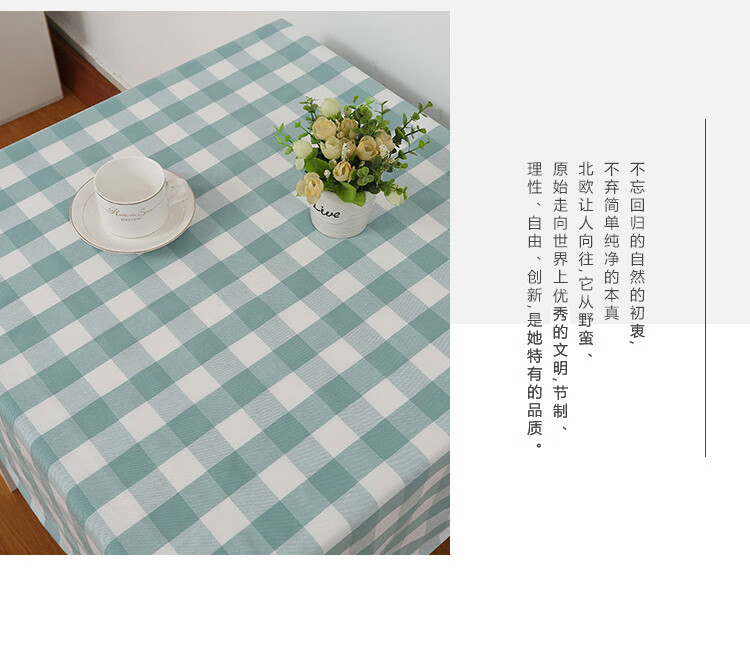 Yizixiu Nordic checkered tablecloth pure cotton and linen thickened coffee table sofa cover modern fresh checkered tablecloth simple tablecloth green small plaid customized various sizes non-returnable