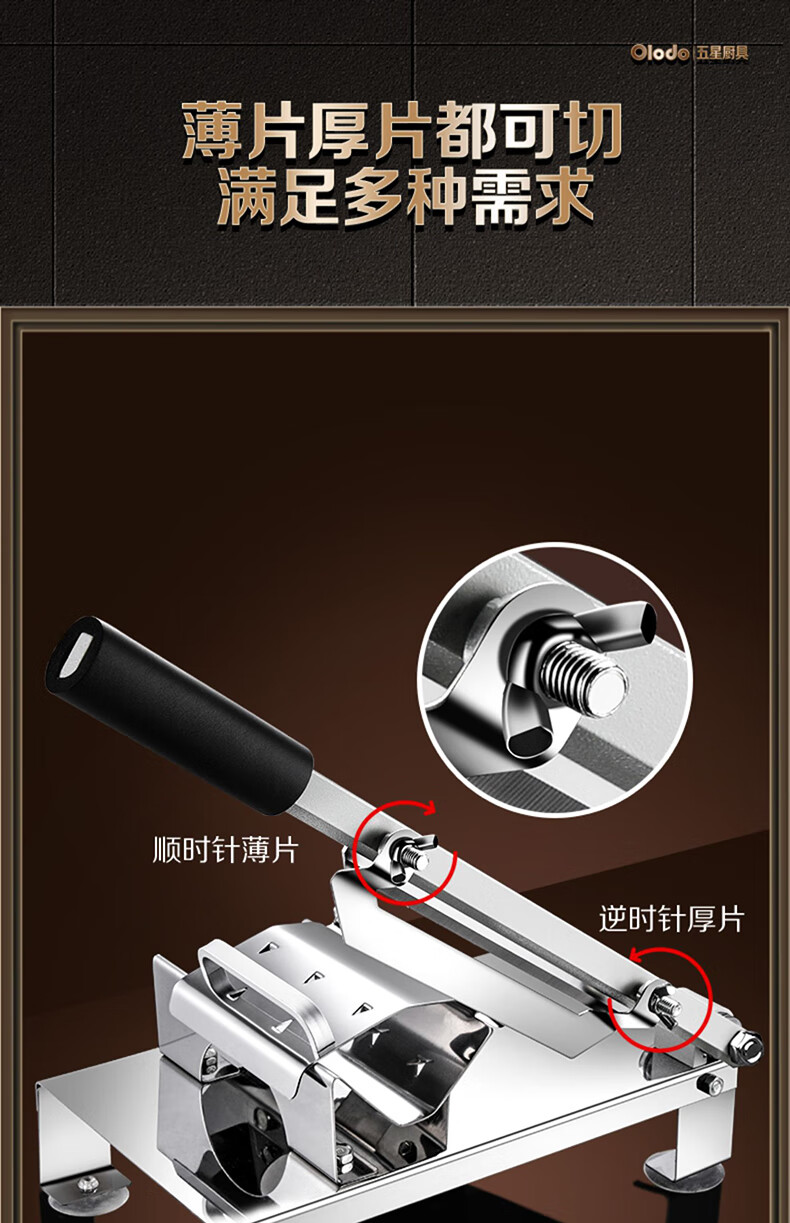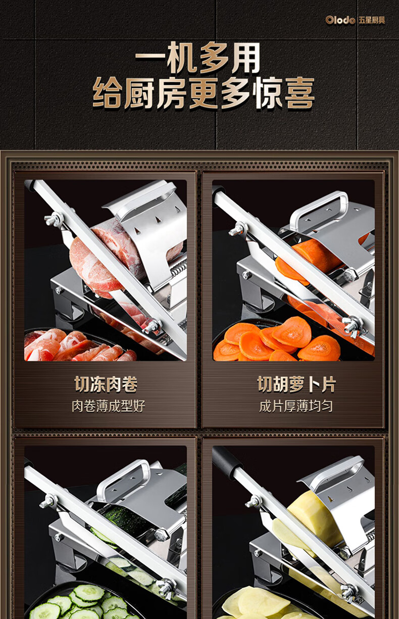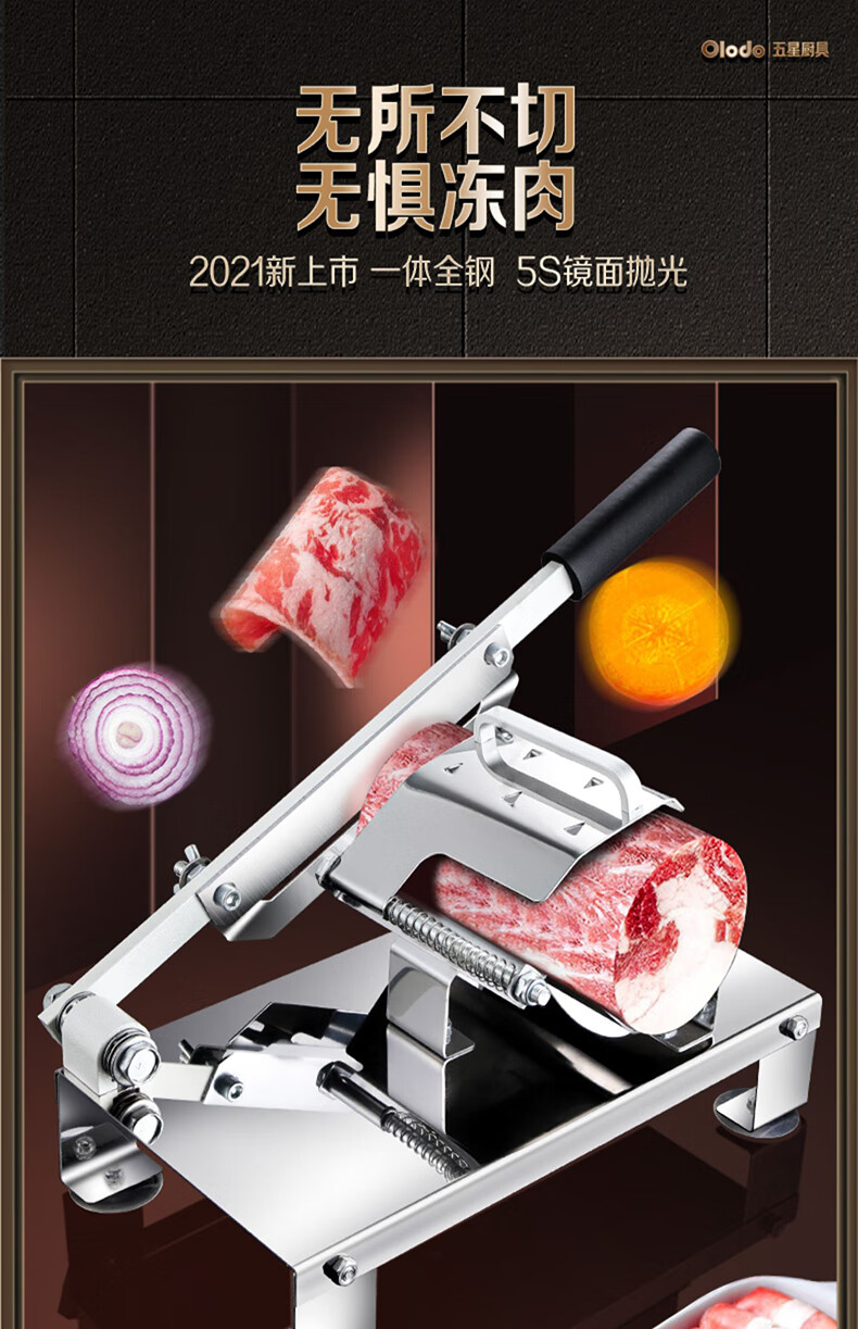 Olodo German meat slicer stainless steel household beef and mutton slicer mutton roll slicer artifact manual meat slicer meat slicer + 2 blades + 20 frozen meat bags