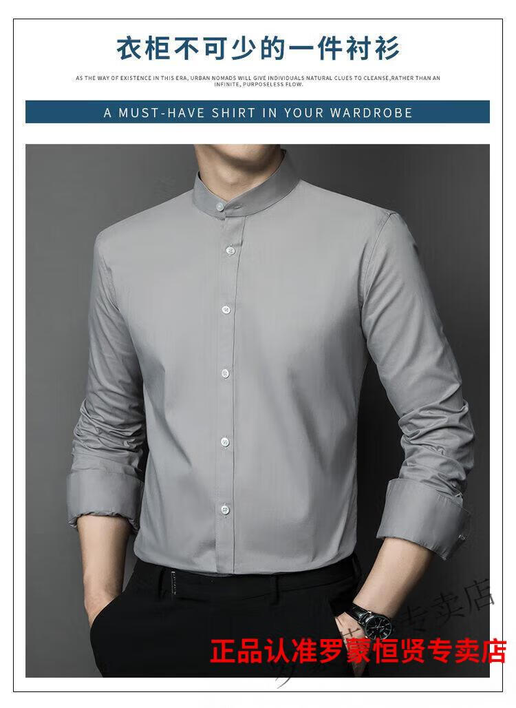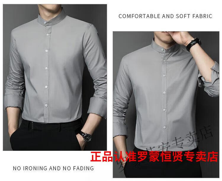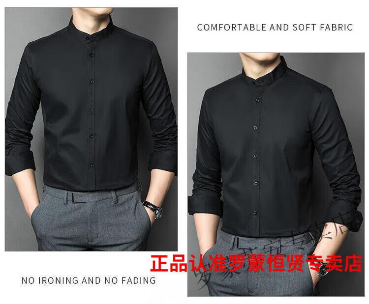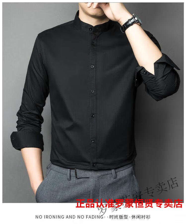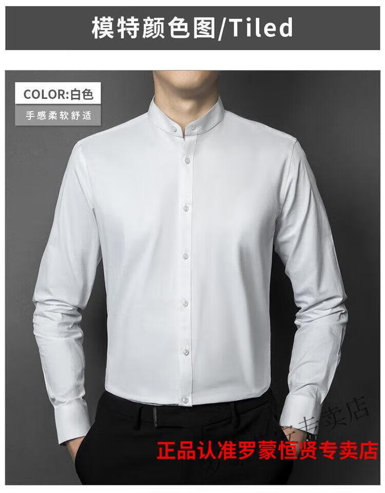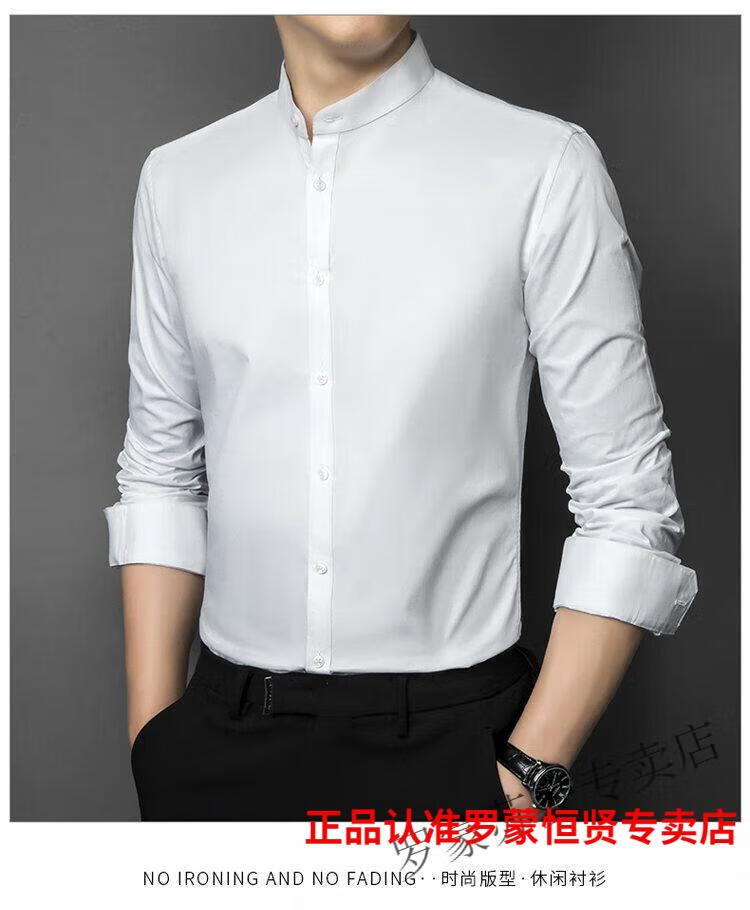 ROMON new Chinese style stand collar shirt men's long sleeve spring and autumn business casual formal wear no ironing professional white shirt tunic white 2XL reference 140-155Jin Jin equals about 0.5 kg