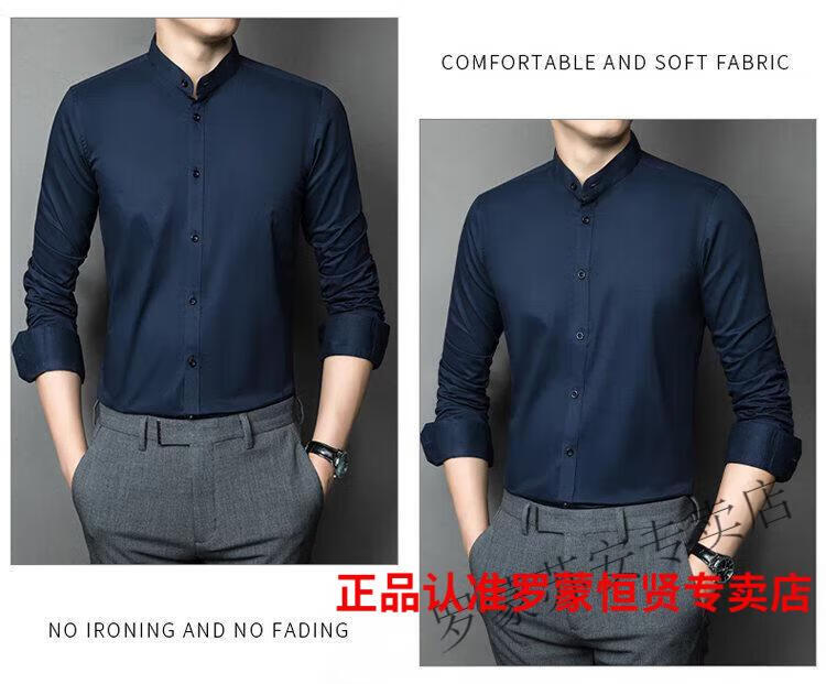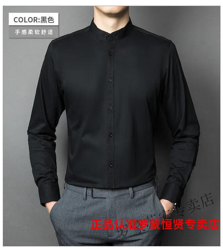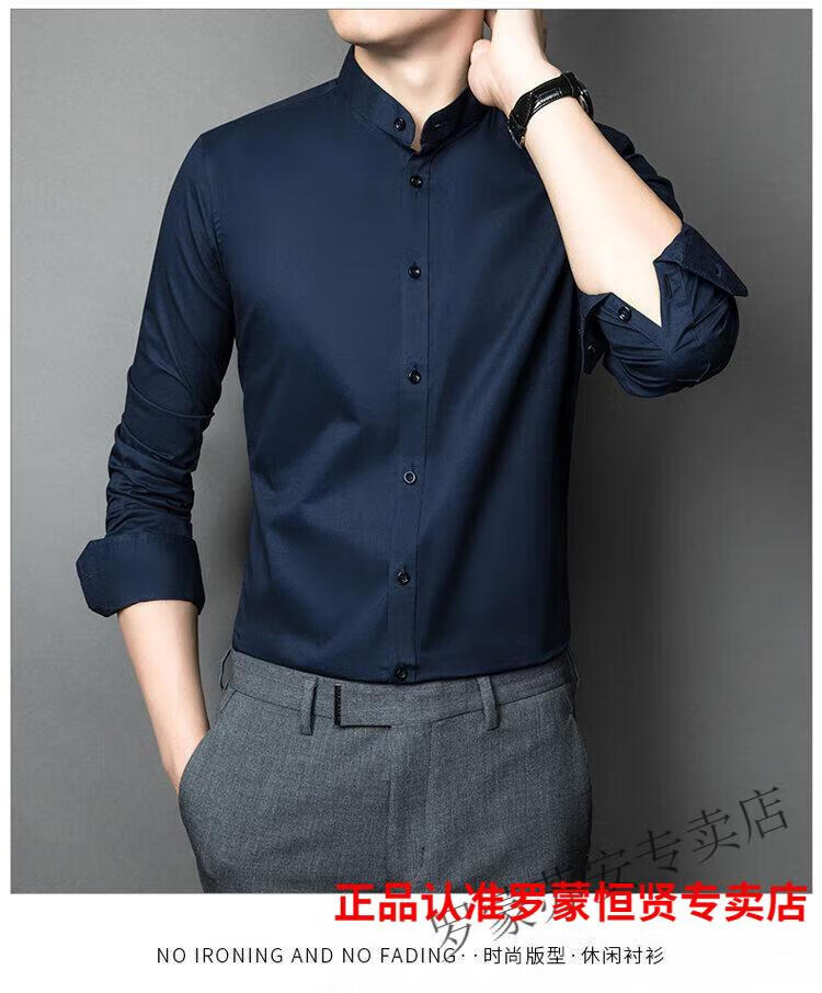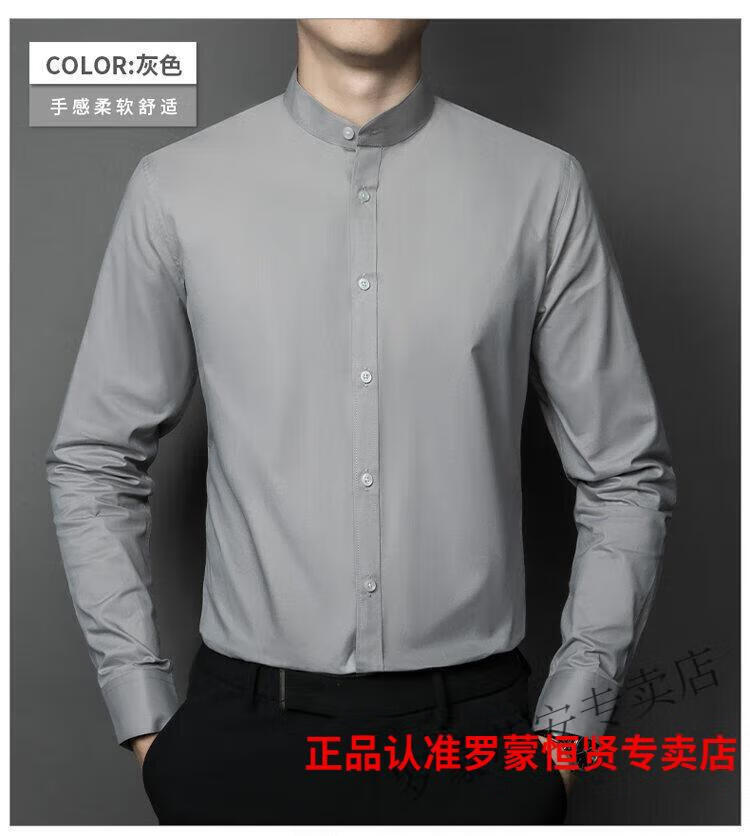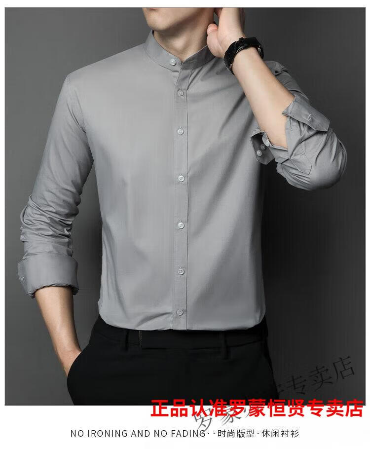 ROMON new Chinese style stand collar shirt men's long sleeve spring and autumn business casual formal wear no ironing professional white shirt tunic white 2XL reference 140-155Jin Jin equals about 0.5 kg