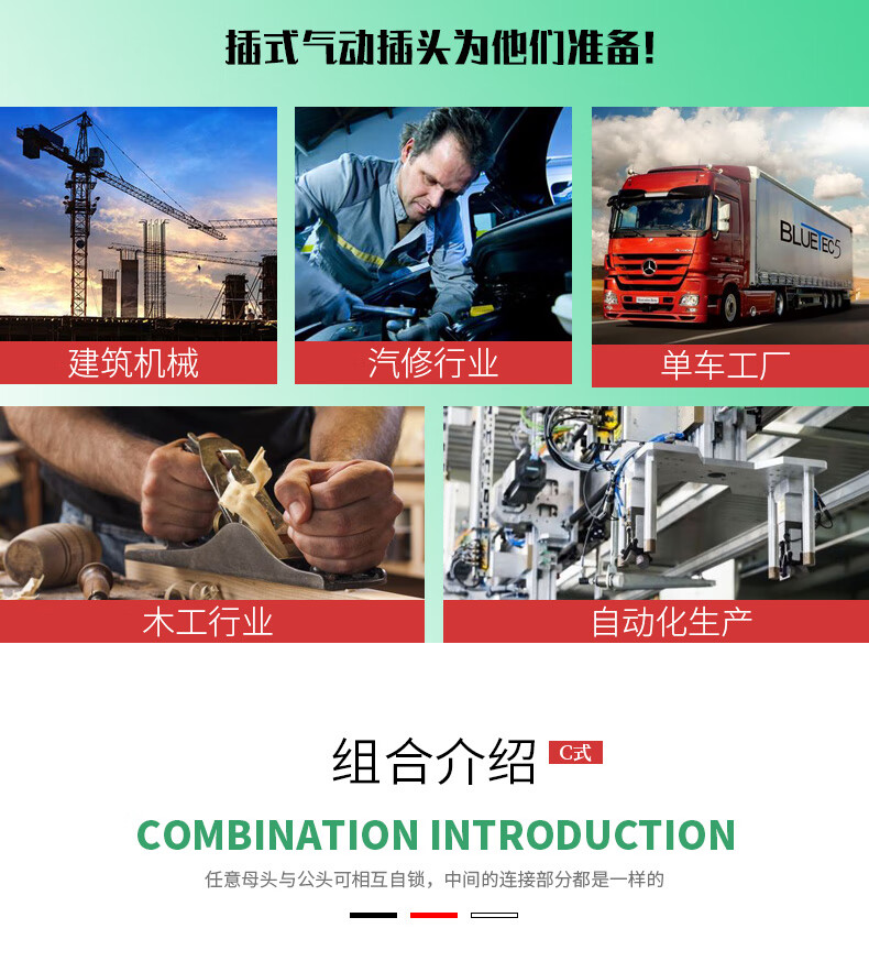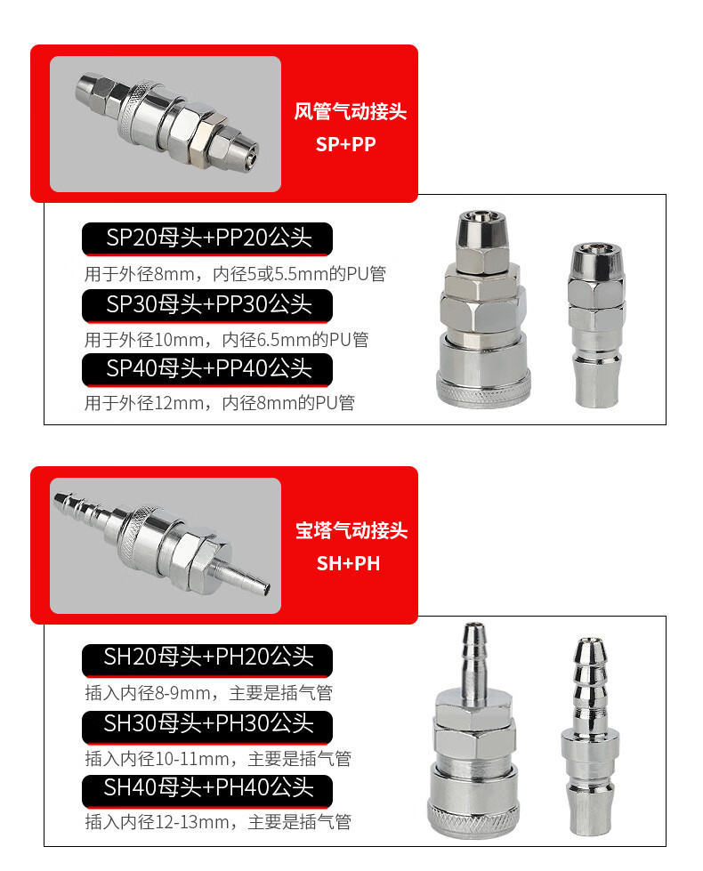 Delixi self-locking C-type male and female head 8mm trachea quick plug connector SP30 air compressor air pump accessories PP20 PP40 male head