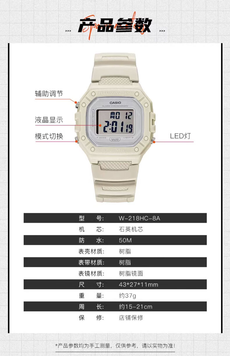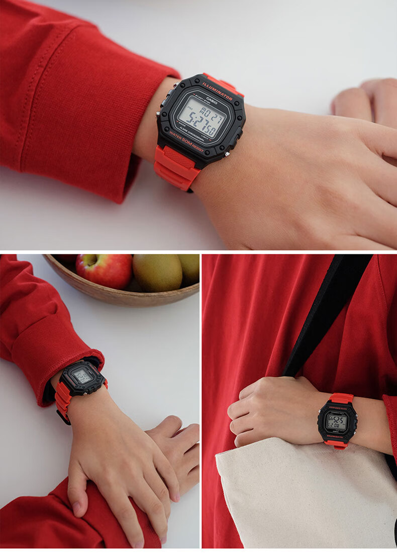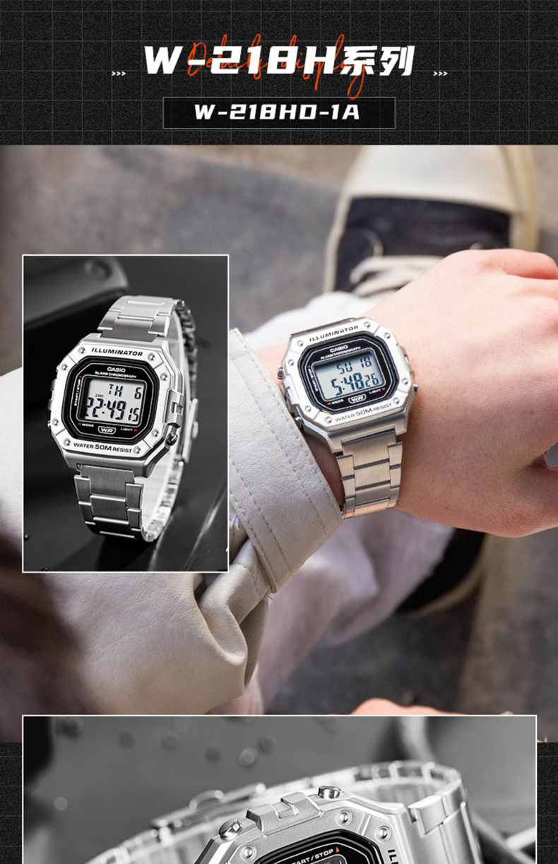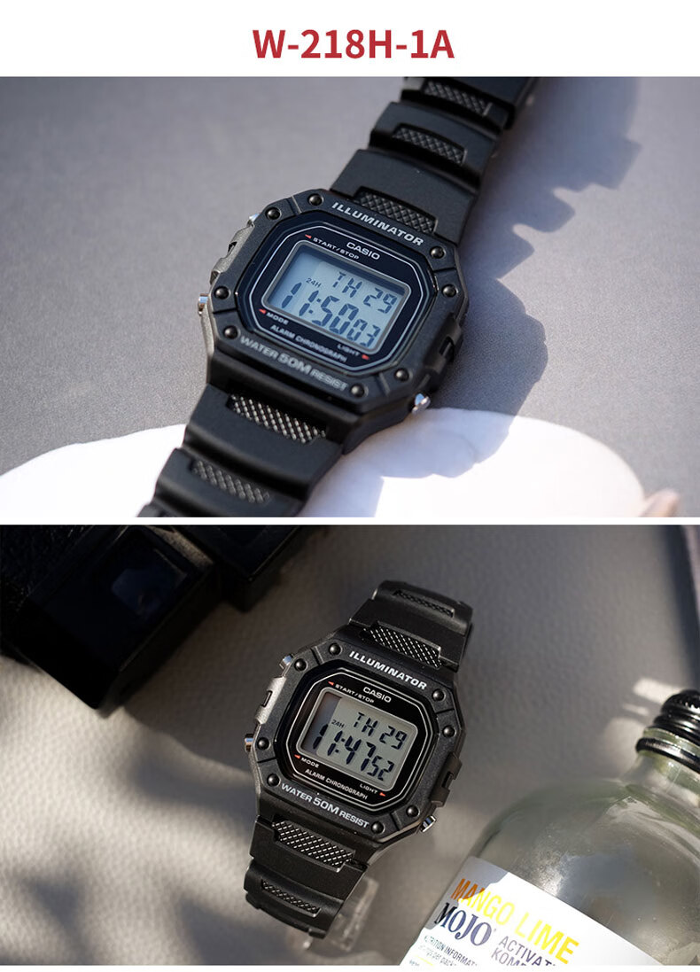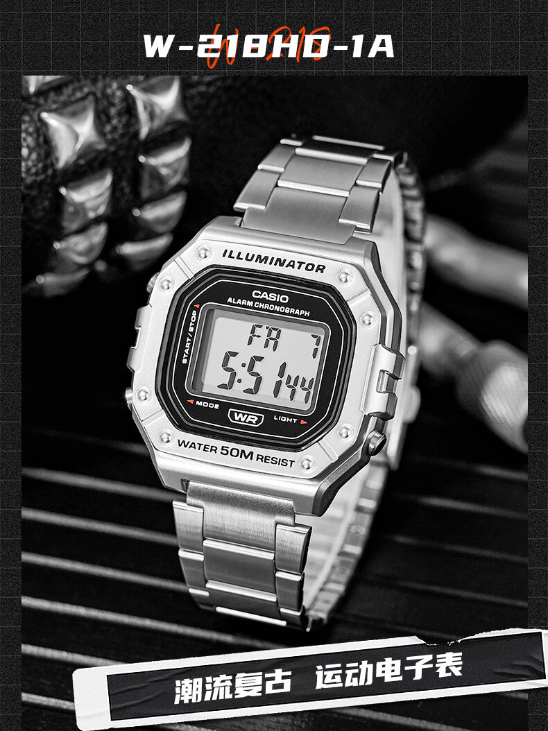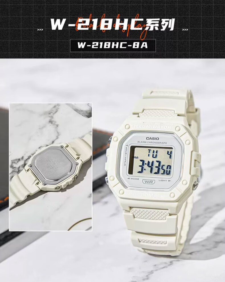 Casio (CASIO) fashionable retro small square watch LCD display waterproof sports student quartz watch for men and women W-218HC-4A2
