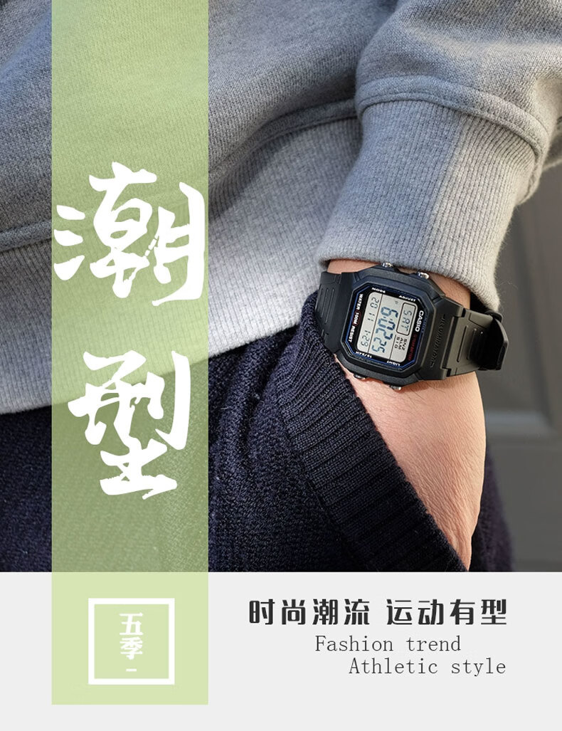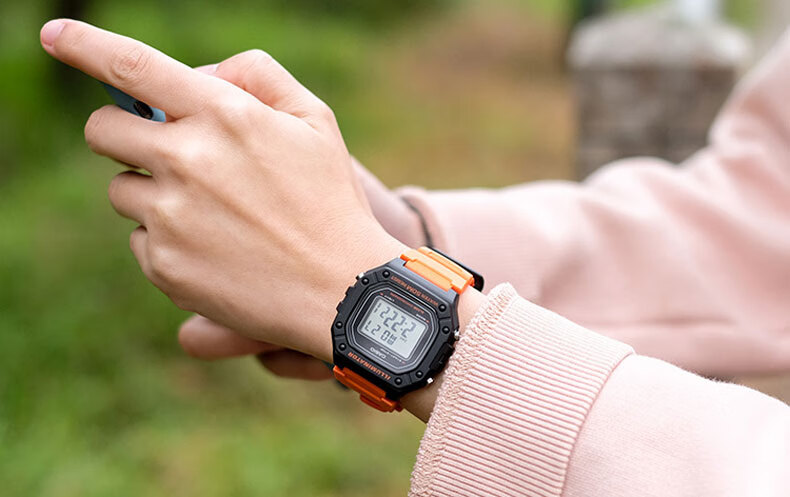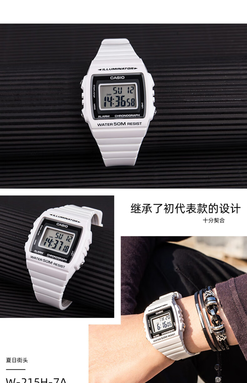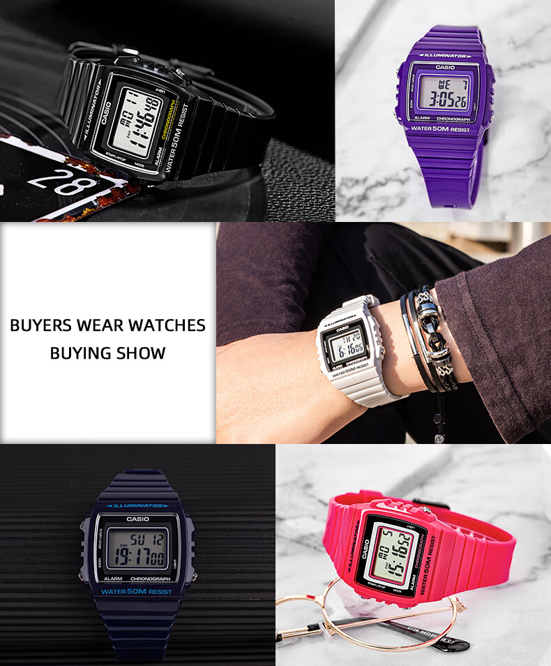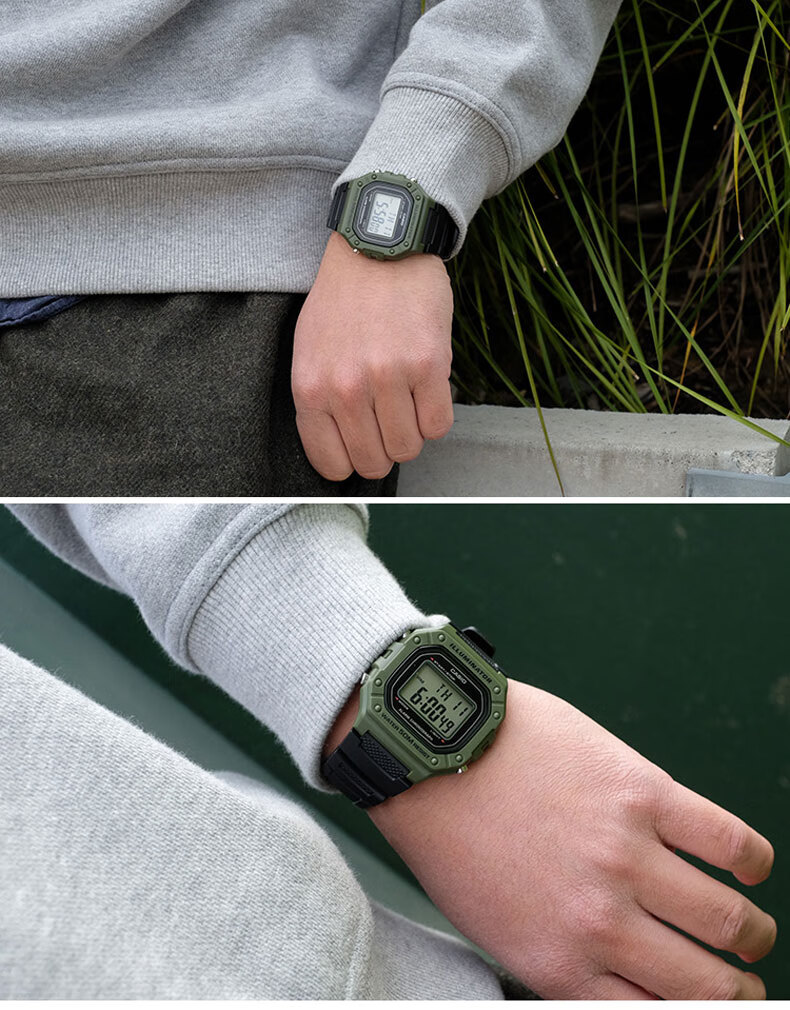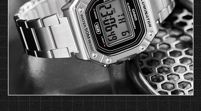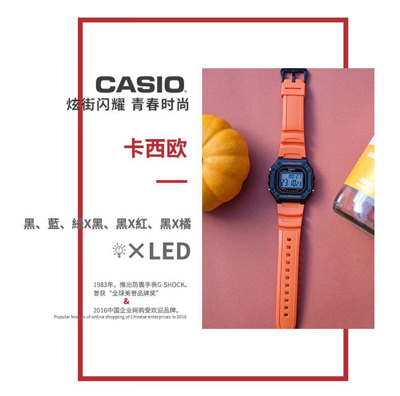 Casio (CASIO) fashionable retro small square watch LCD display waterproof sports student quartz watch for men and women W-218HC-4A2