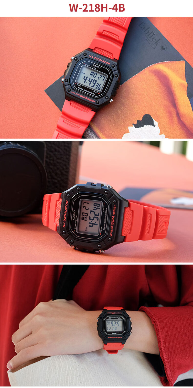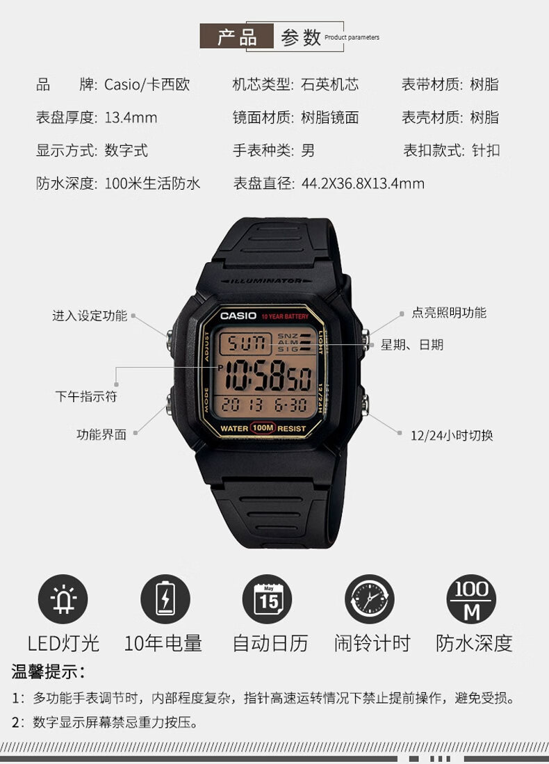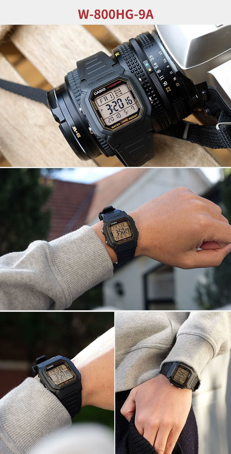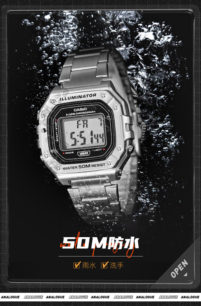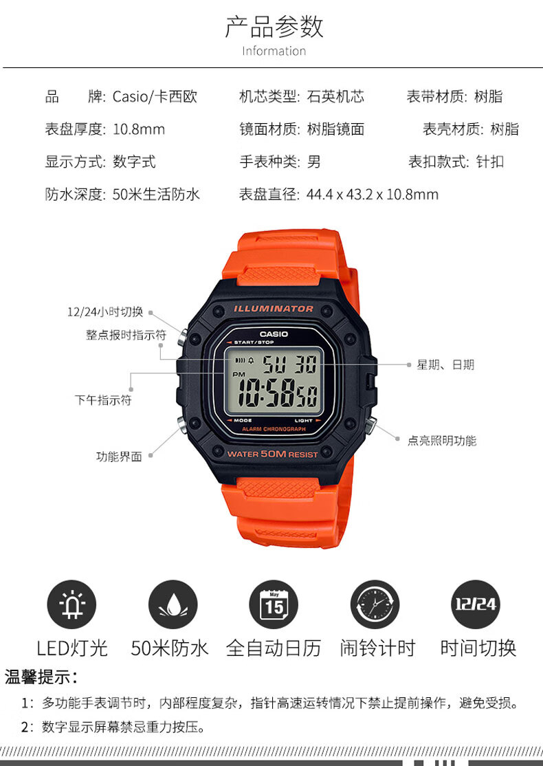 Casio (CASIO) fashionable retro small square watch LCD display waterproof sports student quartz watch for men and women W-218HC-4A2