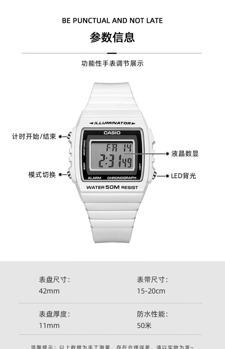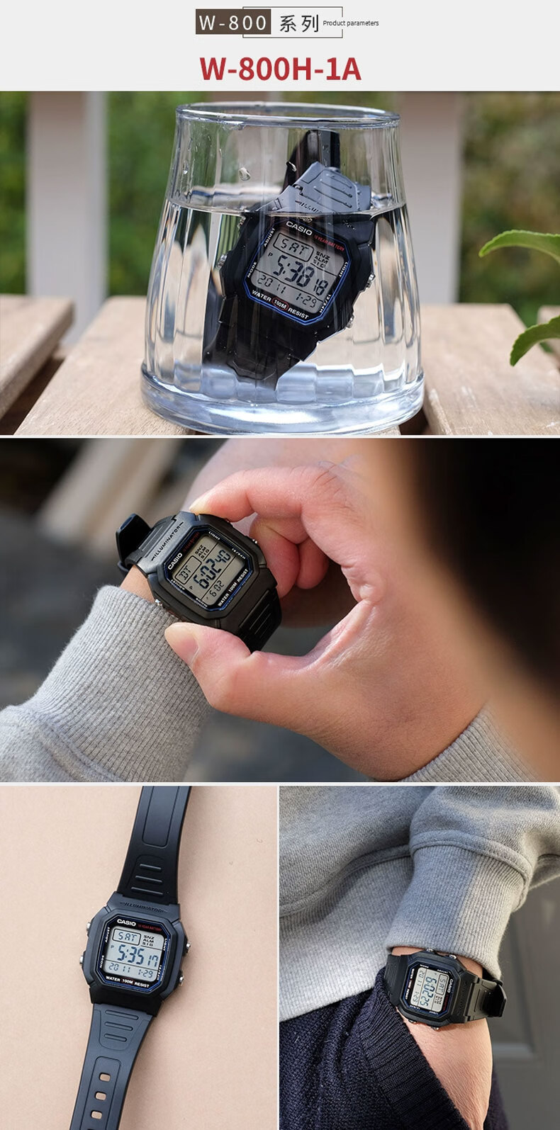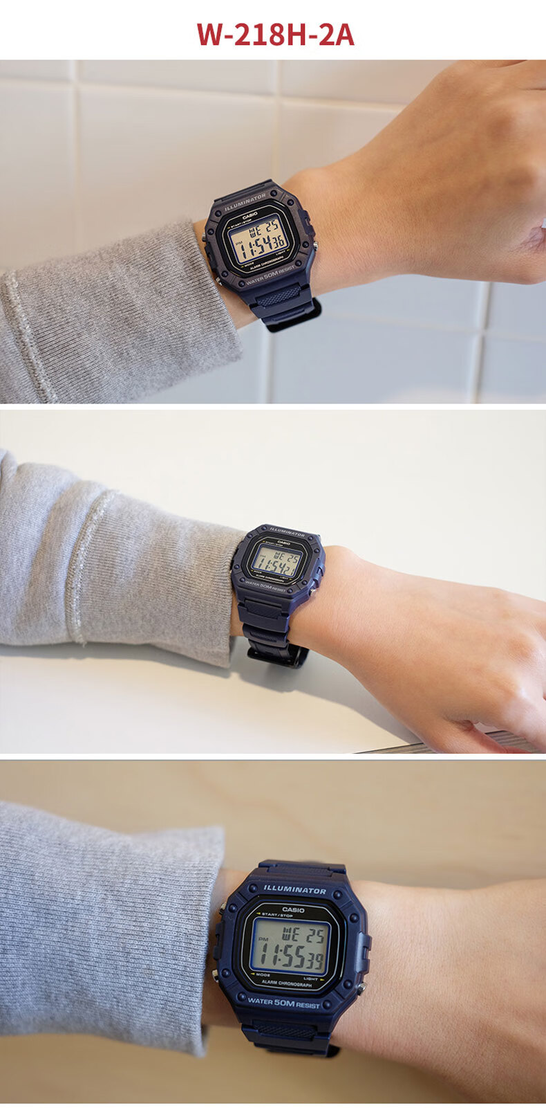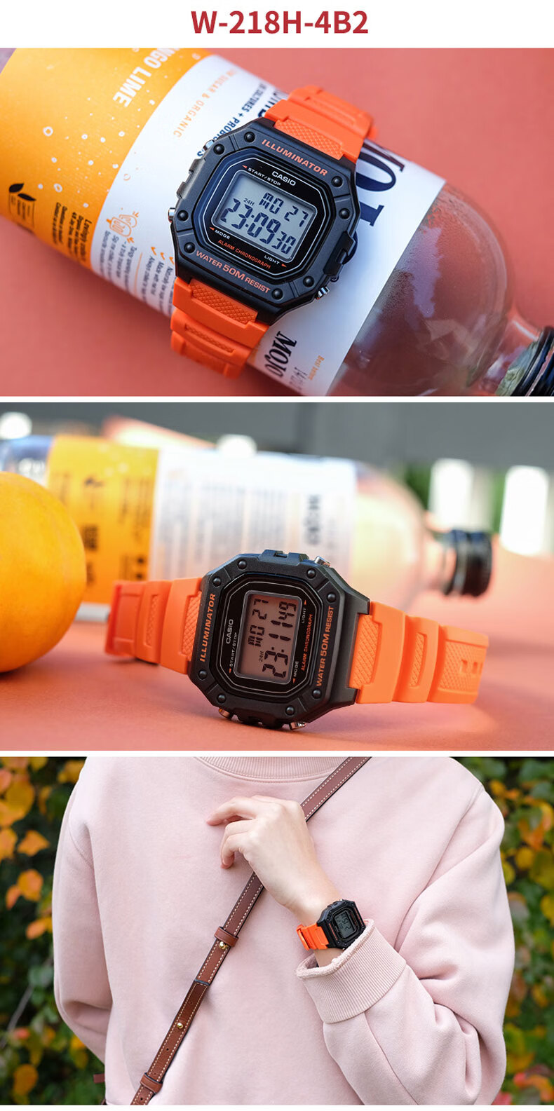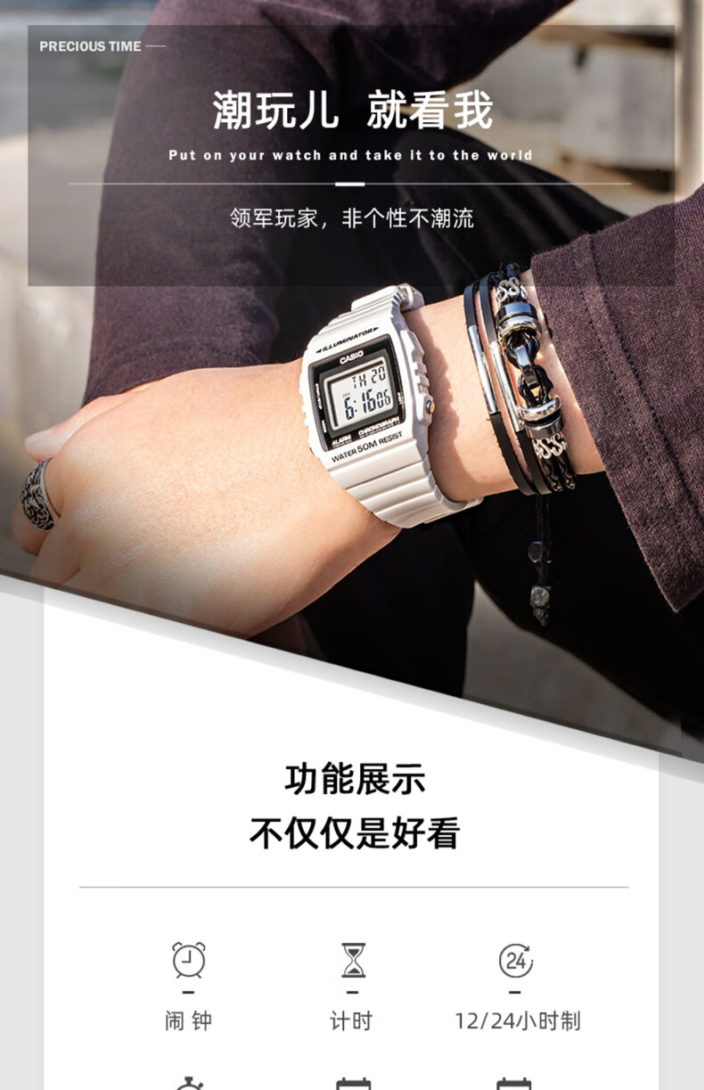 Casio (CASIO) fashionable retro small square watch LCD display waterproof sports student quartz watch for men and women W-218HC-4A2