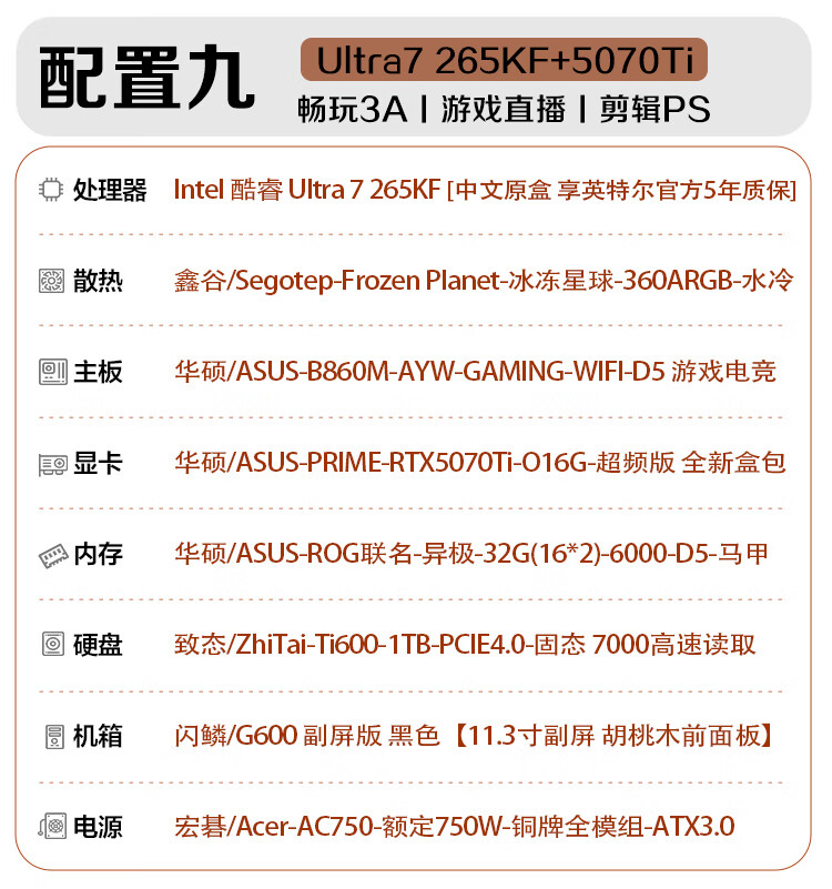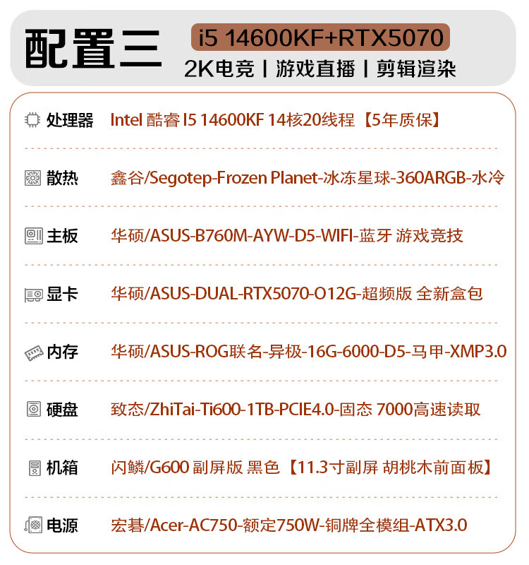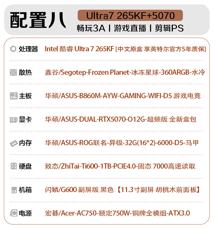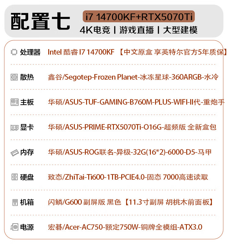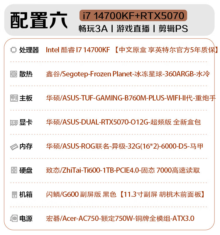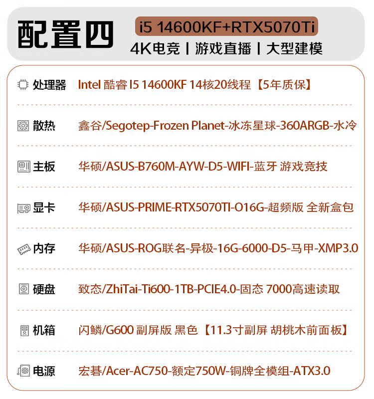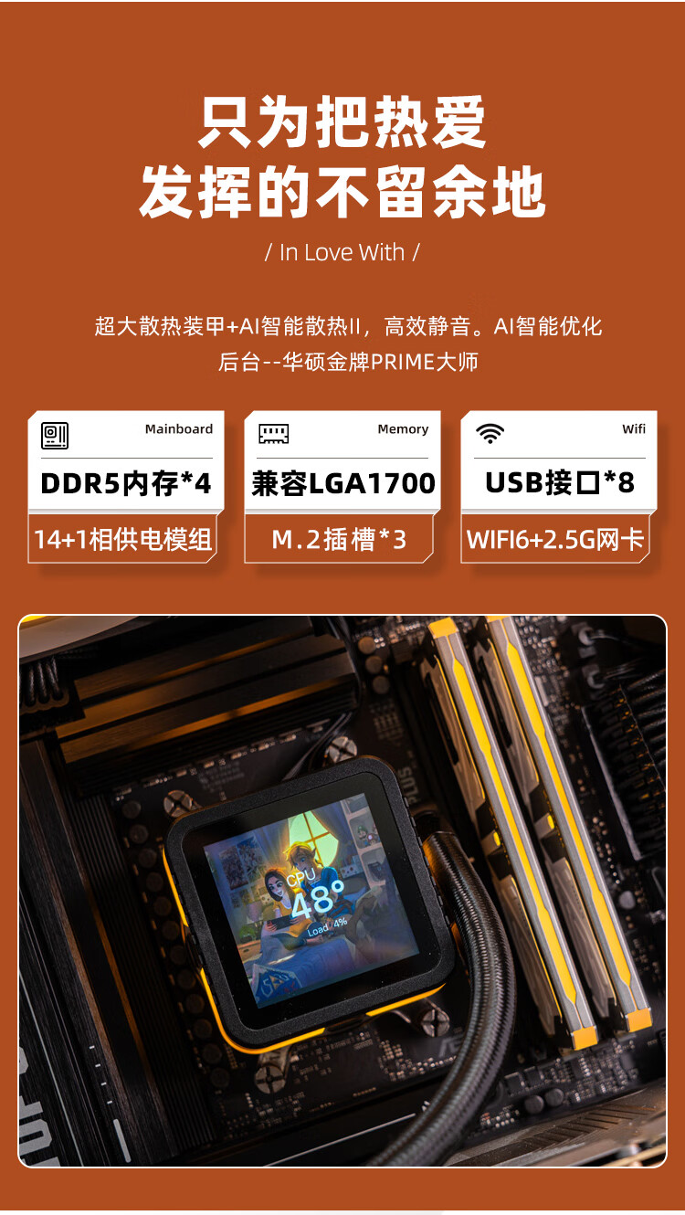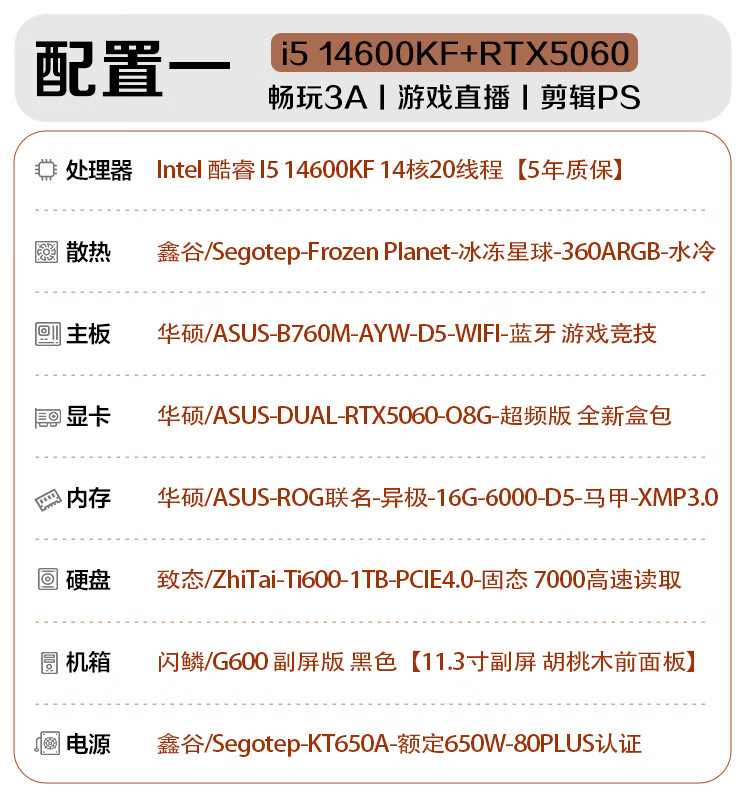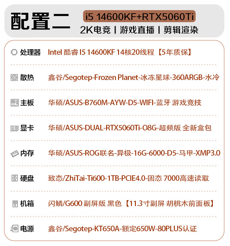 ASUS Family Bucket 14600KF complete machine RTX5060Ti host secondary screen ITX small host assembly computer host ROG Family Bucket complete machine DIY assembly machine i5 14600KF+RTX5060Ti丨With two