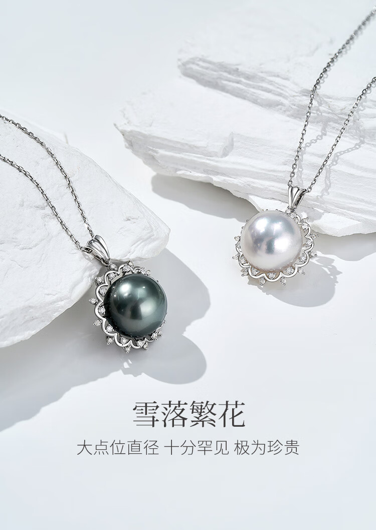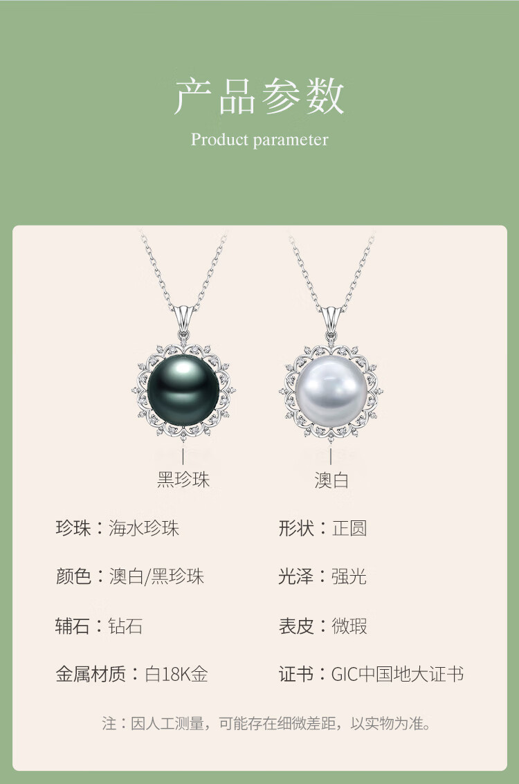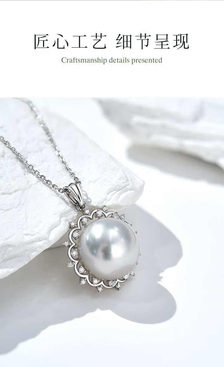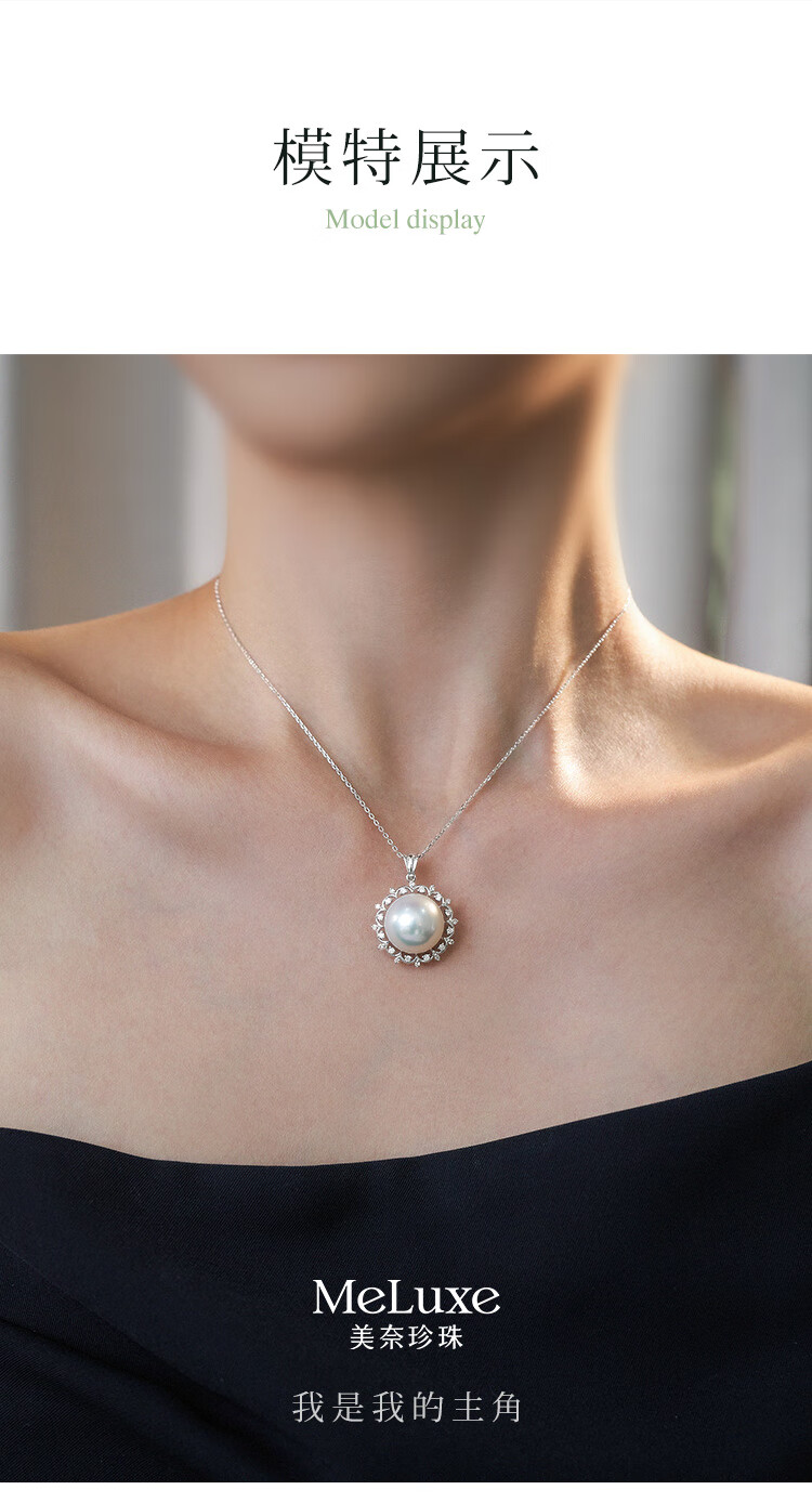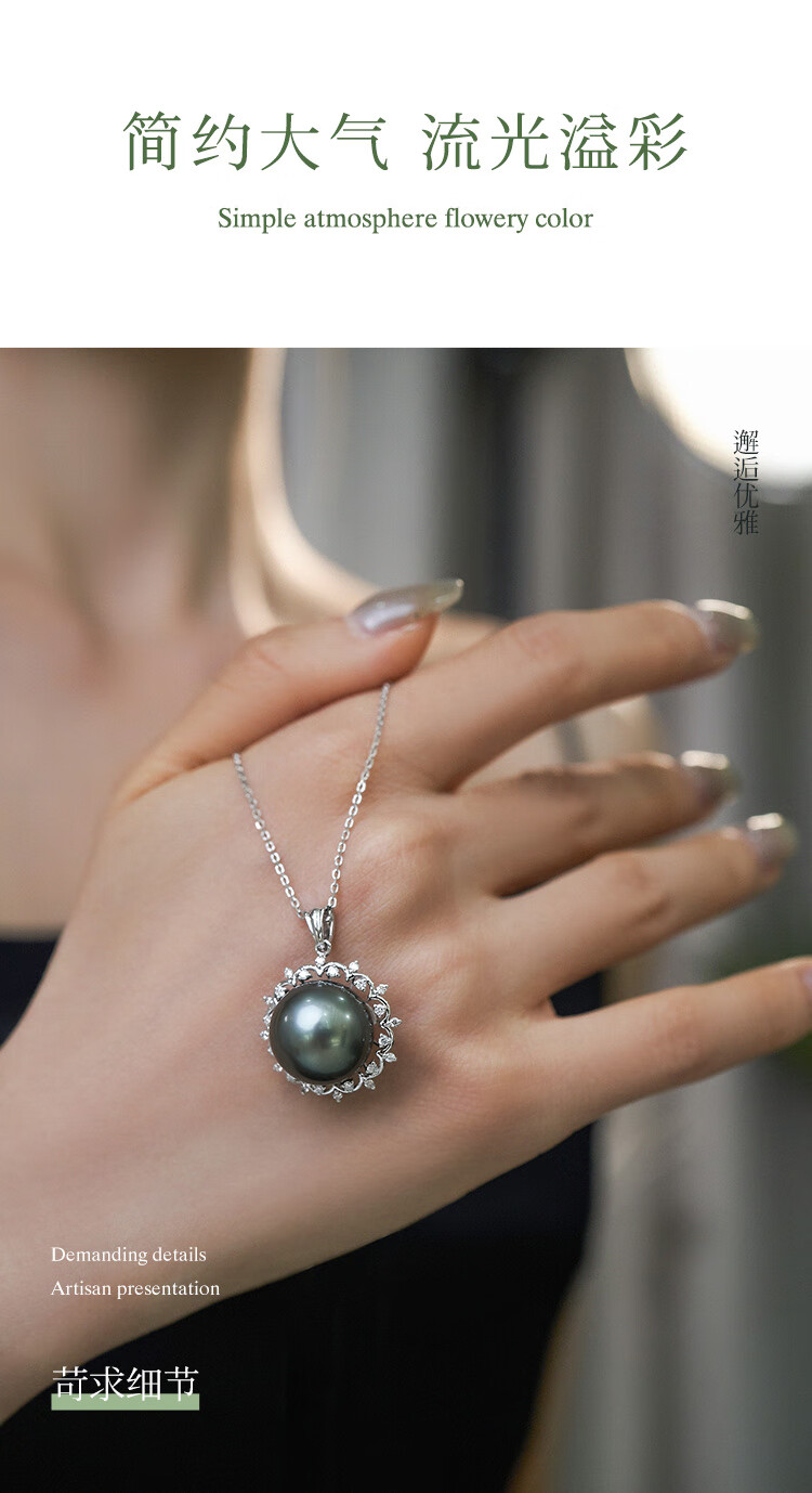 Meluxe 18K gold seawater pearl pendant Tahitian black pearl pendant bustling series birthday gift for wife malachite green 14-14.5mm + diamond 0.26ct