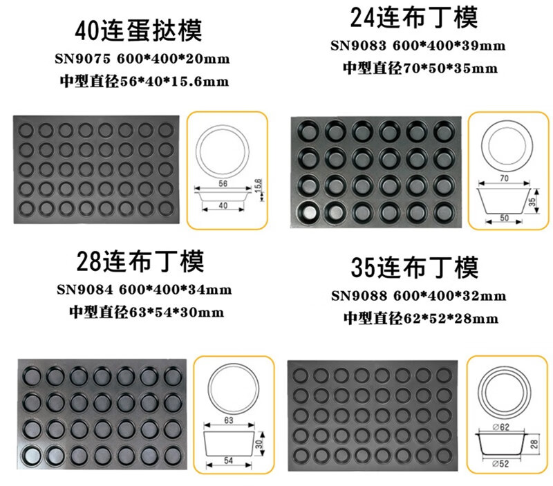 Three-function three-function commercial multi-connected non-stick baking pan SN9083 9084 9088 large round egg tart pudding chicken cake mold SN9083 24-connected pudding mold (800 non-stick)