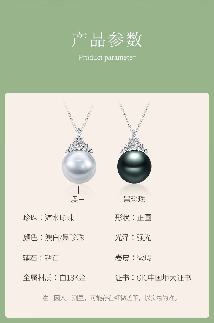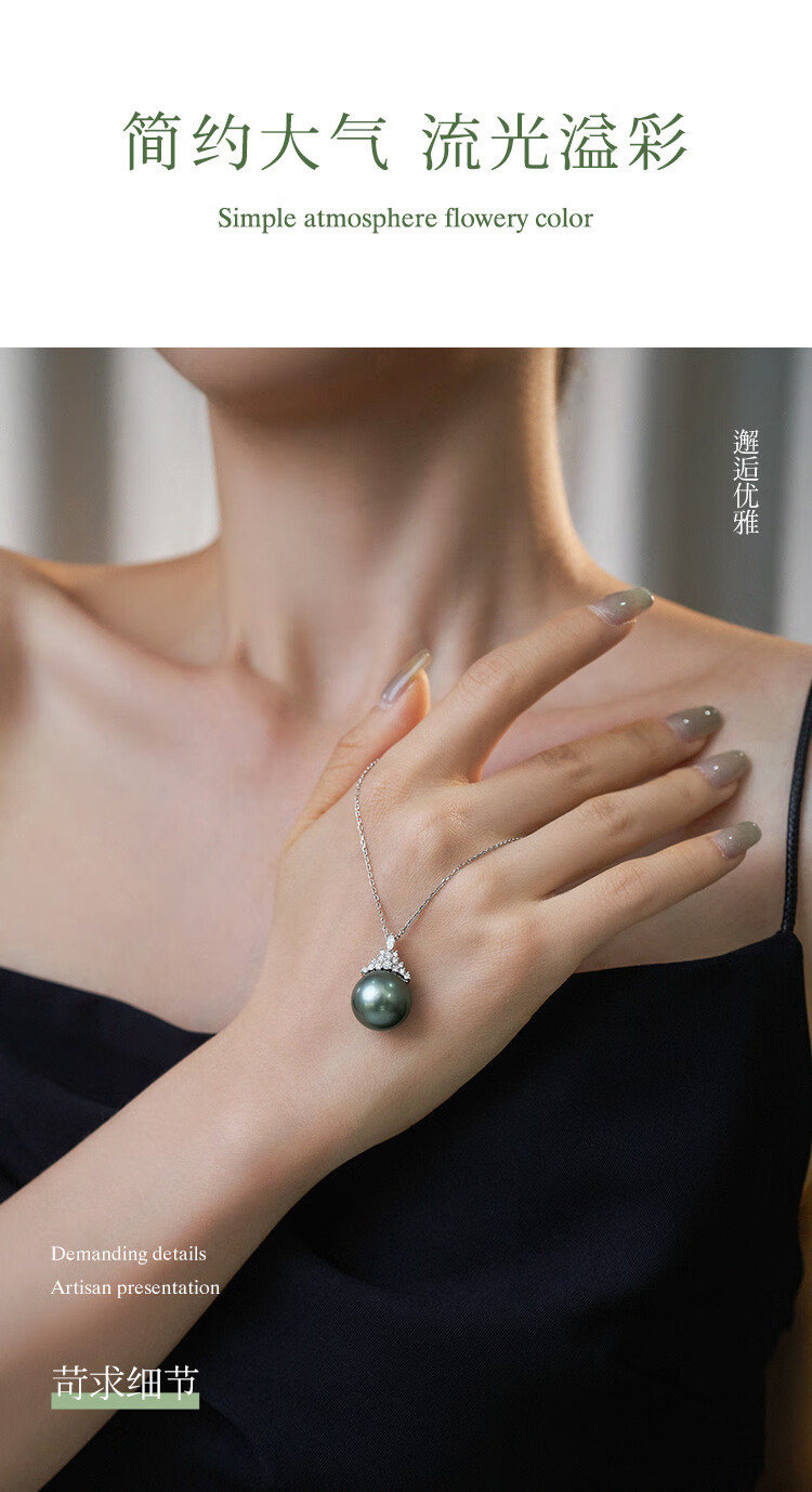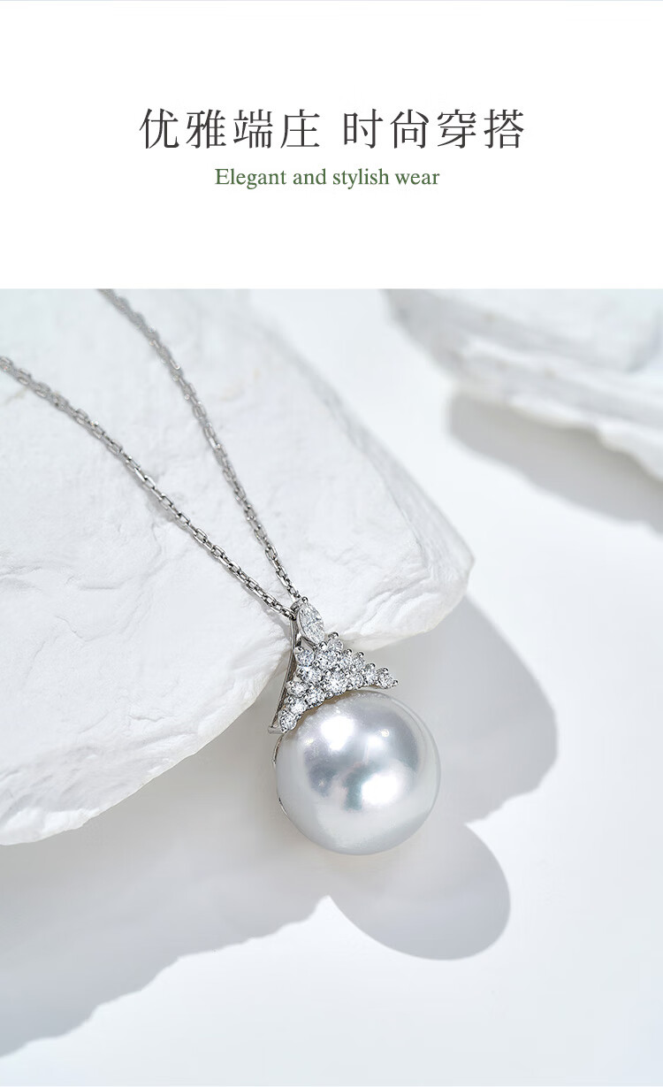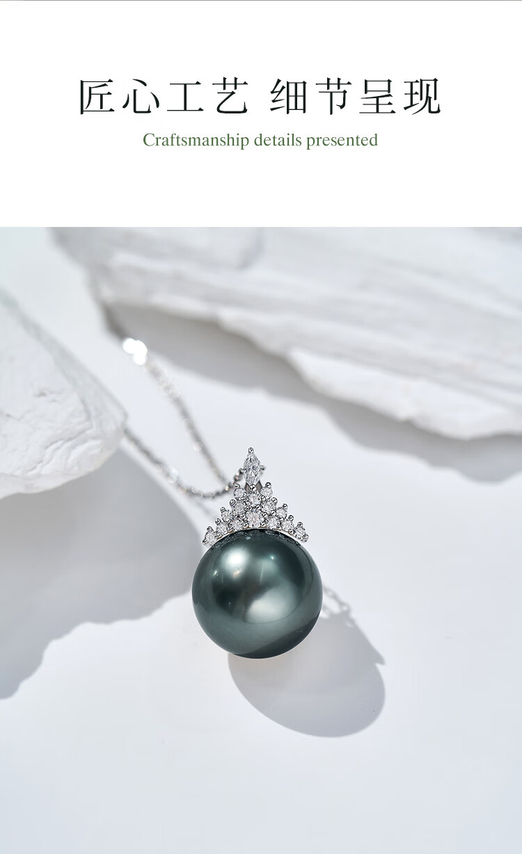Meluxe Mui Ne 18K gold seawater pearl Tahitian black pearl pendant Ice Queen series birthday gift for wife platinum gray 14-14.5mm + diamond 0.29ct
