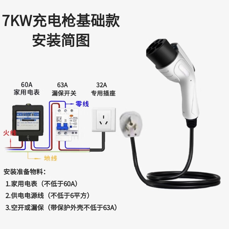 ROMADA car charging gun charging pile household 7kw fast charging portable new energy electric vehicle charger universal 5 meters 32A 7KW basic model (with temperature control)