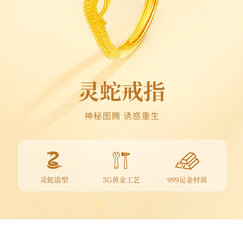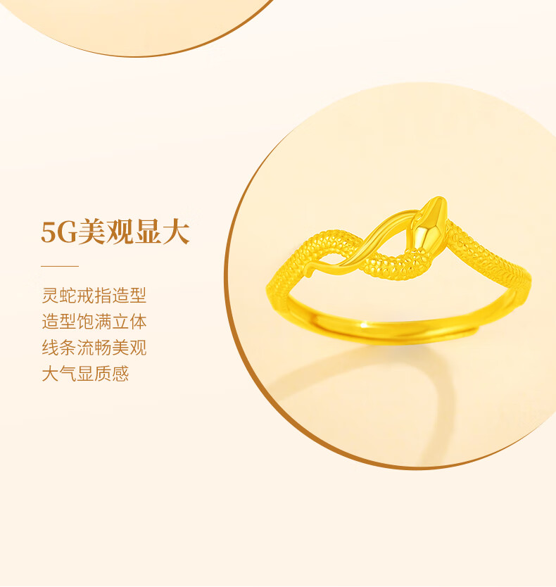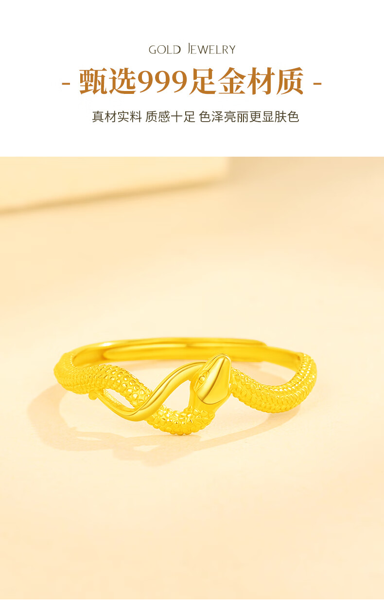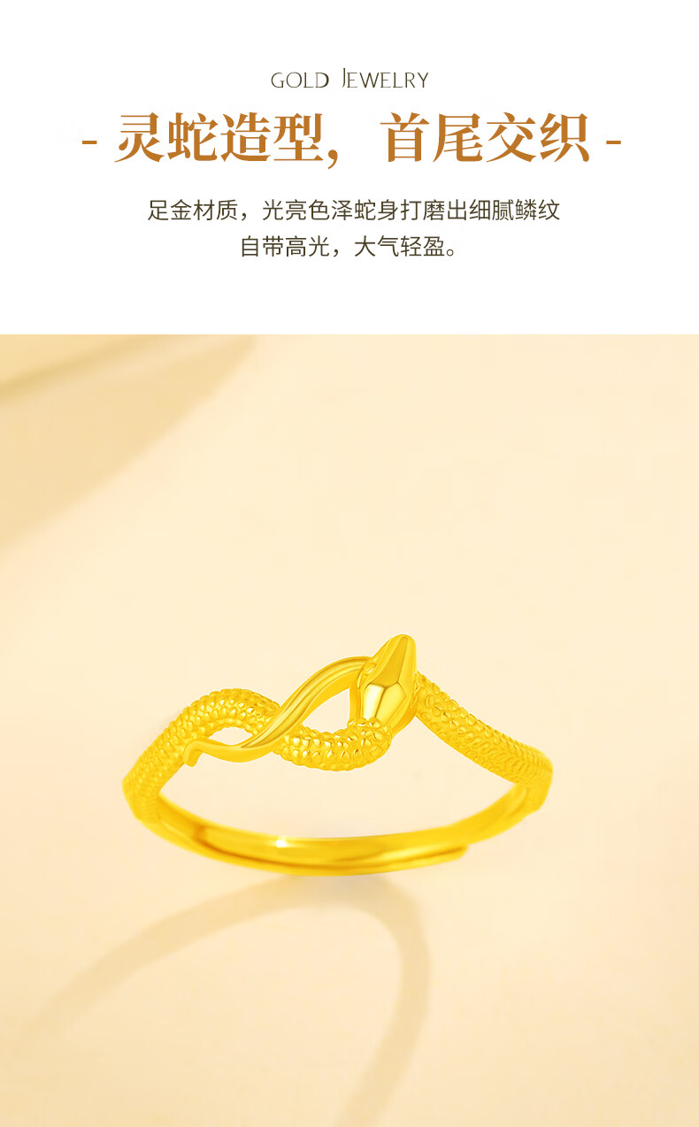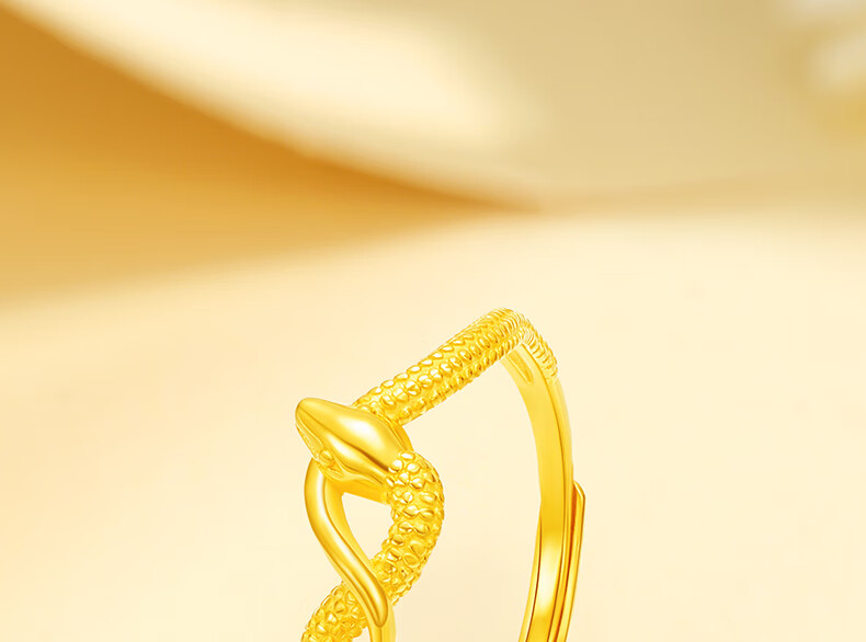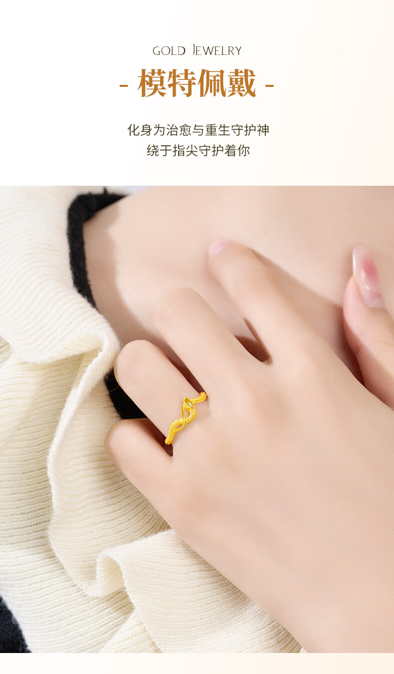 Chinese Gold (CHINA GOLD) Year of the Snake Zodiac Year Gold Ring Women's Pure Gold Spirit Snake Ring Birthday Gift for Girlfriend and Wife for Marriage Jingsuda-Pure Gold Transfer Little Spirit Snake Ring Gold Weight Approximately 2.1-2.2g