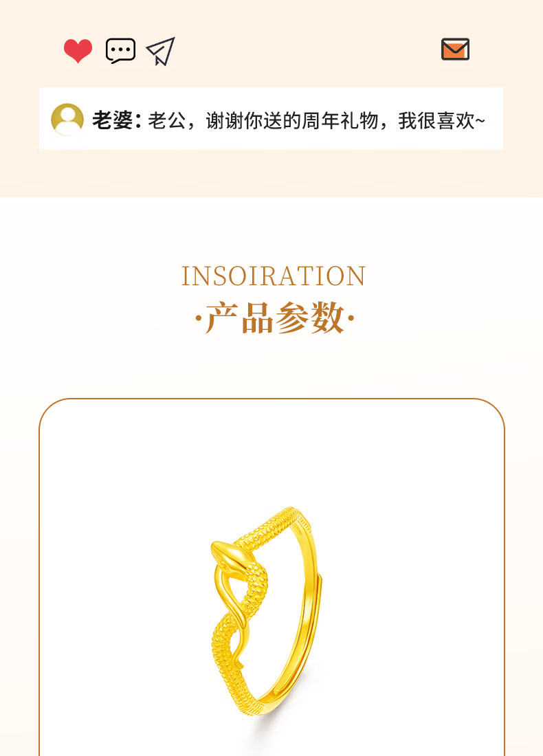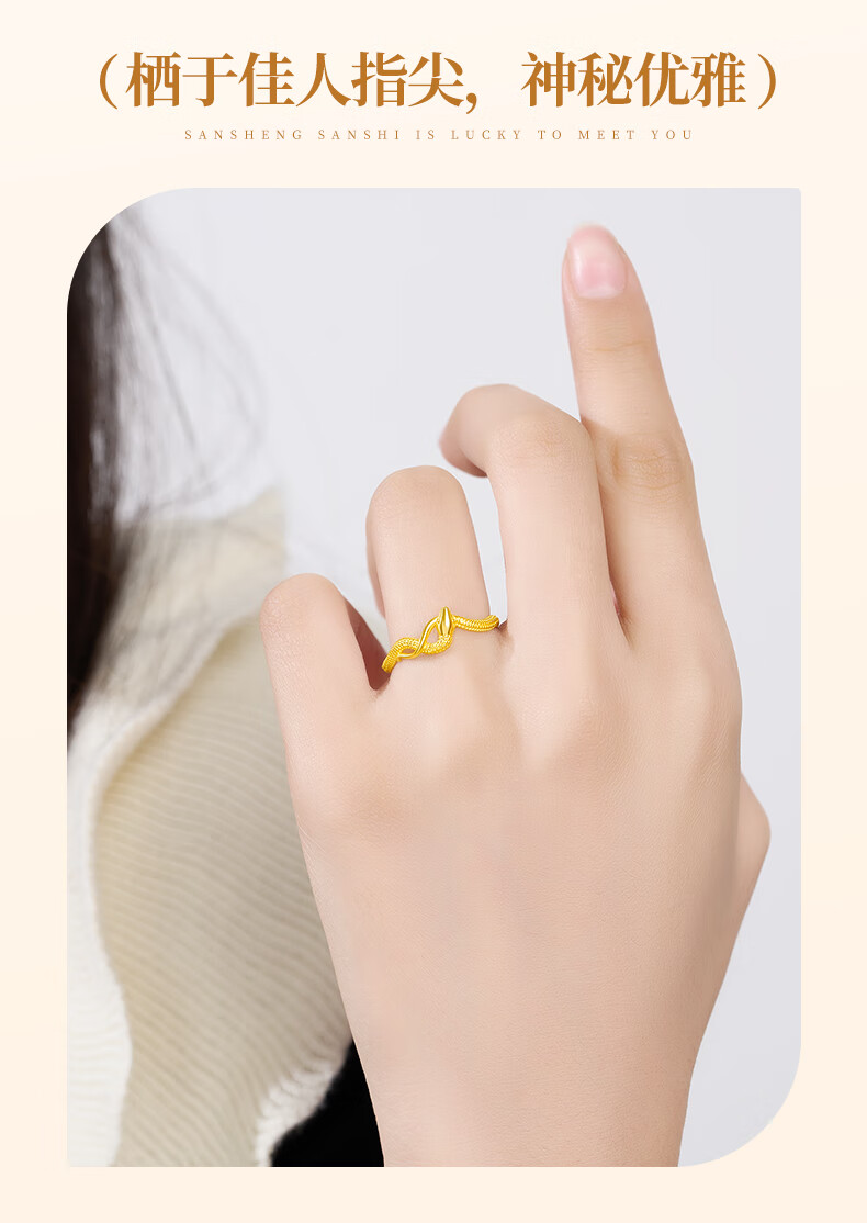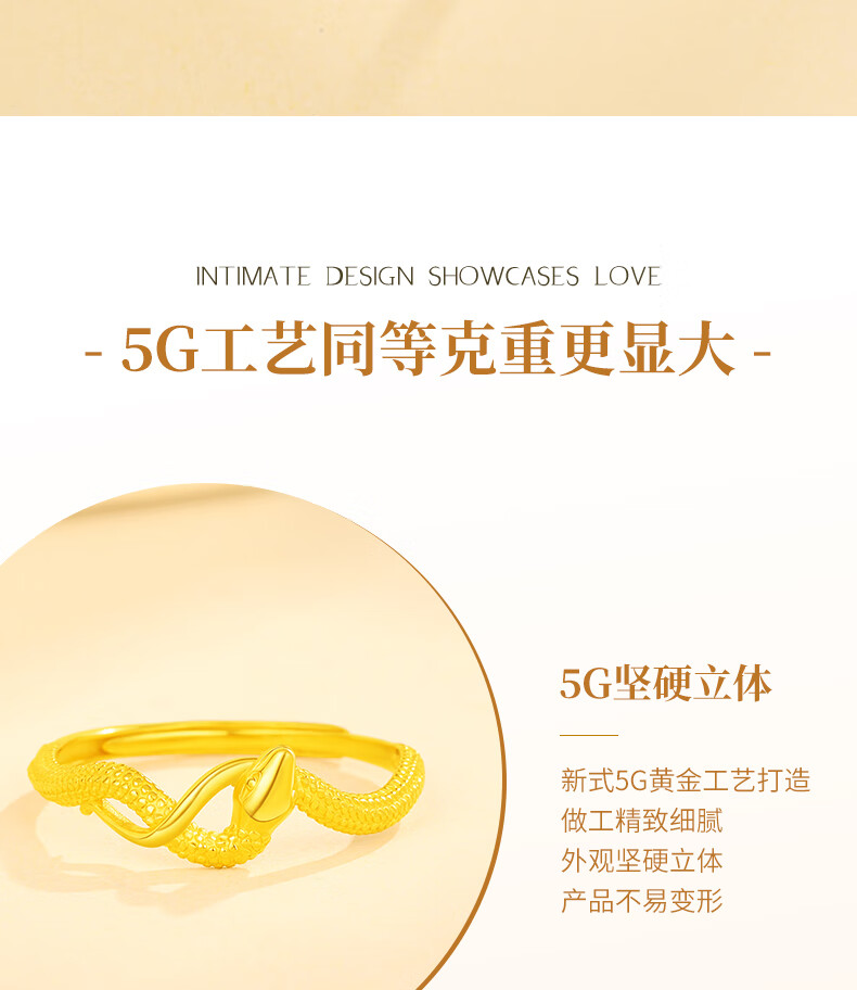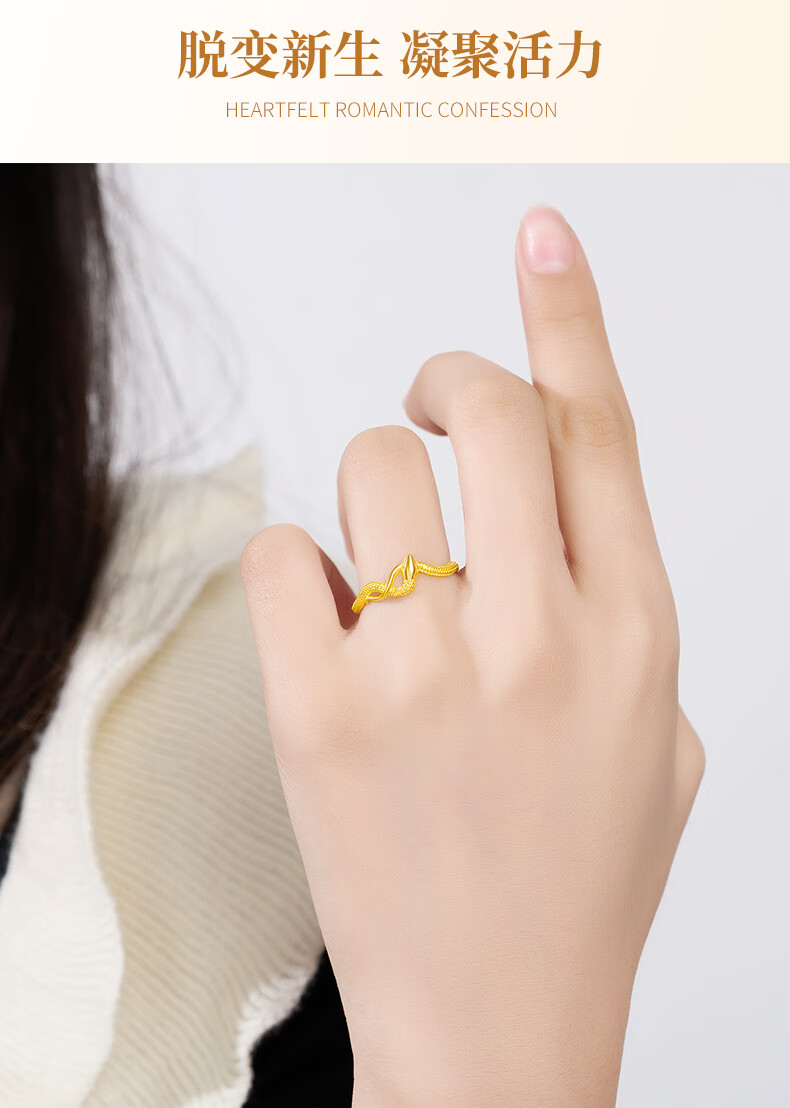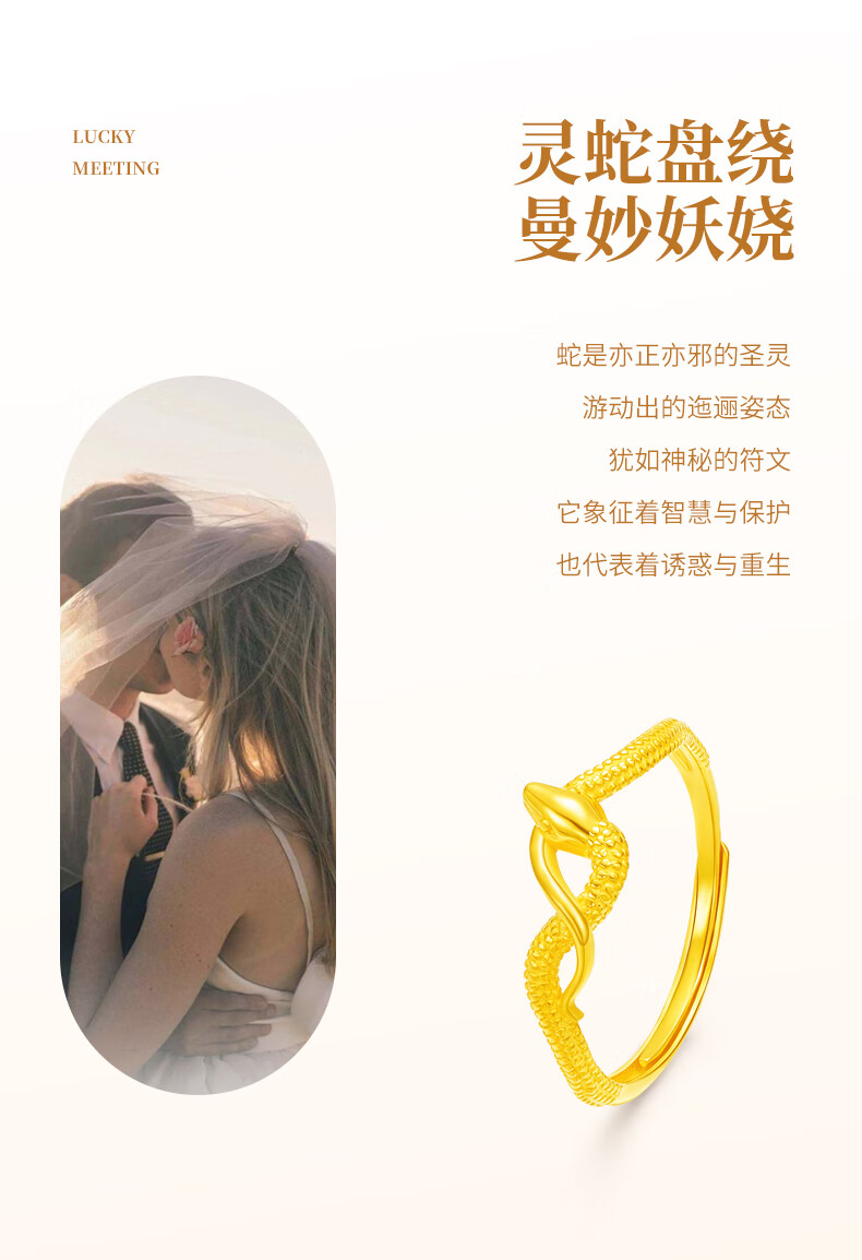 Chinese Gold (CHINA GOLD) Year of the Snake Zodiac Year Gold Ring Women's Pure Gold Spirit Snake Ring Birthday Gift for Girlfriend and Wife for Marriage Jingsuda-Pure Gold Transfer Little Spirit Snake Ring Gold Weight Approximately 2.1-2.2g