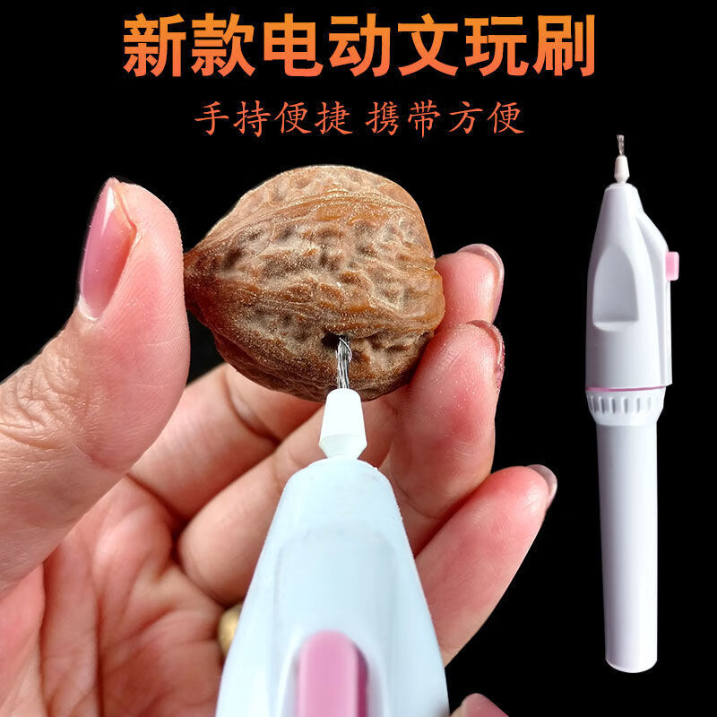 Qiao Xinyu's hand-held Wenwan walnut electric brush for cleaning and priming, wire brush head Rudraksha sewing machine, 5 steel wires + 5 small gap steel wires + pen + battery, free 10,000-hair toothbrush wavy type