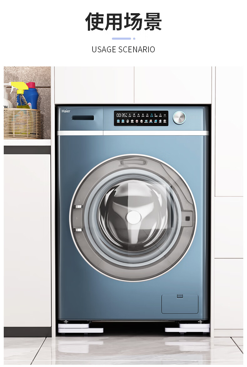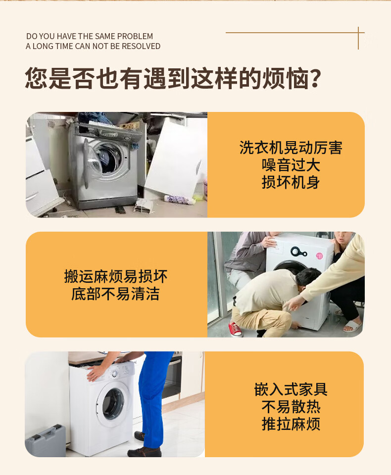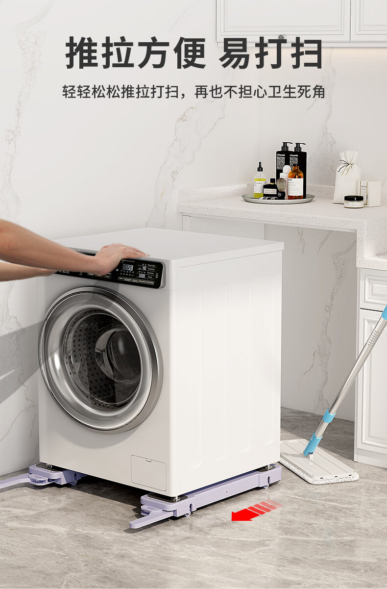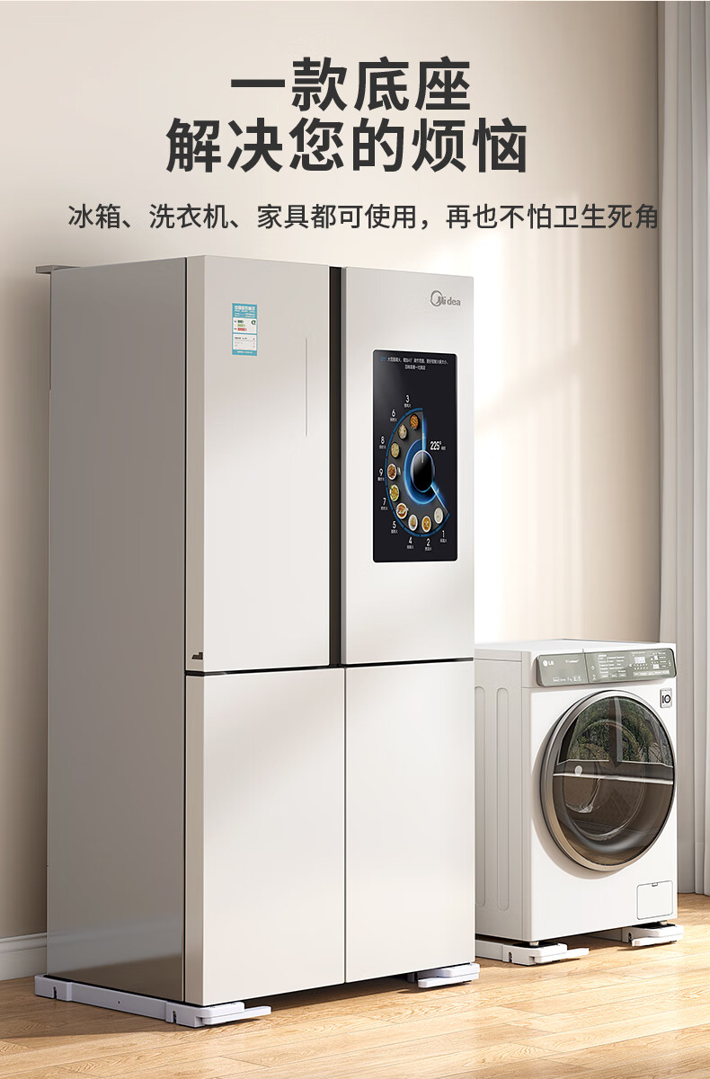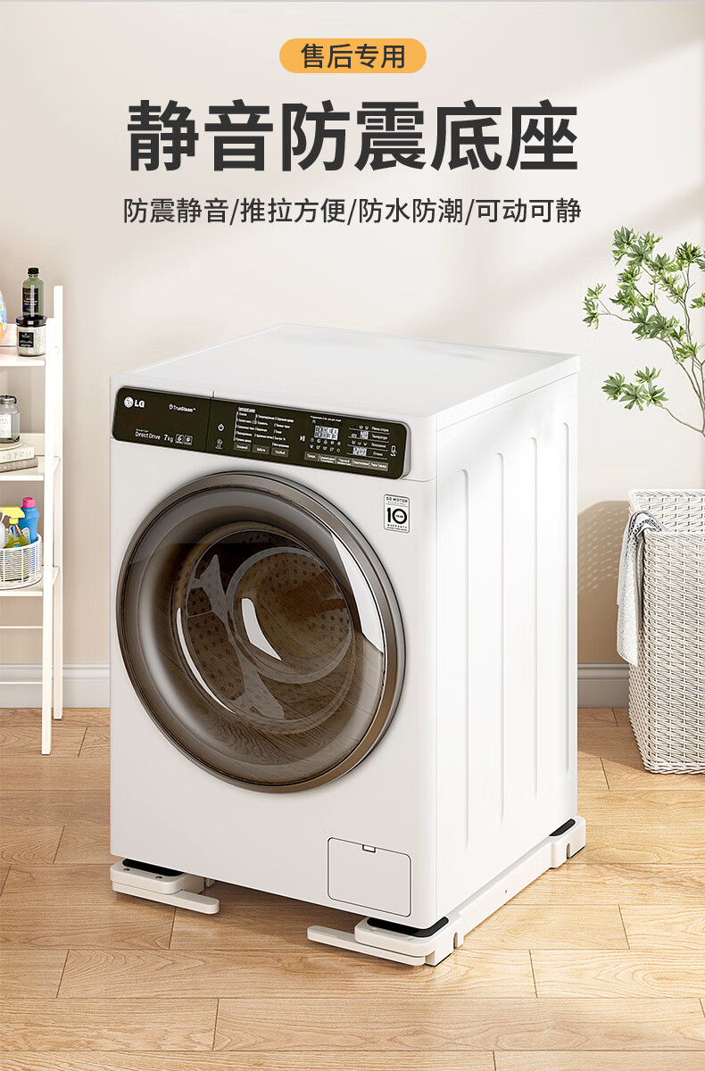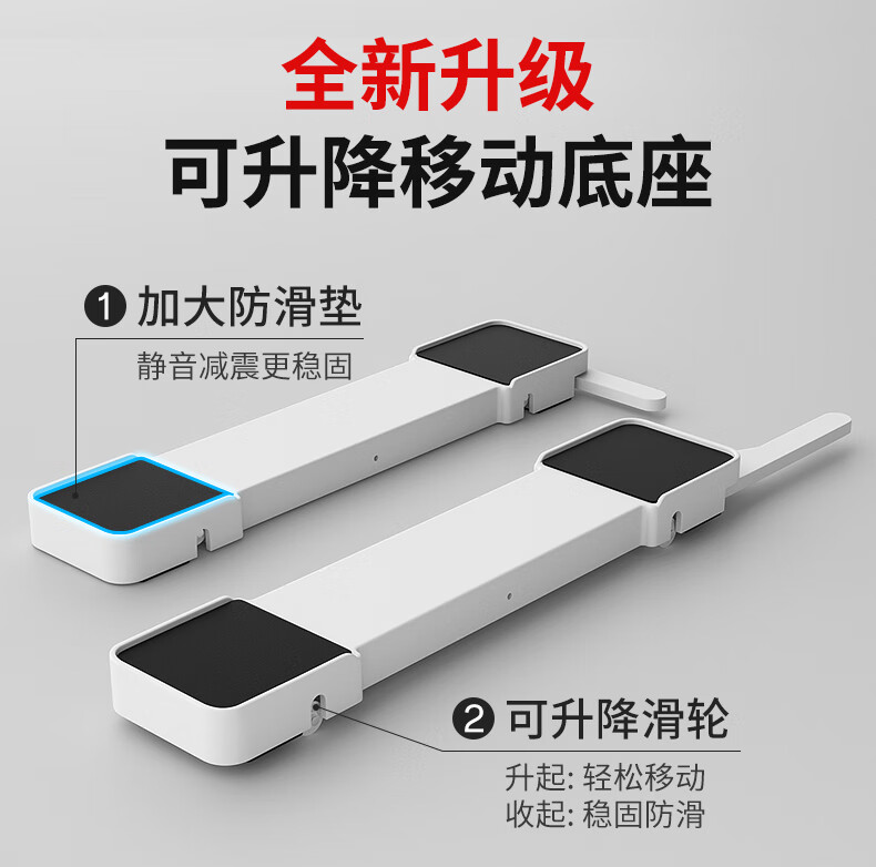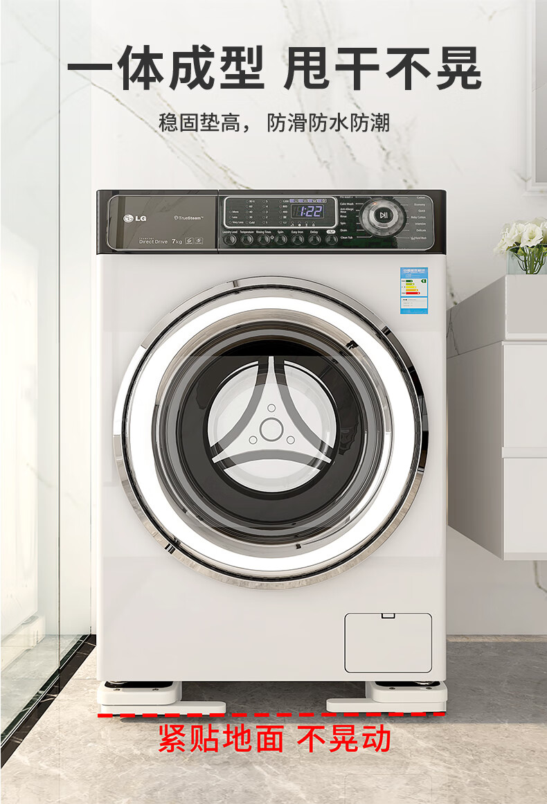 El marco de la base de la lavadora Liofeng se puede levantar, mover, antideslizante y a prueba de golpes, pulsador de rodillo, refrigerador, estante de almacenamiento de polea universal, blanco 550 * 120 * 30 mm