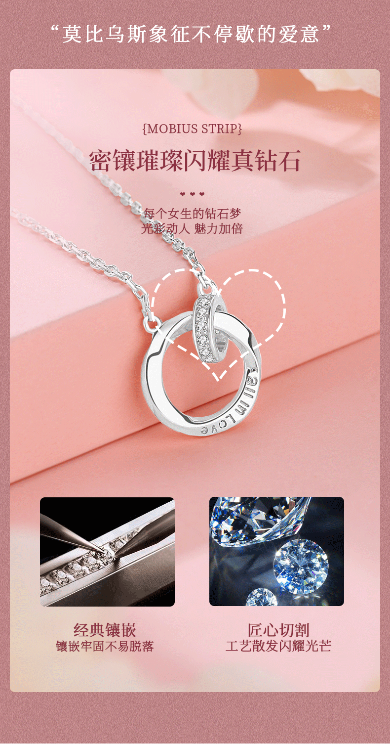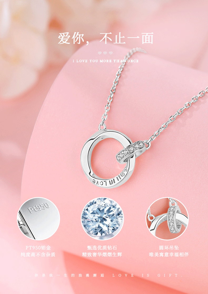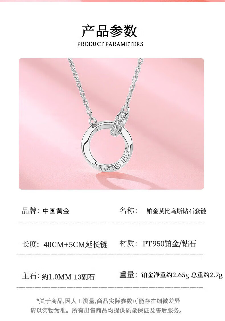 Chinese gold diamond platinum necklace female Mobius platinum pendant birthday gift for girlfriend and wife anniversary platinum chain set-13 diamonds + certificate gift box