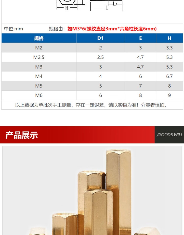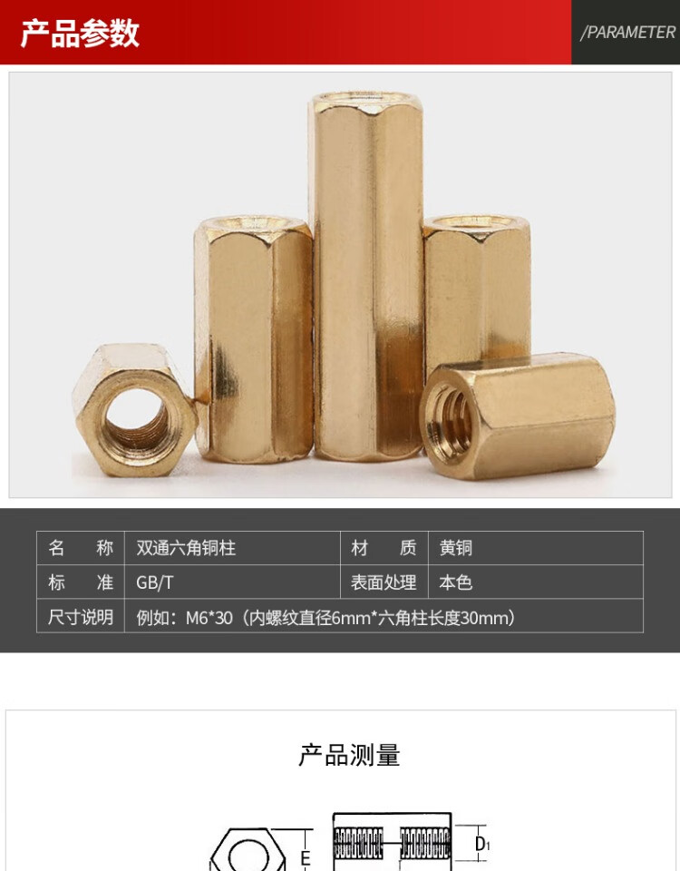 Bingneng brass isolation column copper hexagonal two-way copper column lengthened computer chassis motherboard support column through hole long nut mm M4*6 30 pcs