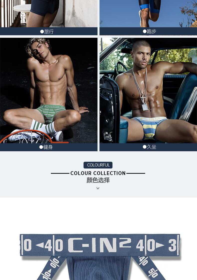 C-IN2 new men's underwear double-button cotton spandex exposed buttocks U-convex sexy thong cin2 men's underwear 6925CB dark blue 485 170/75A(S)