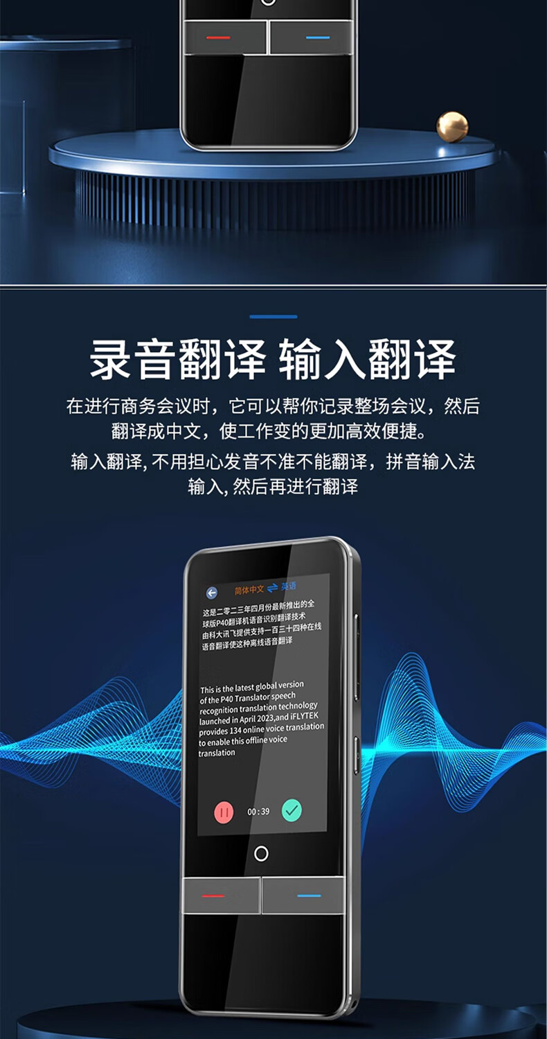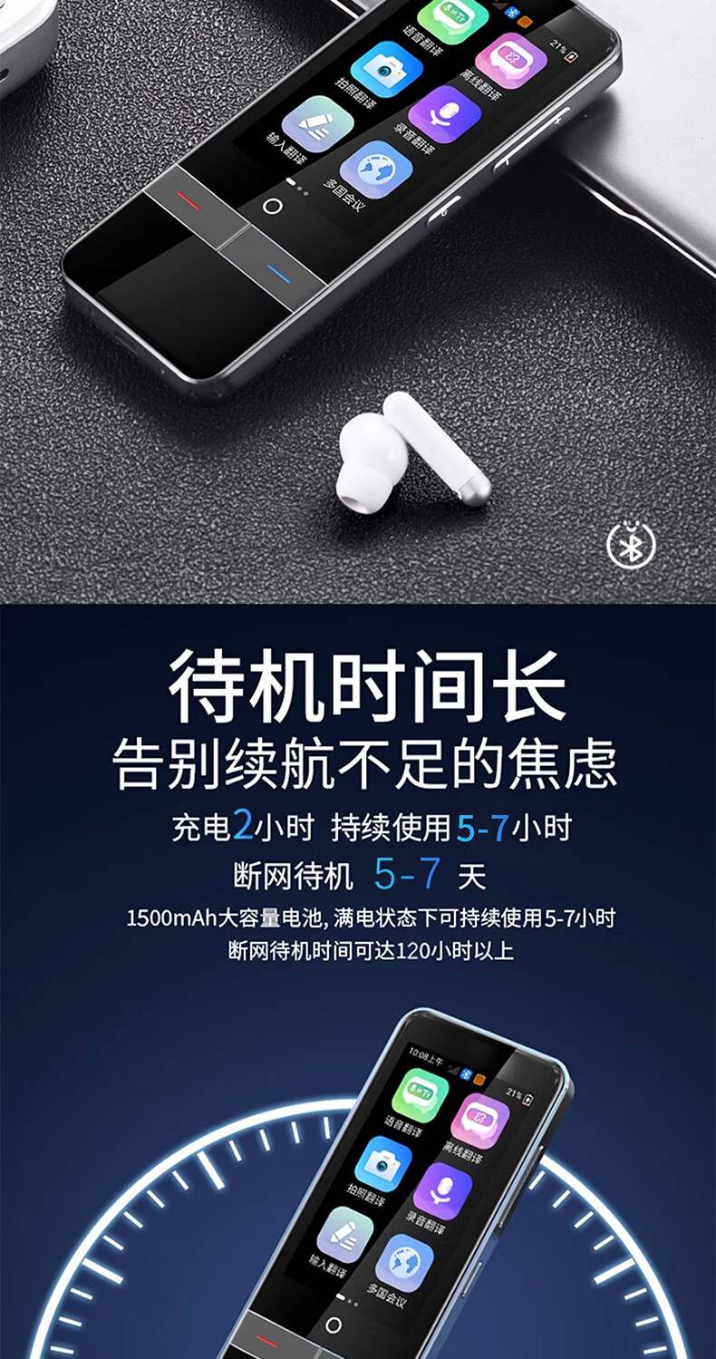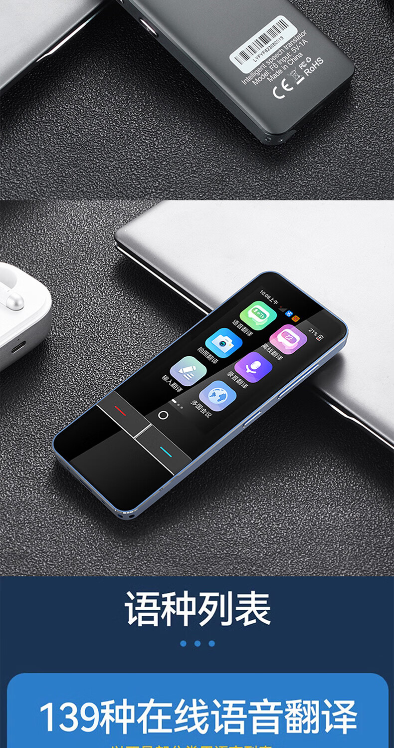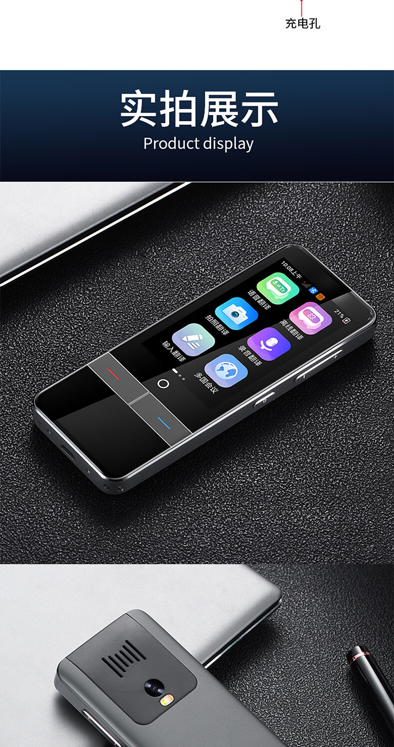 Songqi SQ Translator Intelligent Voice Real-time Simultaneous Interpretation 139 Multi-Language English Available Offline Dark Gray WiFi+ Available Offline