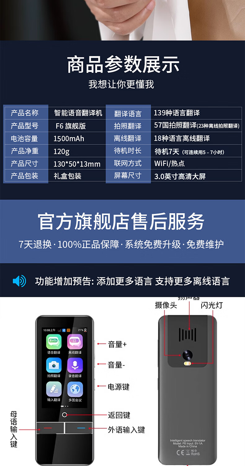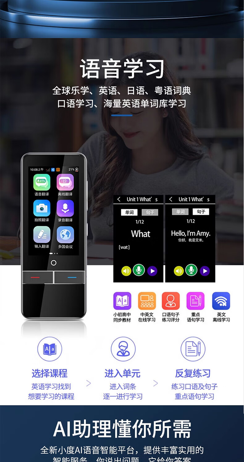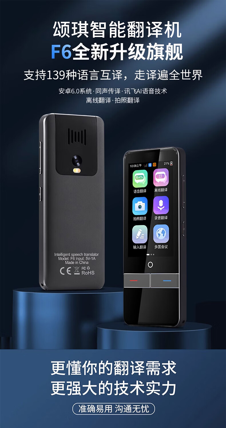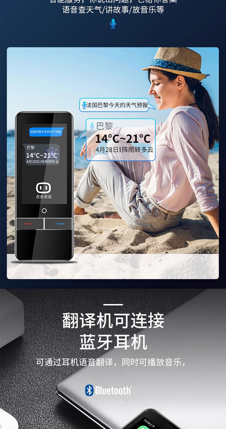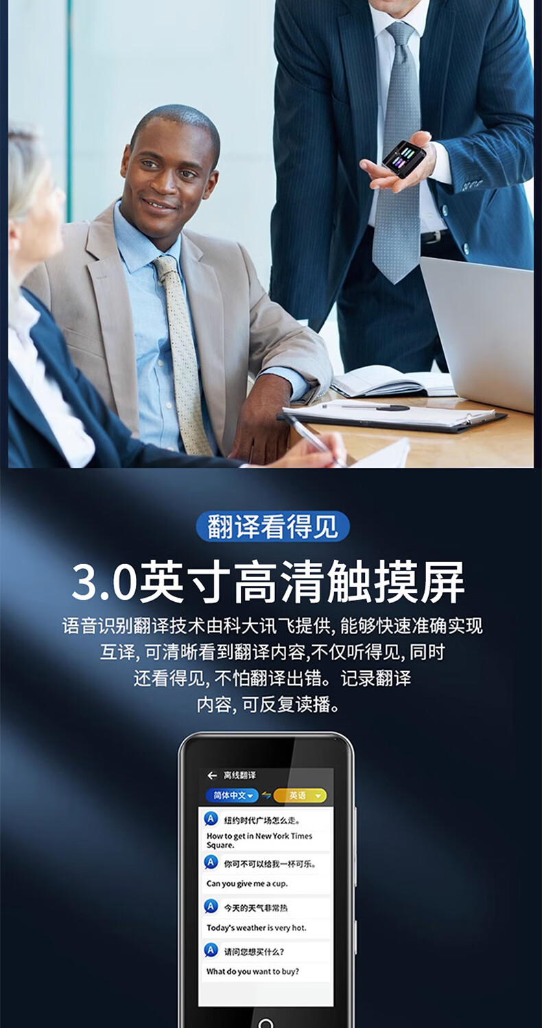 Songqi SQ Translator Intelligent Voice Real-time Simultaneous Interpretation 139 Multi-Language English Available Offline Dark Gray WiFi+ Available Offline