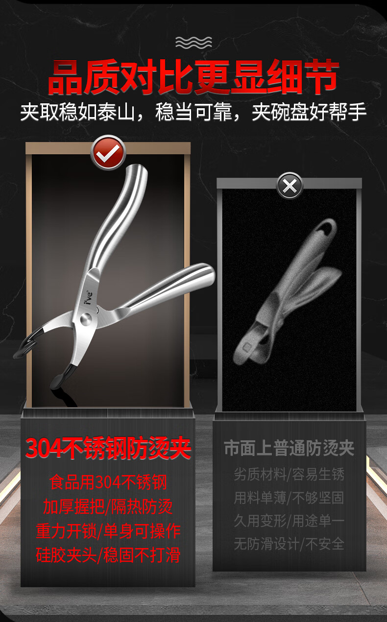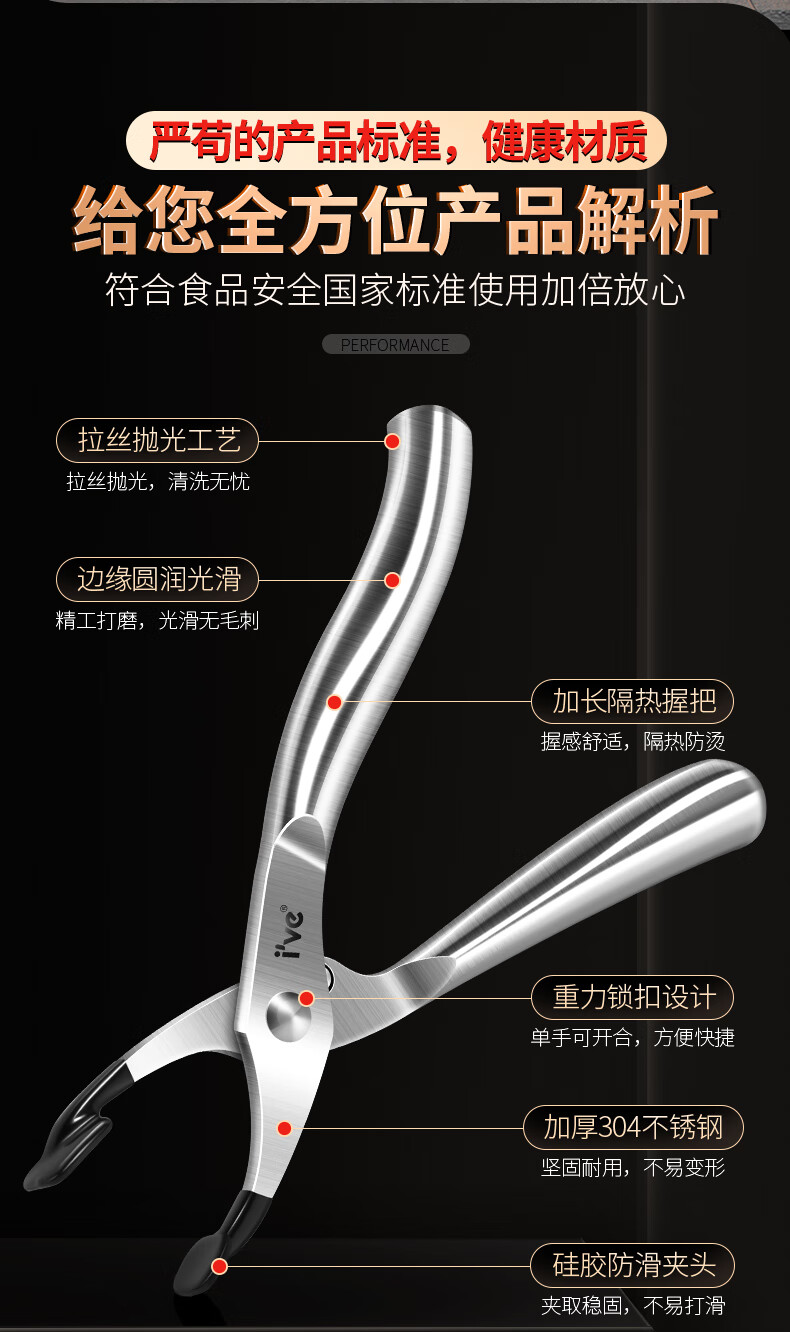 I VE Germany 304 stainless steel anti-scalding clip, bowl remover, steamed vegetable clip, casserole clip, artifact lifting plate clip, 304 food grade anti-scalding steel clip
