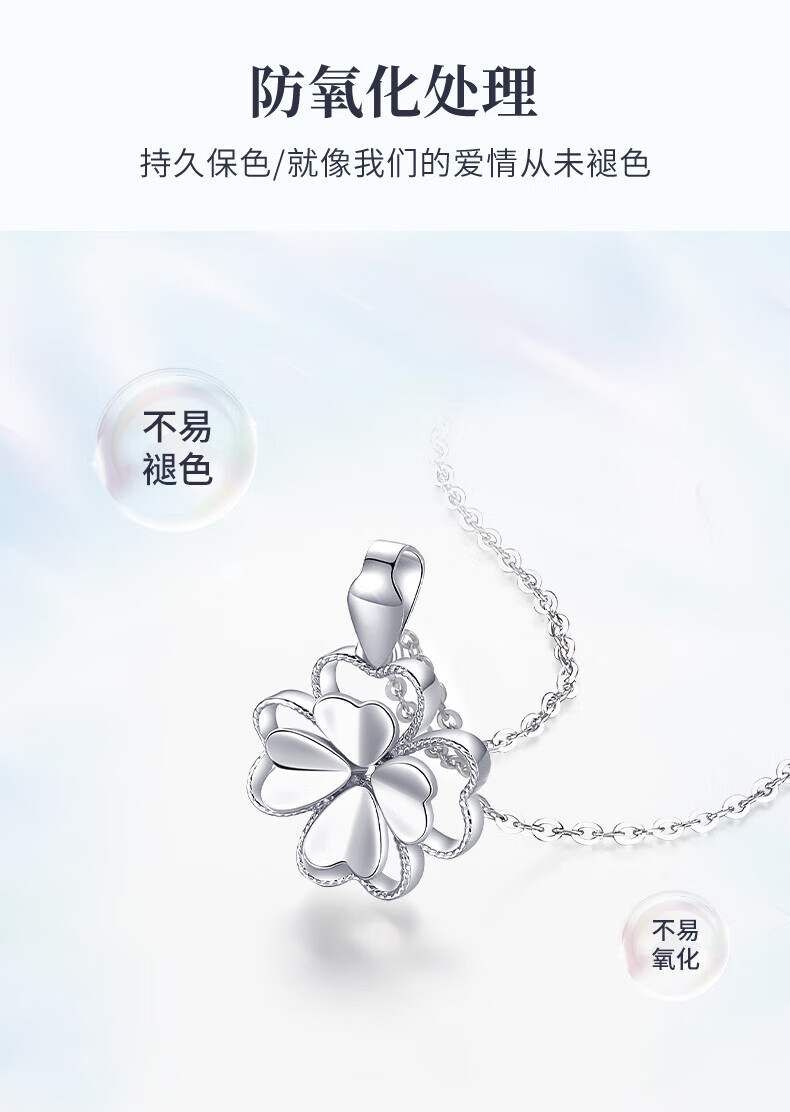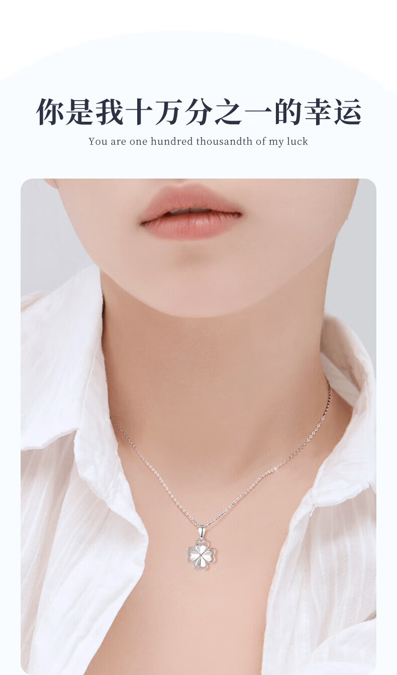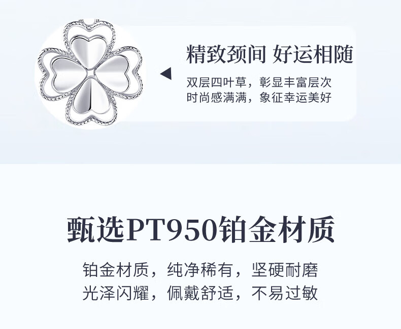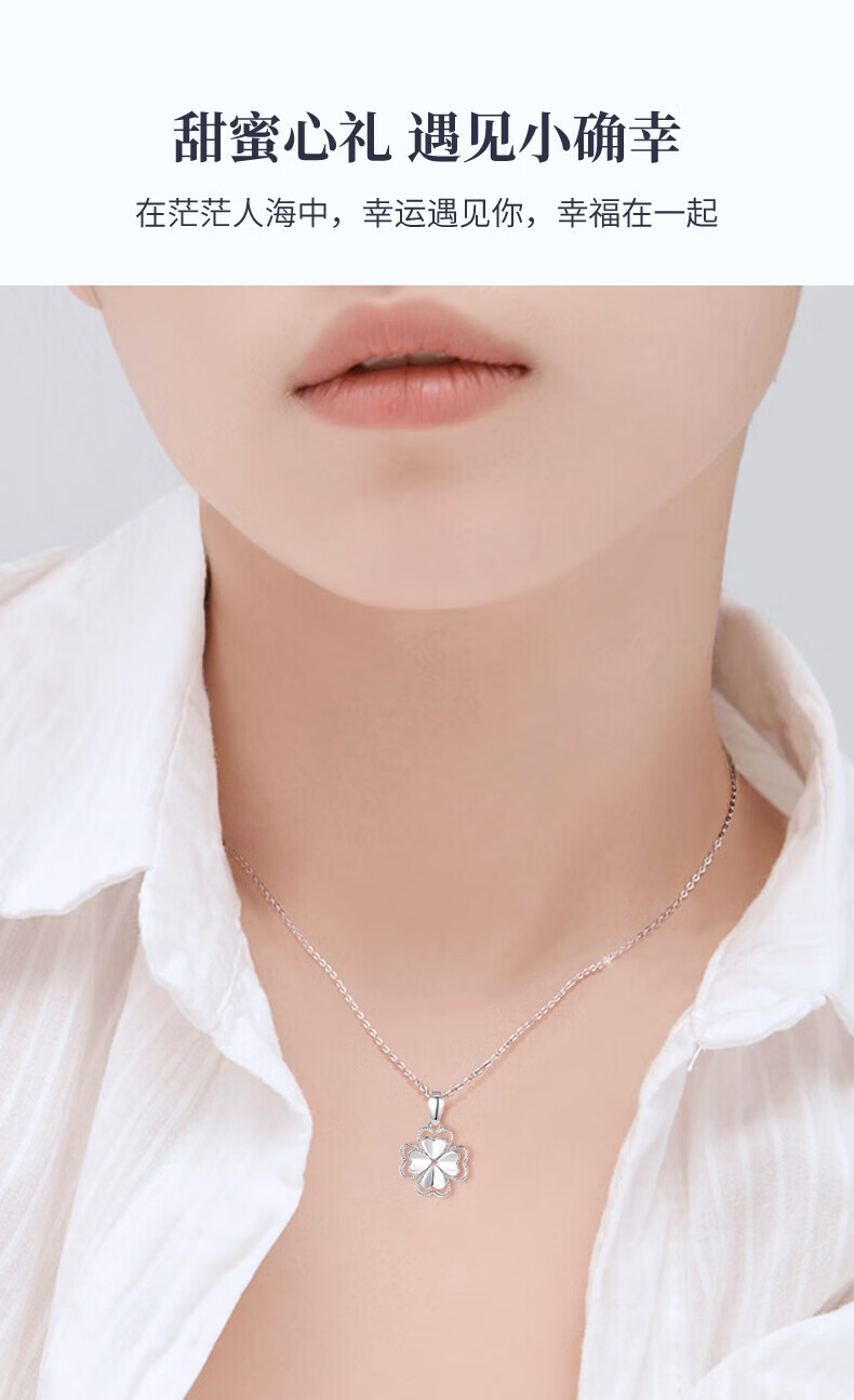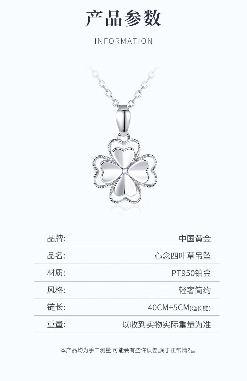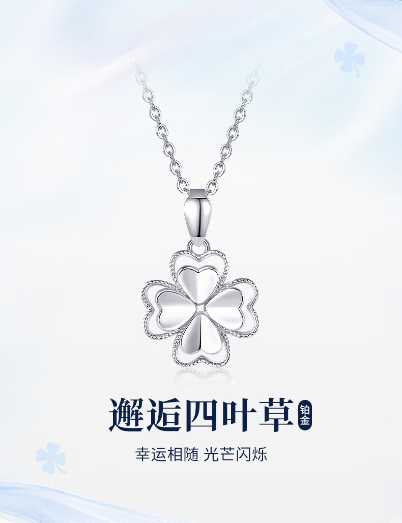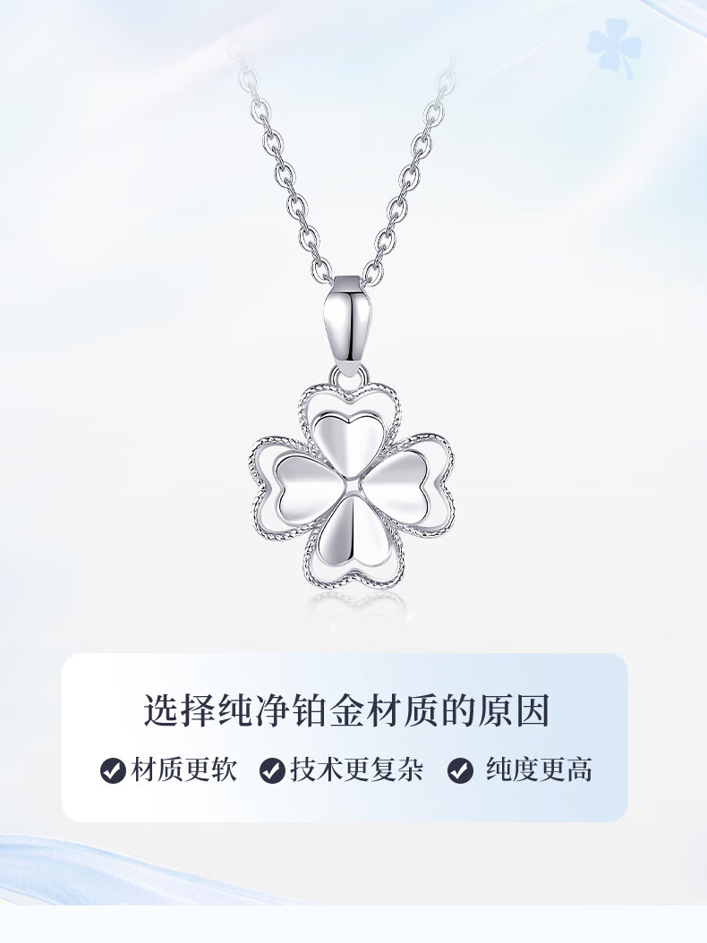 Chinese gold platinum necklace women's four-leaf clover platinum pendant Valentine's Day birthday gift for girlfriend and wife fashion jewelry platinum four-leaf clover pendant + platinum chain + certificate gift box
