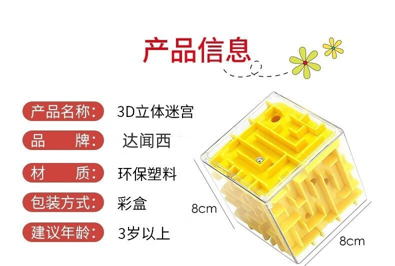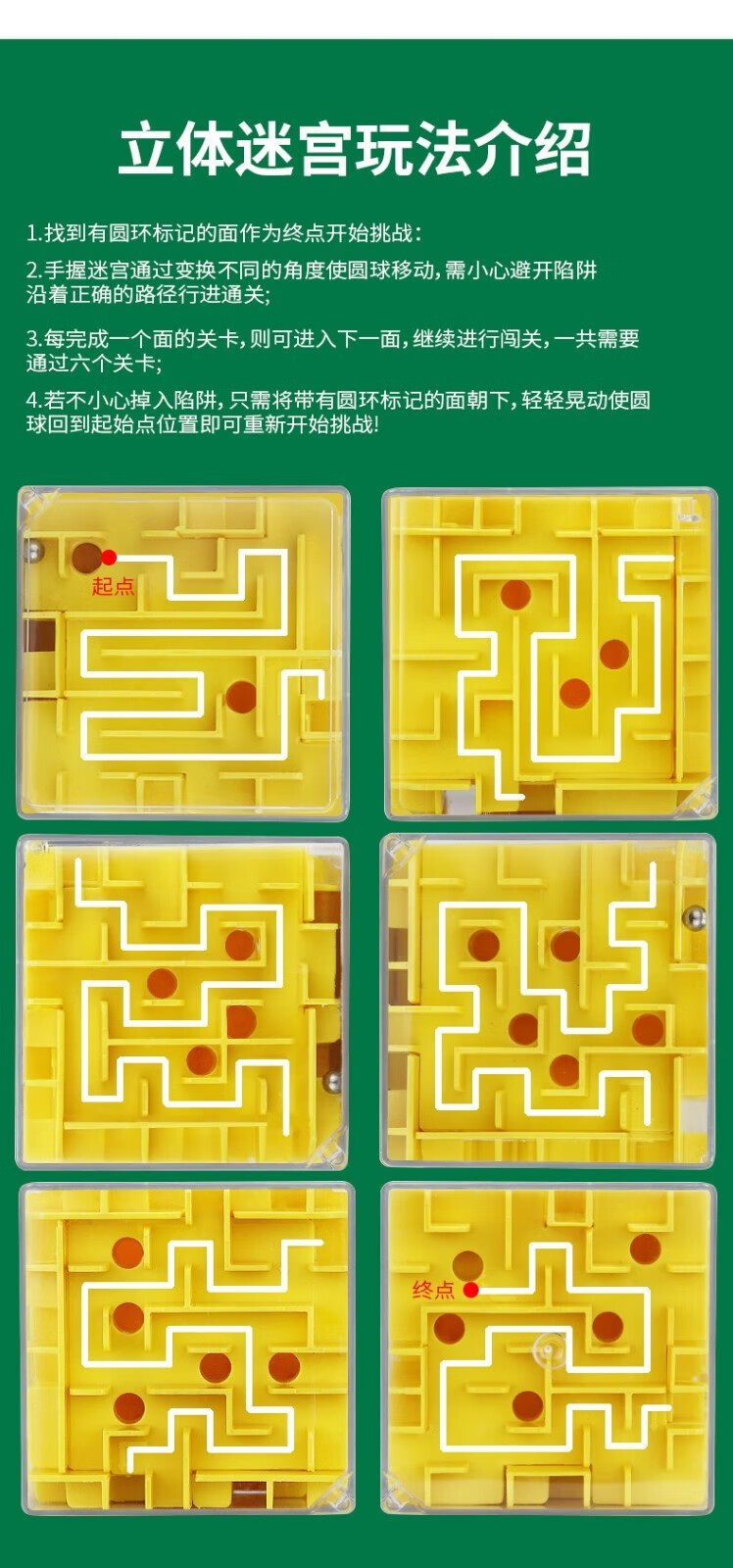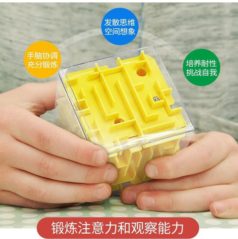 3D three-dimensional magic maze children's toy six-sided moving beads to break through levels, concentration training Rubik's cube, decompression and unlocking, yellow + green