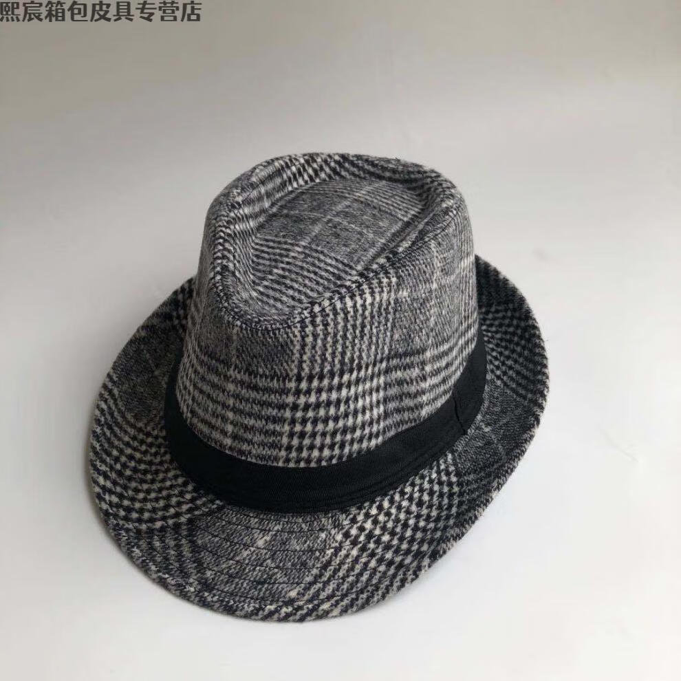 Qian Lianyu men's autumn and winter woolen top hat men's top hat Shanghai Tang Xiaohongshu Internet celebrity British woolen jazz hat Xu Wenqiang style-black style 58cm