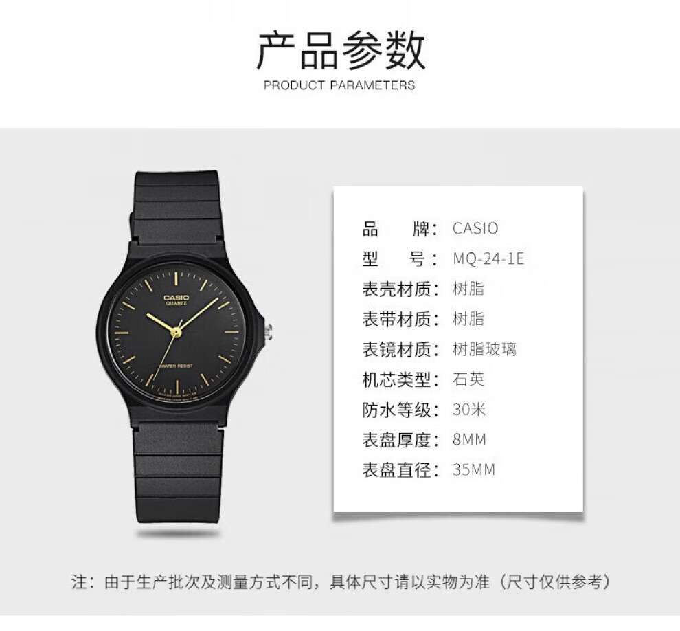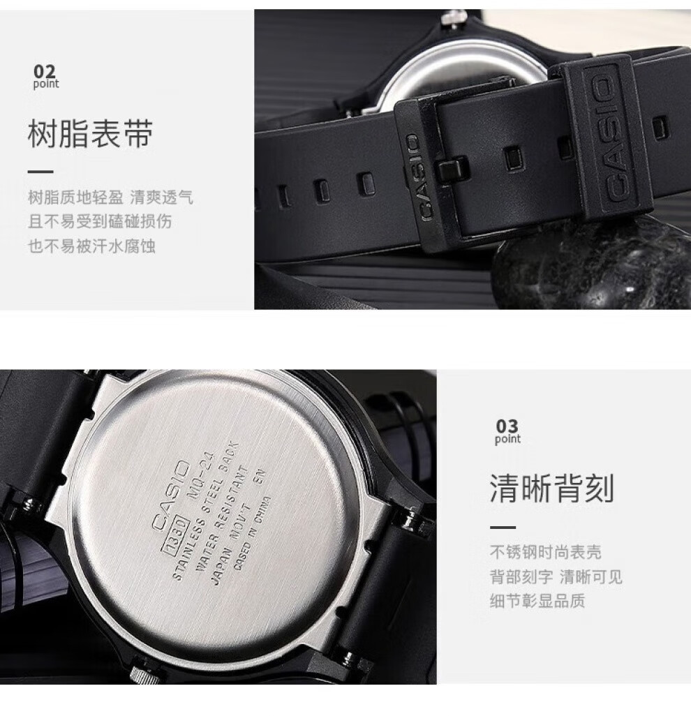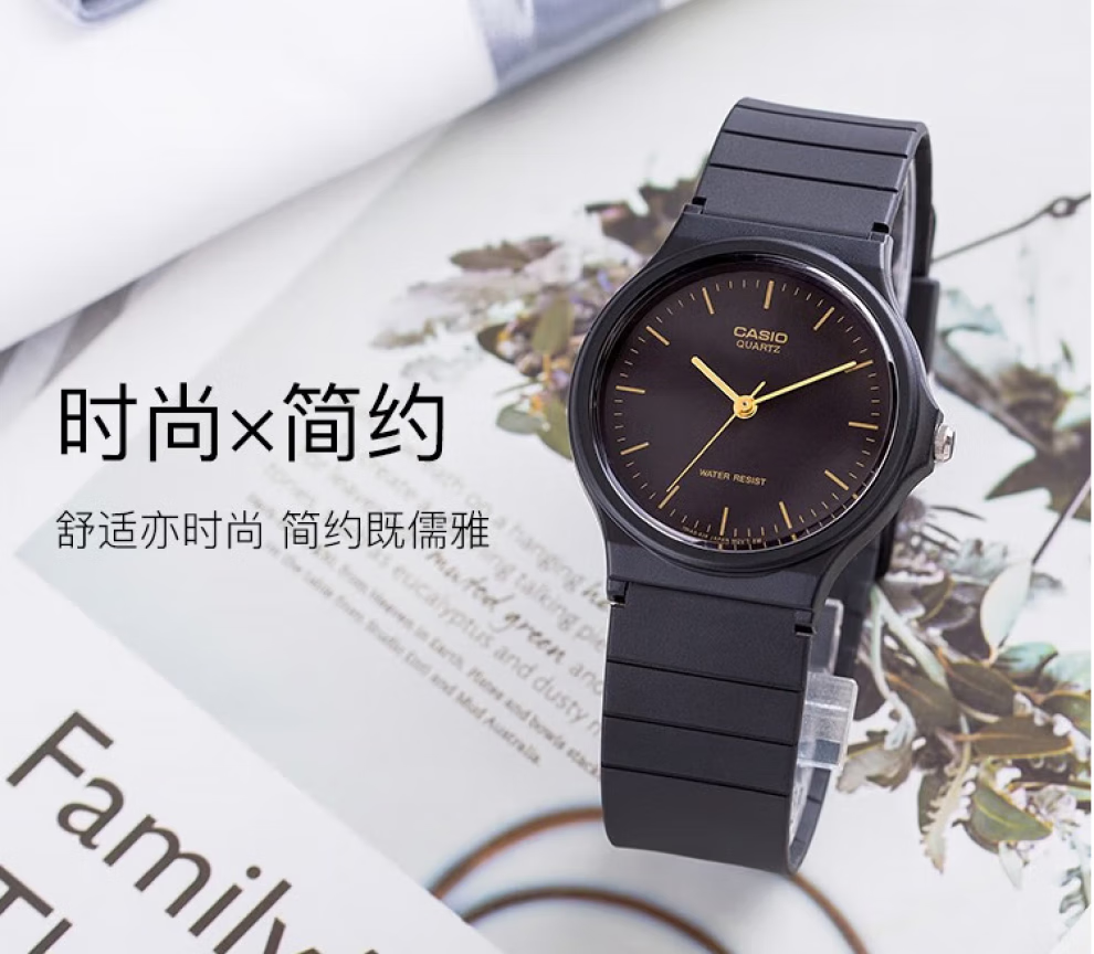 Casio (CASIO) watch pointer resin strap simple and versatile waterproof sports quartz exam student watch children's watch men's and women's watch MQ-24-1B 33mm small dial